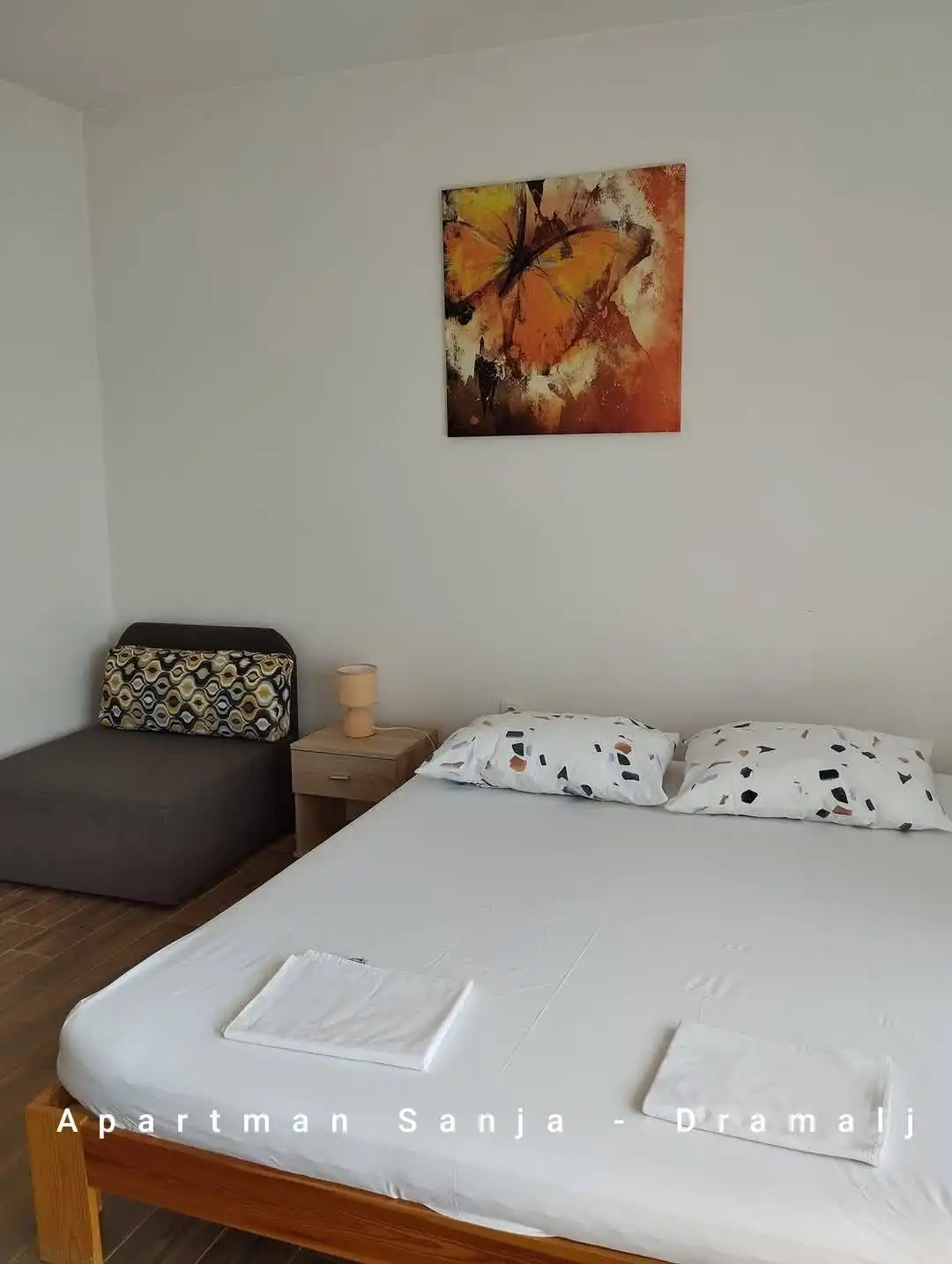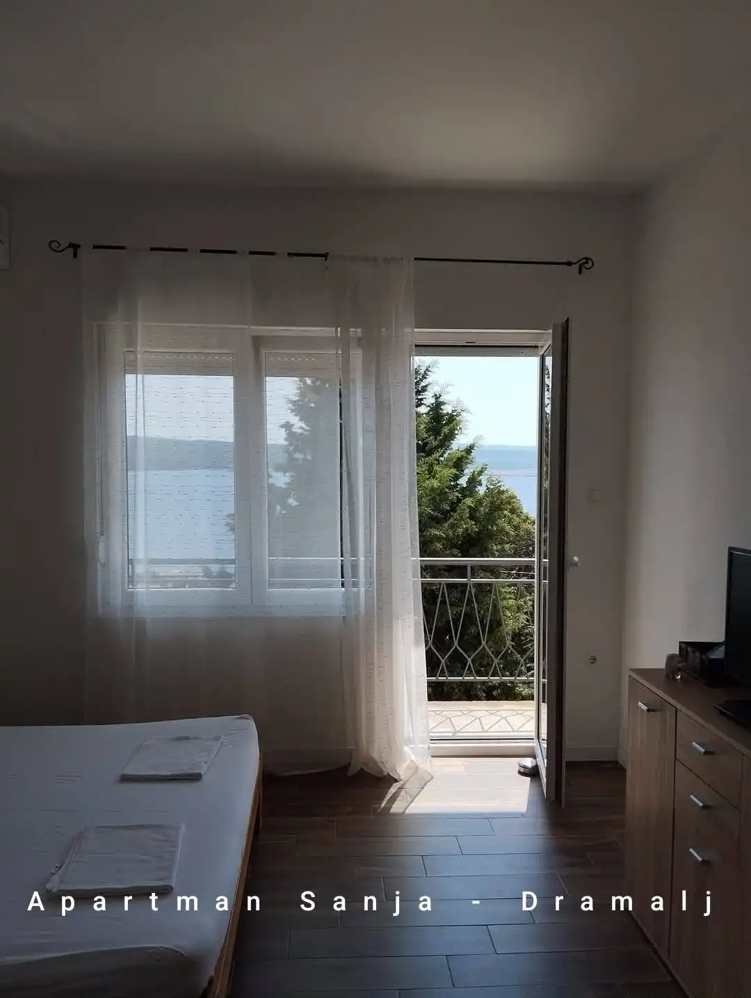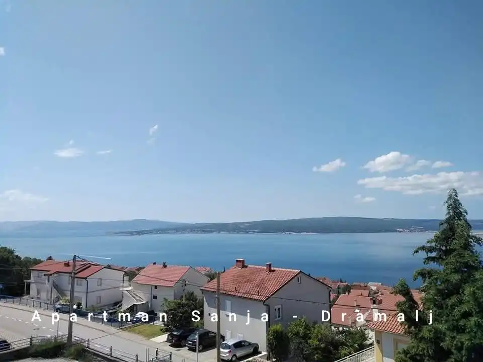 Dramalj is een plaats in de Kvarner, verbonden met Crikvenica. Het ligt op 35 km van Rijeka. Appartement Sanja is gelegen in een rustig deel van de stad met een prachtig uitzicht op de Velebit aan de ene kant en over de eilanden Krk en Cres naar Učka aan de andere kant. We bieden een volledig uitgerust appartement (beddengoed, handdoeken, servies, magnetron, wasmachine, enz.), airconditioning, gratis snelle internetverbinding en beveiligde parkeergelegenheid voor het huis. Het appartement heeft een balkon met uitzicht op zee en een terras met een barbecue achter het huis bij de ingang van de appartementen. Het appartement is geschikt voor maximaal 2 volwassenen + 1 kind. Huisdieren zijn welkom.