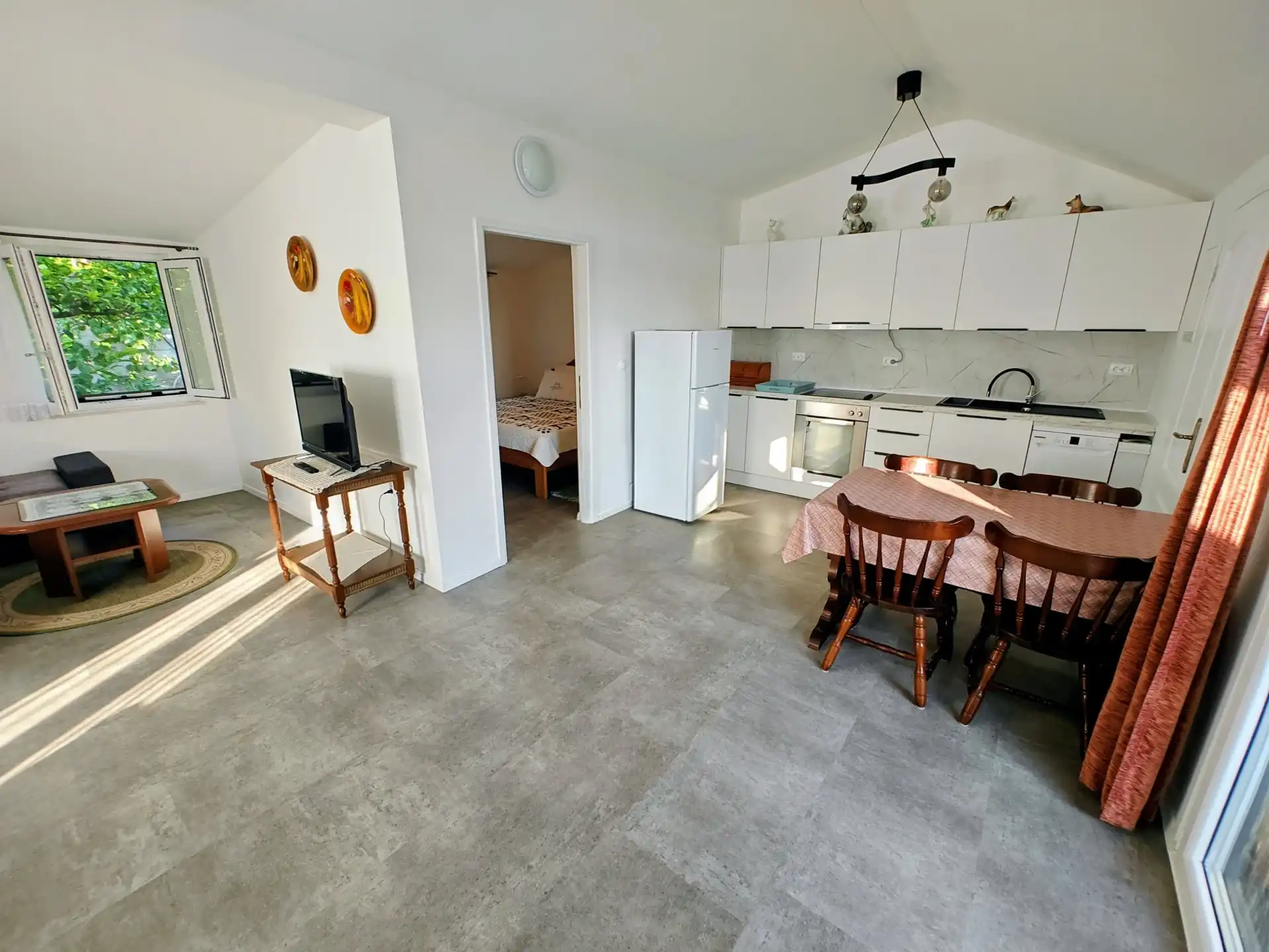 Wij bevinden ons in het prachtige dennenbosgebied van Poljana, in een rustige straat met weinig verkeer, op 100 meter van de zee en op 1 km van het stadscentrum. Onder het huis is er een promenade en een fietspad die helemaal naar de stad leiden. Er is ook een strand in de buurt - deels kiezel, deels beton, zonder schaduw. Het huis bestaat uit 3 volledig uitgeruste appartementen met terrassen met uitzicht op de zee en groene tuinen. Elk appartement heeft een aparte ingang, airconditioning, wifi, lcd-tv, wasmachine...