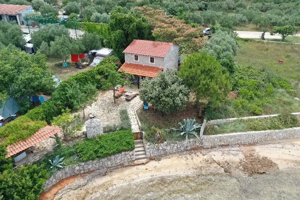 Korting bij vroeg boeken! Het huis ligt 2 km ten zuiden van het centrum van Tkon, direct aan de weg. U kunt door de poort van de binnenplaats rijden en uw auto direct naast het huis parkeren. Naast het huis bevindt zich een nudistenkamp, dat aan het zicht onttrokken wordt door klimplanten. Het eerste gebouw aan de overkant ligt op 50 meter afstand. Het huis ligt op 10 meter van de zee en een zandstrand. De zee is ongeveer een halve meter diep met een zandbodem, ideaal voor kinderen. Voor het huis is een overdekt houten terras met een tafel en banken waar u in de schaduw kunt lunchen, en ernaast een stenen barbecue. Er is ook een overkapping direct voor het huis die schaduw biedt. Op het terras bevindt zich een buitendouche. De begane grond van het huis bestaat uit één ruimte met een nieuwe, moderne keuken met een inductiekookplaat, oven, vaatwasser en koelkast. Tot de keukenapparatuur behoren een waterkoker en een koffiezetapparaat. De woonkamer bestaat uit een slaapbank die kan worden omgebouwd tot een extra bed, een klein tafeltje voor bij de bank, een oude, massieve houten kast en een televisie. De tv is voorzien van satellietzenders en er is privé-wifi beschikbaar. Direct naast het raam staat een grote tafel met banken waar u kunt eten en genieten van het prachtige uitzicht op Biograd na Moru. Op de begane grond (zolderverdieping) bevinden zich twee slaapkamers en een toilet. Eén slaapkamer heeft een tweepersoonsbed en de andere twee eenpersoonsbedden. De airconditioning bevindt zich op de bovenverdieping voor een comfortabelere nachtrust. Achter het huis ligt een ruime, volledig omheinde tuin met aan één kant zes olijfbomen. Reserveringen: In- en uitchecken dient op zaterdag of zondag plaats te vinden, zodat u 7 of 14 dagen in het huis verblijft.