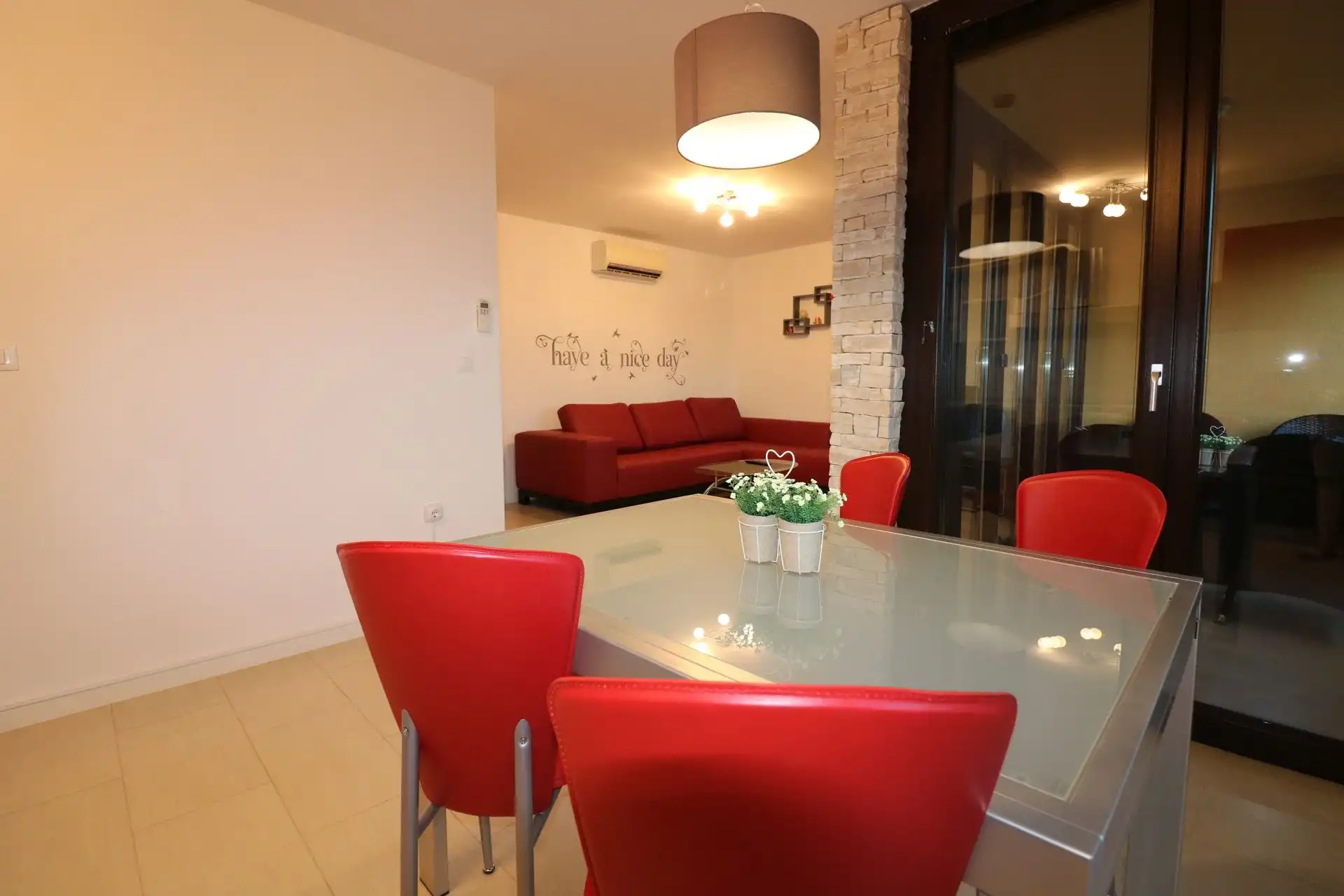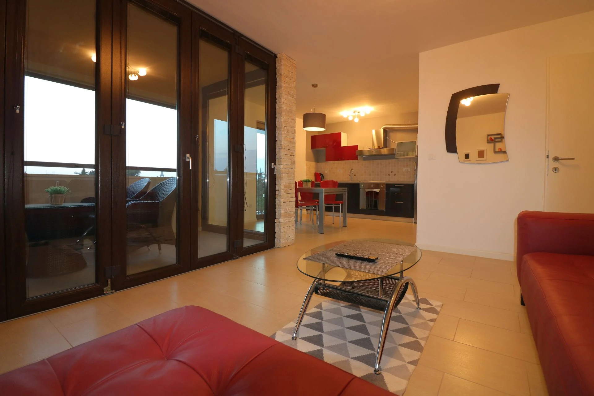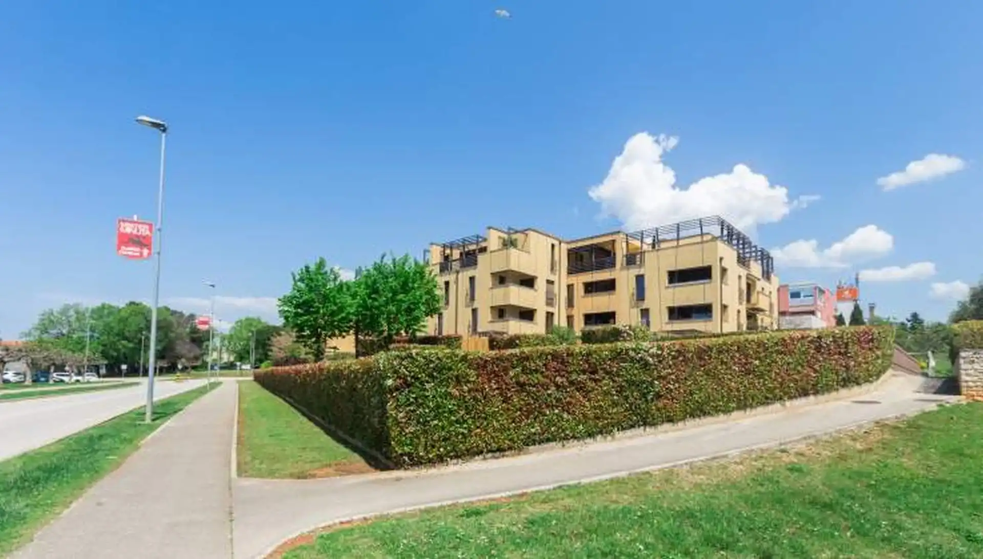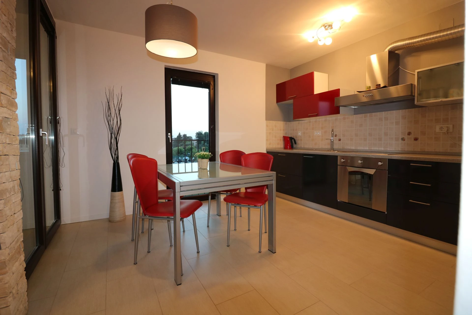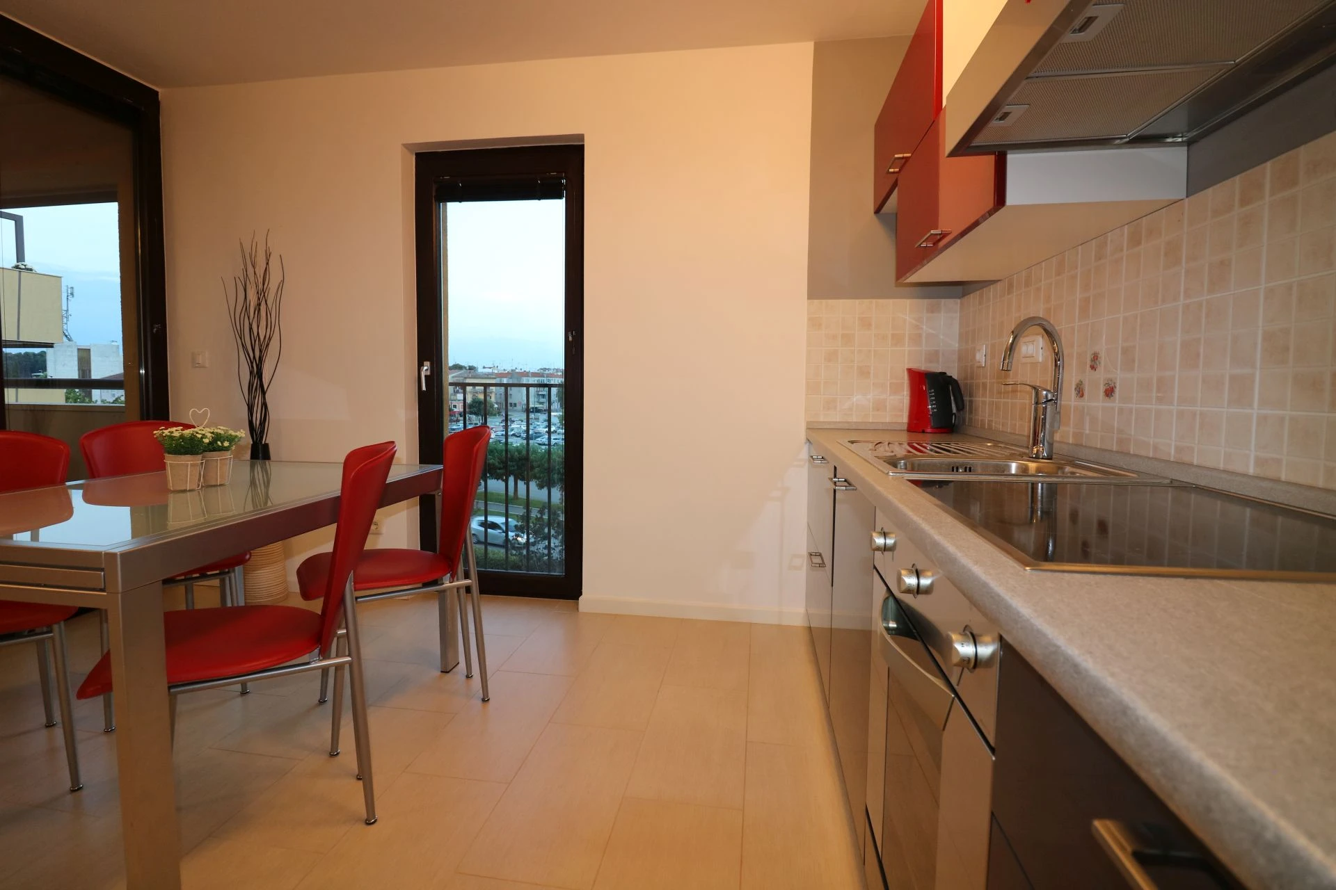 Appartement Lorena Premium is gelegen in een nieuw gebouwd woongebouw in het centrum van Poreč, op slechts 50-100 meter afstand van de versmarkt, een geldautomaat, restaurants, cafés en andere voorzieningen. Het dichtstbijzijnde strand ligt op minder dan 10 minuten lopen. De hoogwaardige uitrusting met luxe meubilair en hoogwaardige ramen zorgt voor een rustige en comfortabele vakantie. Het huis beschikt over een lift en een parkeerplaats in de garage en een fietsenstalling zijn bij de prijs inbegrepen. Appartement Lorena Premium ligt op de 2e verdieping van het appartementengebouw en heeft een totale oppervlakte van 54 m². Het bestaat uit een ruime woonkamer met ingerichte keuken, eettafel en stoelen, loggia met zithoek en mooi uitzicht, slaapkamer met tweepersoonsbed, een eenpersoonskamer en een douche/toilet. Airconditioning en wifi zijn beschikbaar.