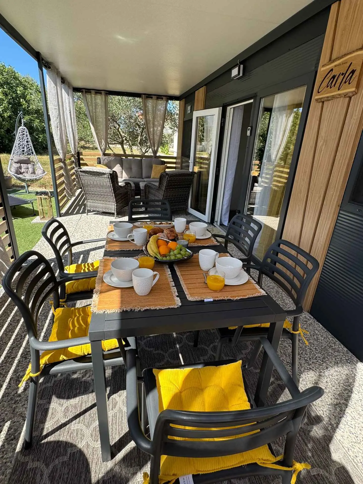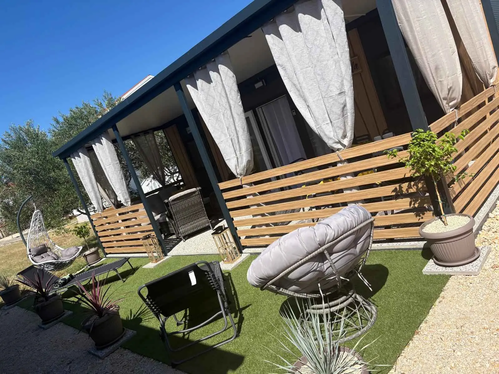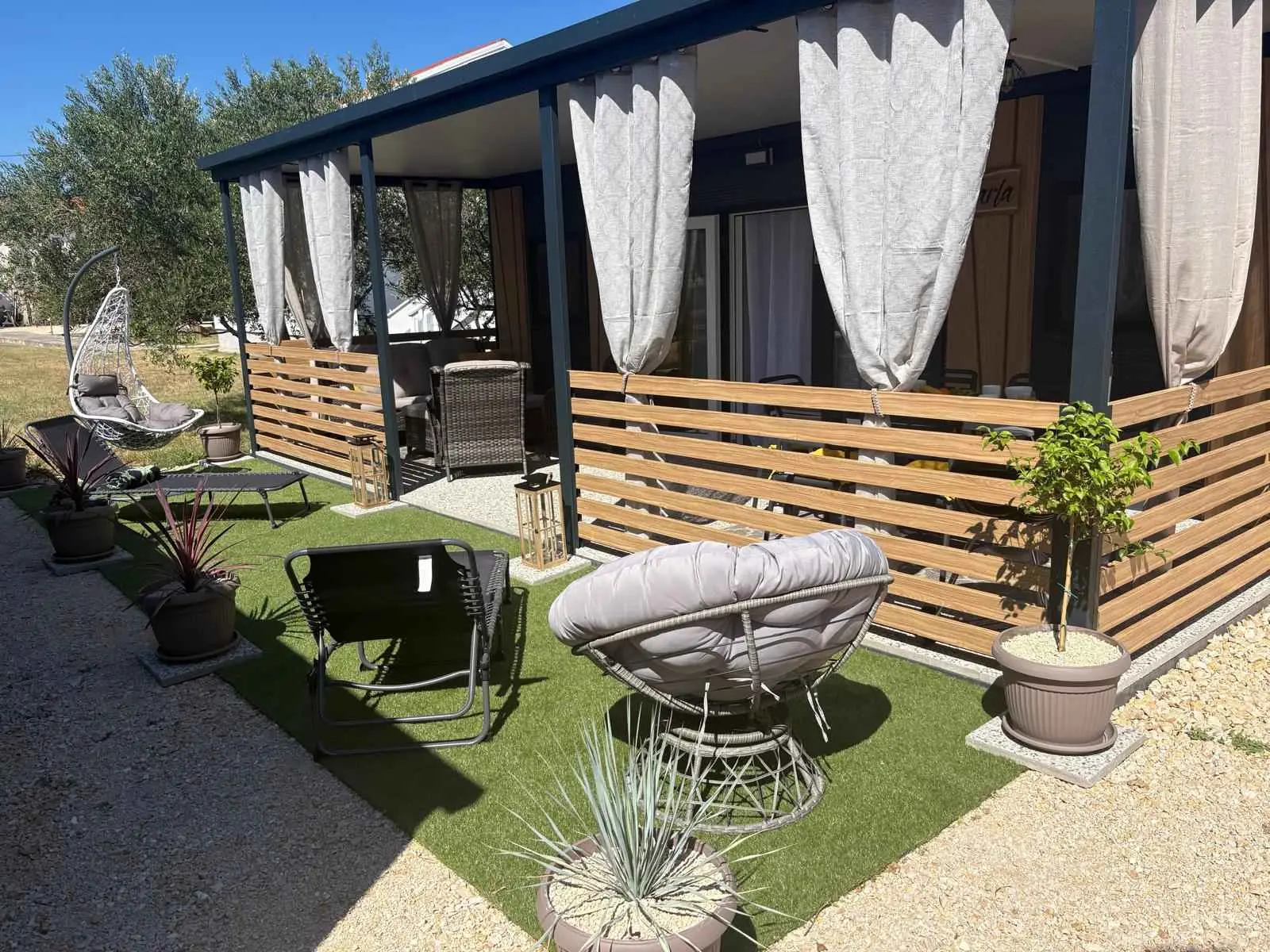 Stacaravan Carla ligt in Kamp Limoni in Sukošan. Het huis ligt op 5 minuten lopen van het dichtstbijzijnde strand, het centrum van de stad, bars, restaurants en markten. Het huis is volledig uitgerust en gemeubileerd. Dit vakantiehuis beschikt over accommodaties met een balkon. Het vakantiehuis biedt kamers met airconditioning, gratis privéparkeergelegenheid en gratis wifi. De accommodaties beschikken over een terras met uitzicht op de tuin, een goed uitgeruste keuken en een flatscreen-tv.