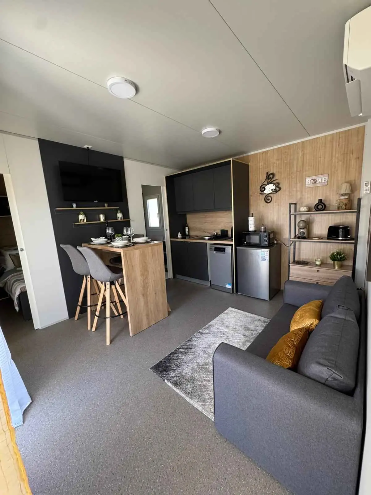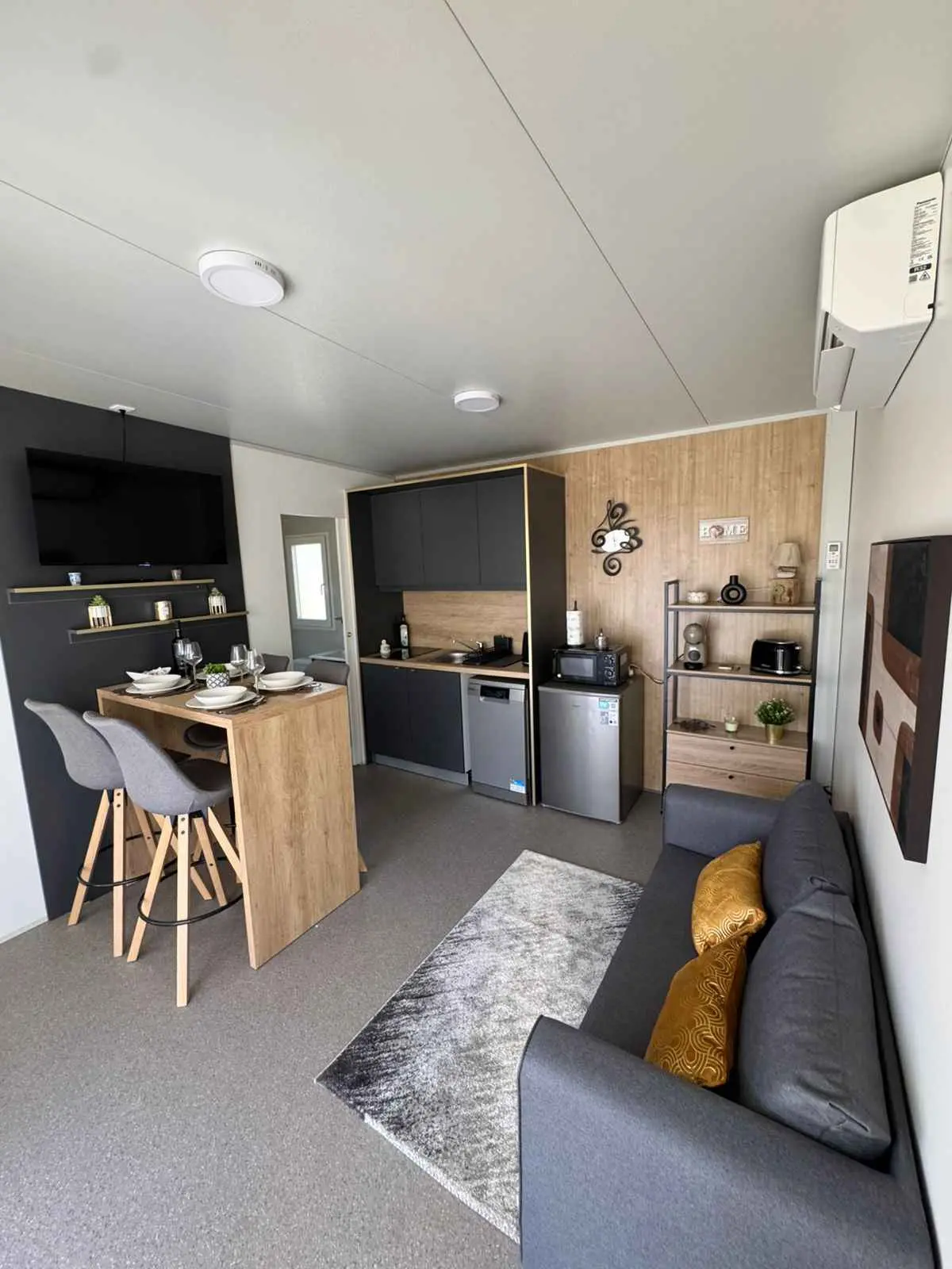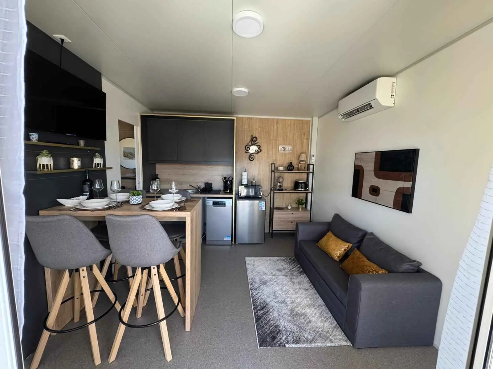 Stacaravan Carla ligt in Kamp Limoni in Sukošan. Het huis ligt op 5 minuten lopen van het dichtstbijzijnde strand, het centrum van de stad, bars, restaurants en markten. Het huis is volledig uitgerust en gemeubileerd. Dit vakantiehuis beschikt over accommodaties met een balkon. Het vakantiehuis biedt kamers met airconditioning, gratis privéparkeergelegenheid en gratis wifi. De accommodaties beschikken over een terras met uitzicht op de tuin, een goed uitgeruste keuken en een flatscreen-tv.