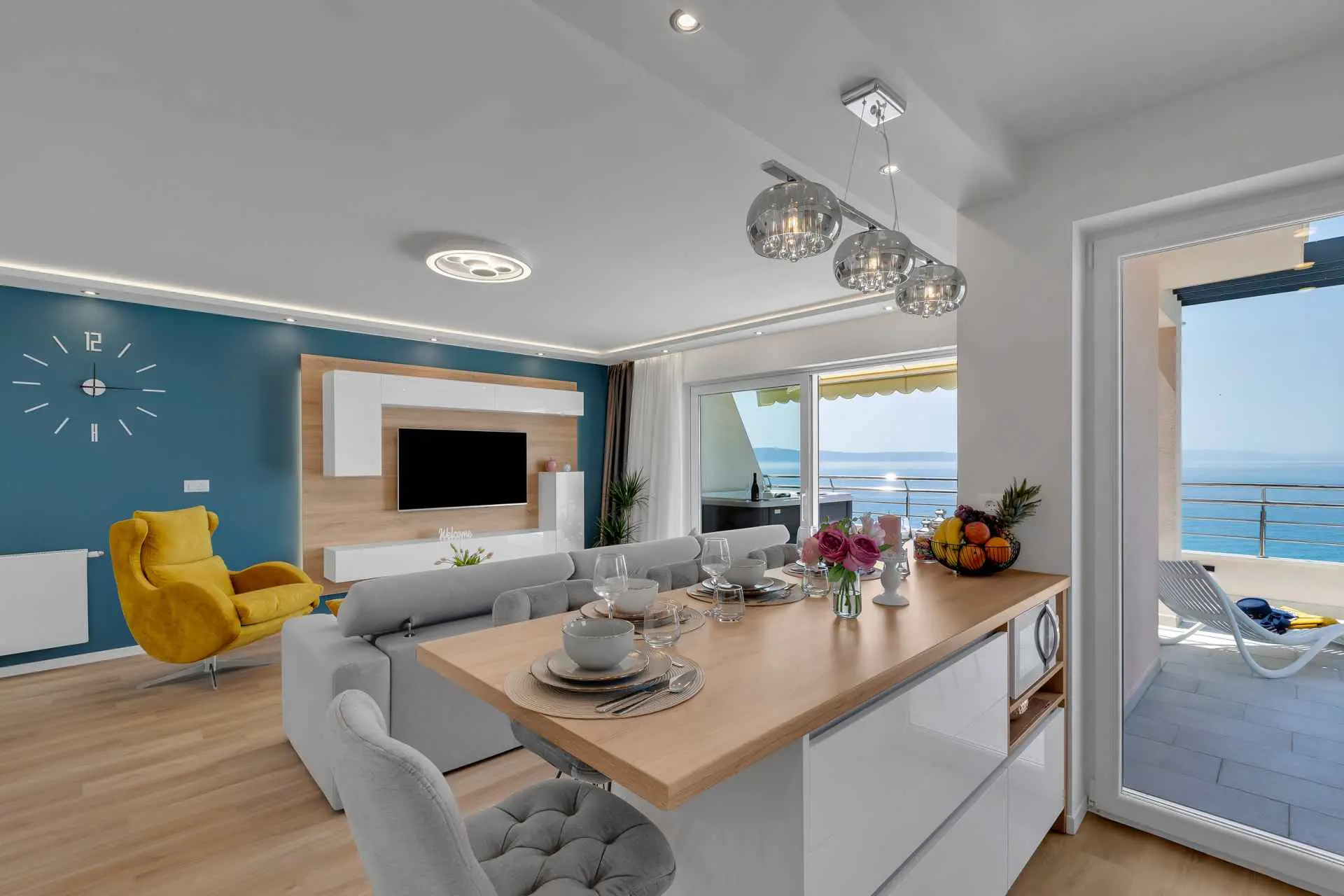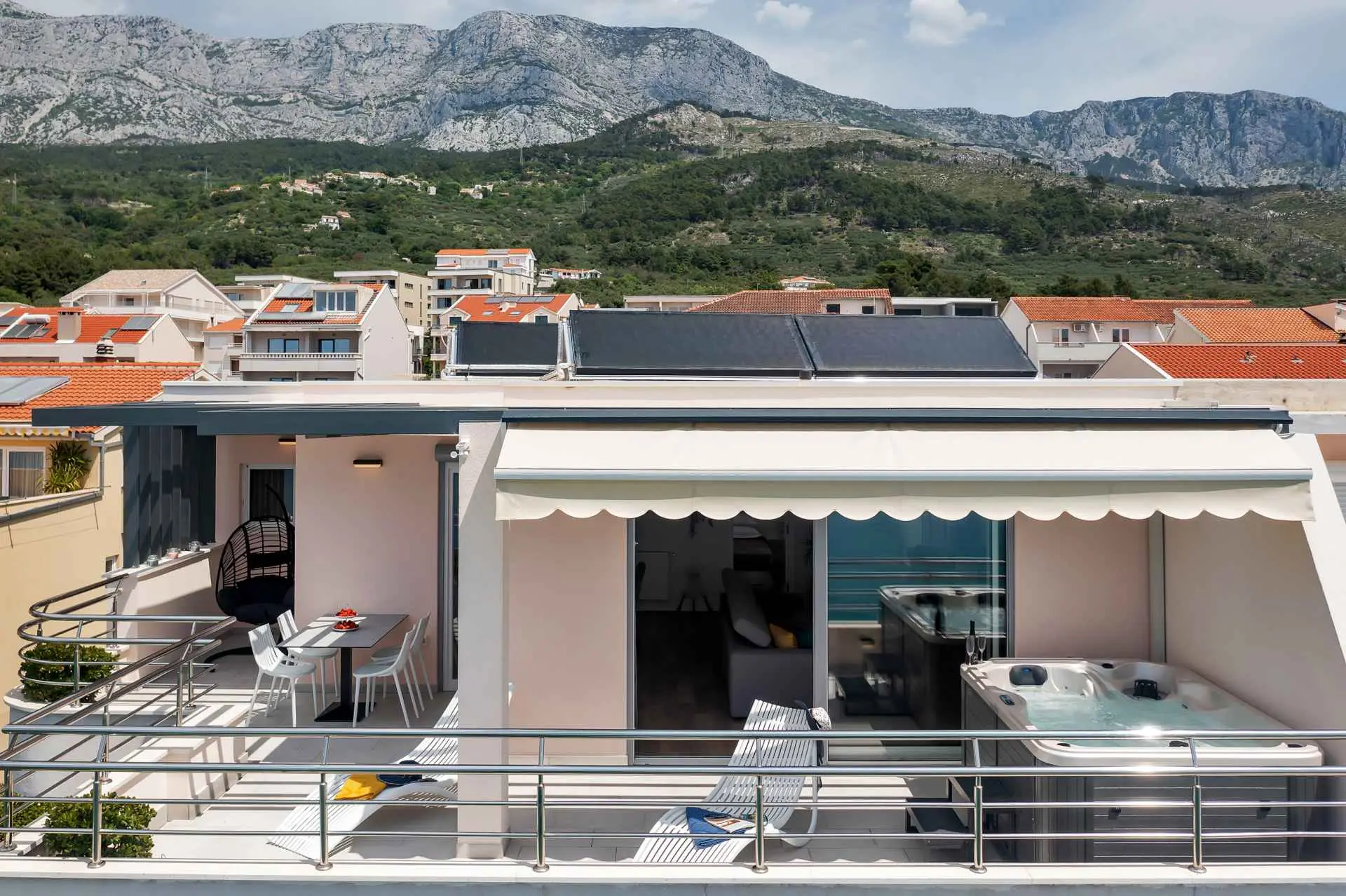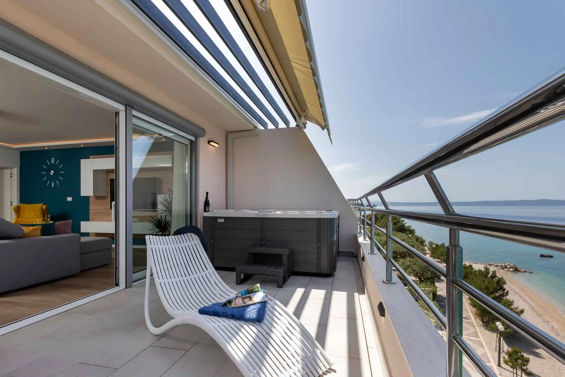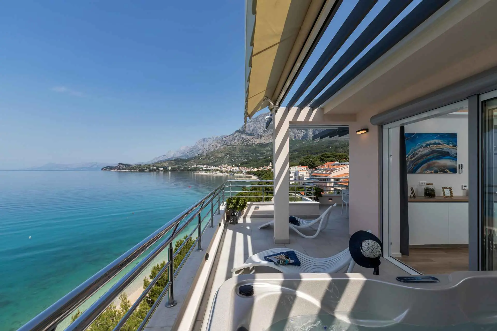Het luxe penthouse Big Blue in Tučepi biedt vanaf de eerste rij een eindeloos uitzicht op het blauw. U zult kunnen genieten van de ochtendzon en avondzonsondergangen. Dit moderne appartement bestaat uit een slaapkamer, een keuken, een badkamer, een woonkamer met een slaapbank en een balkon met een jacuzzi. Parkeren, internet en airconditioning zijn bij de aanbieding inbegrepen. Kies Tučepe voor uw vakantie!