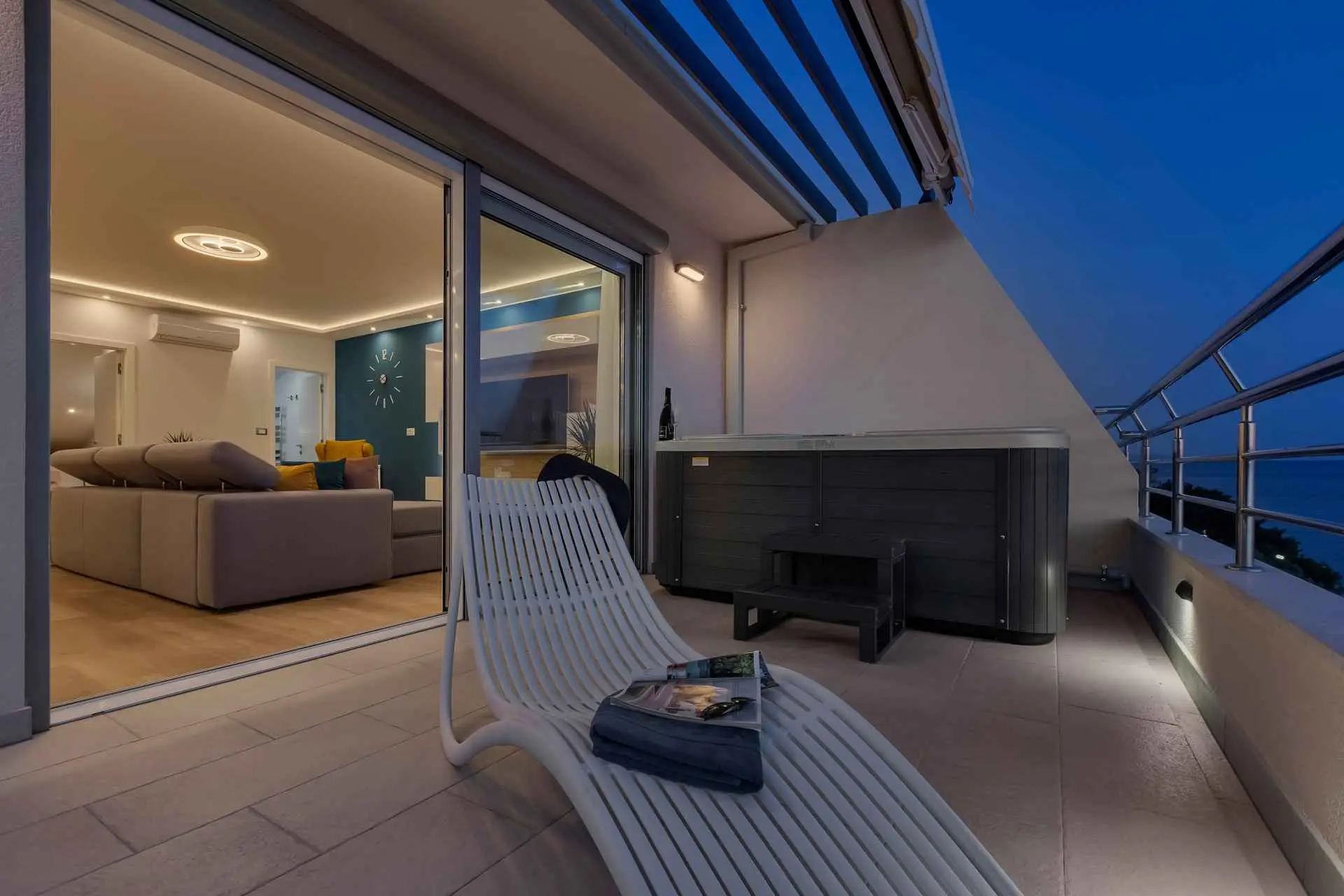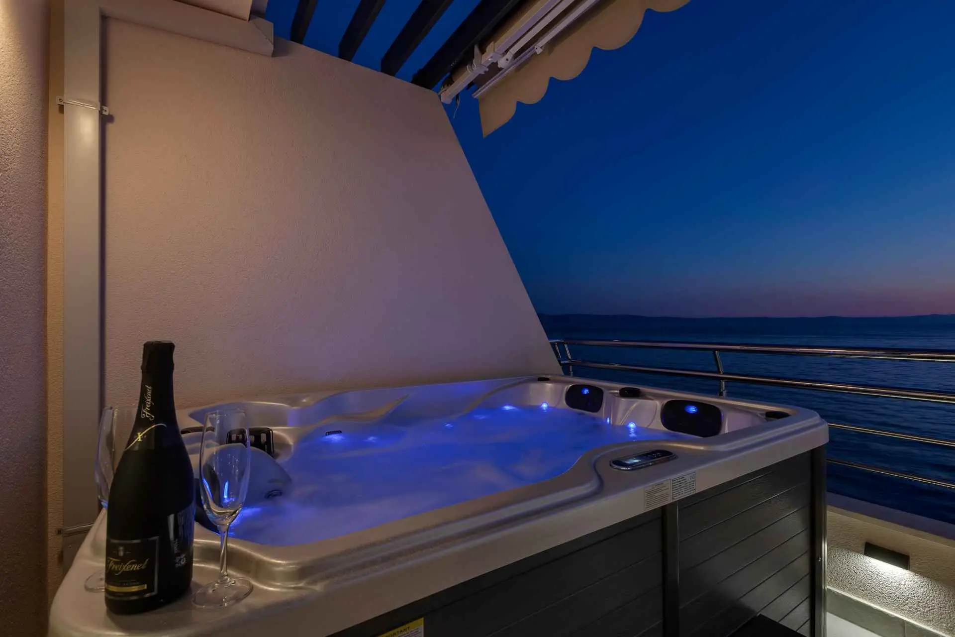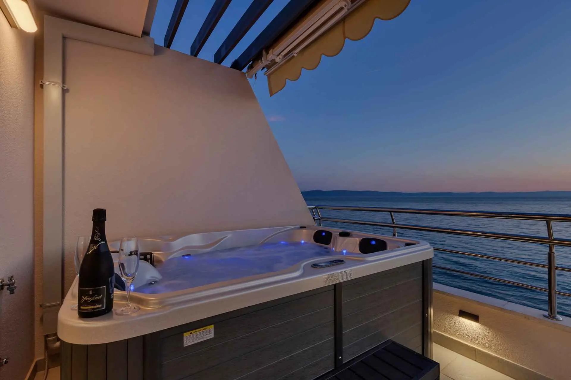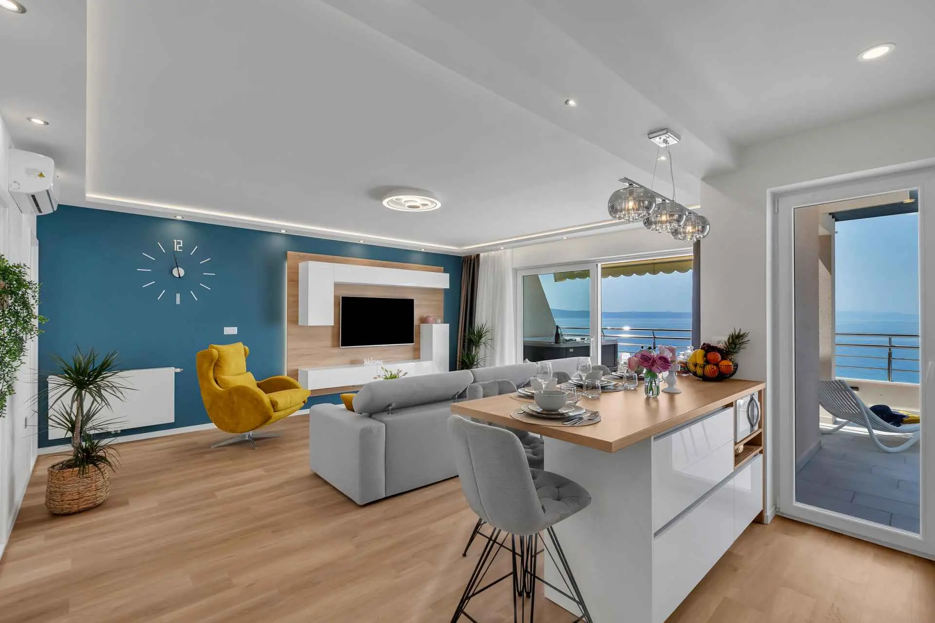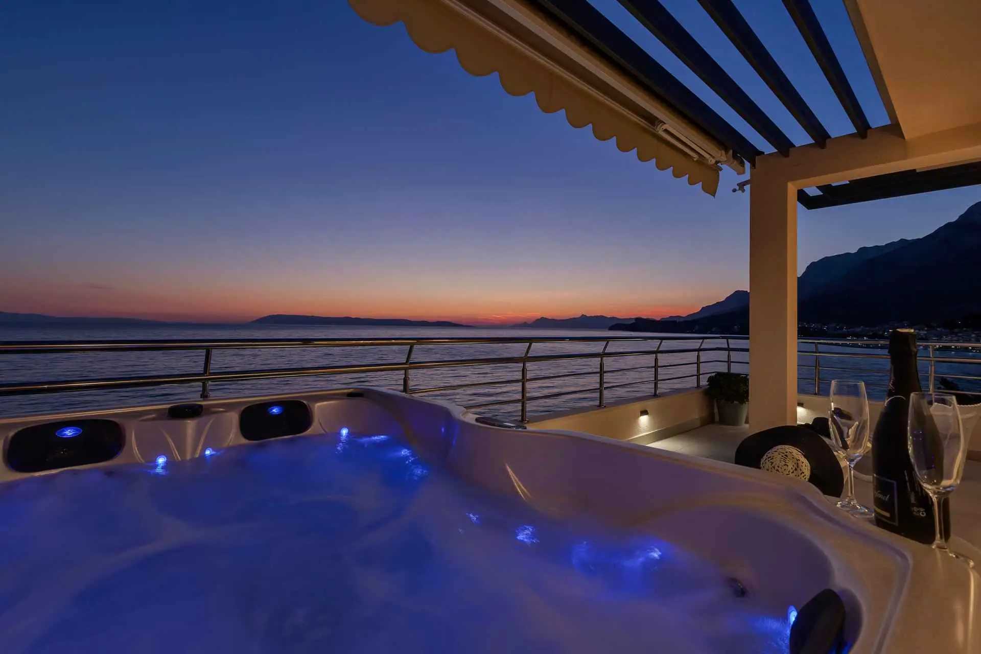 Het luxe penthouse Big Blue in Tučepi biedt vanaf de eerste rij een eindeloos uitzicht op het blauw. U zult kunnen genieten van de ochtendzon en avondzonsondergangen. Dit moderne appartement bestaat uit een slaapkamer, een keuken, een badkamer, een woonkamer met een slaapbank en een balkon met een jacuzzi. Parkeren, internet en airconditioning zijn bij de aanbieding inbegrepen. Kies Tučepe voor uw vakantie!
