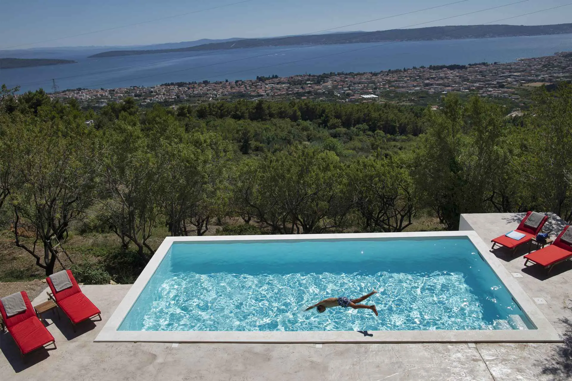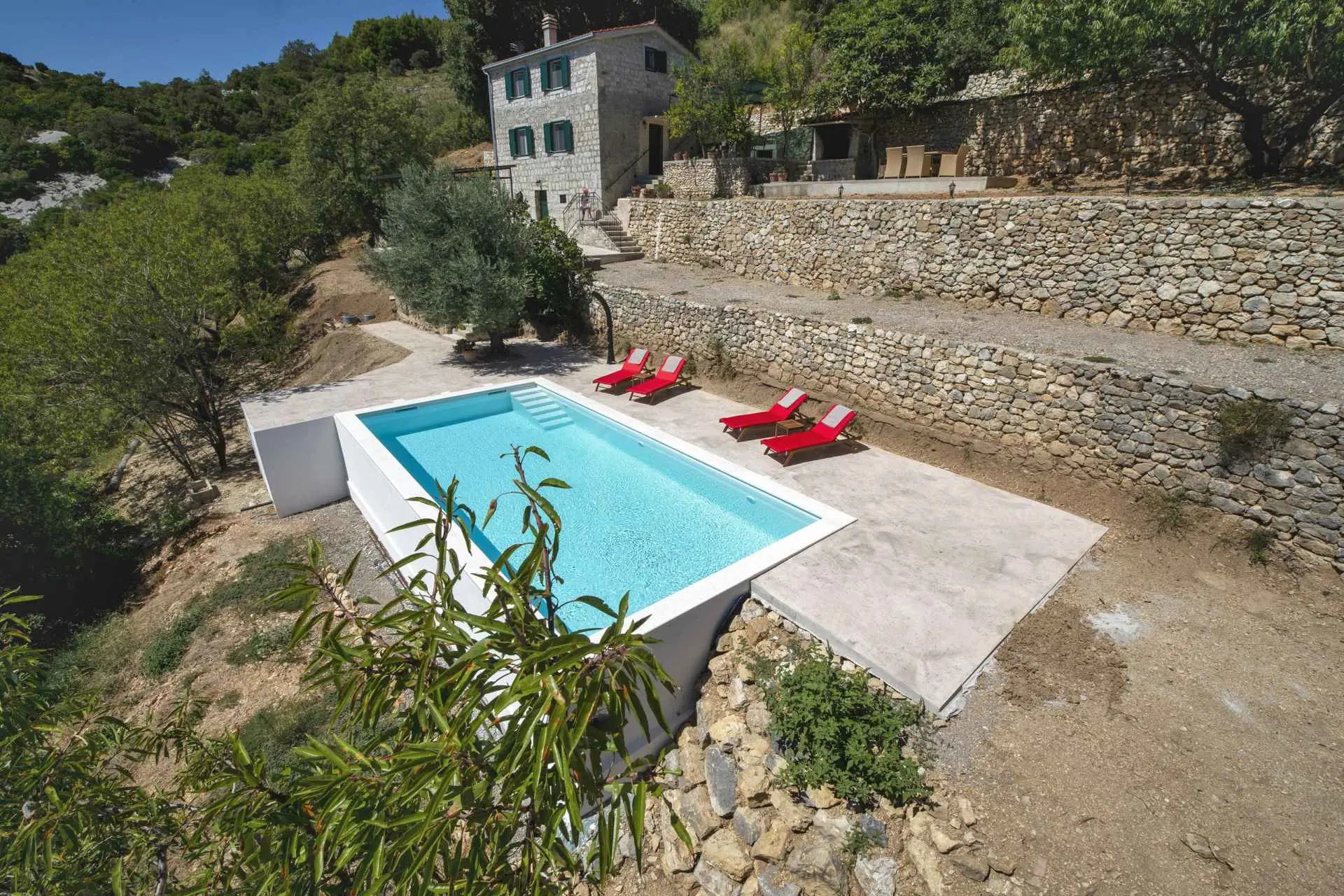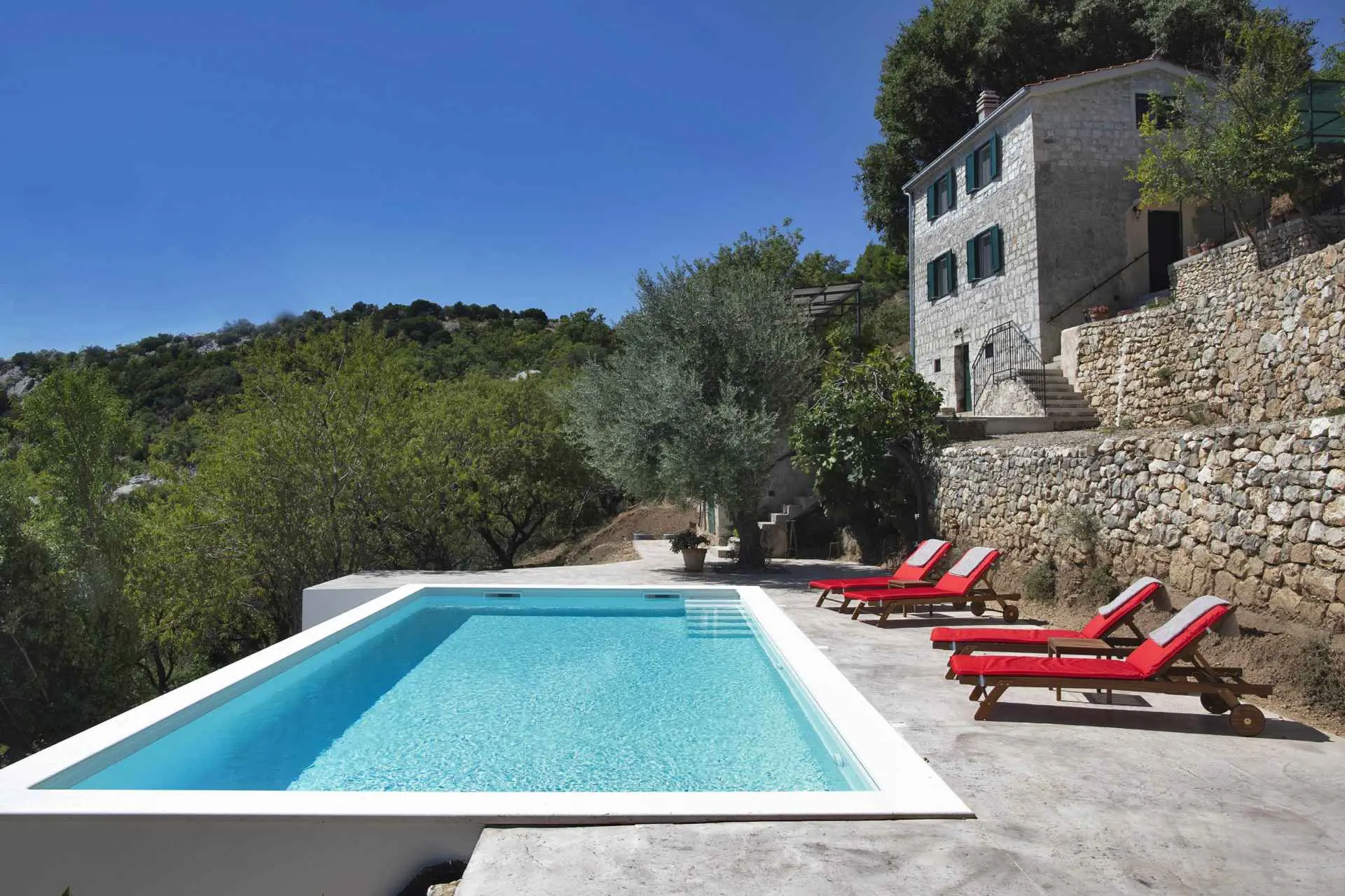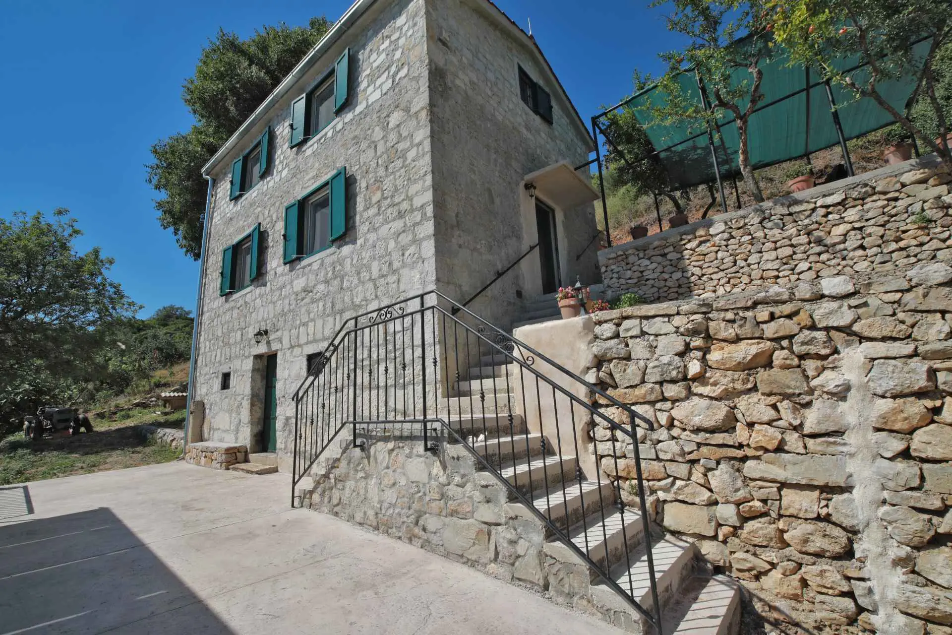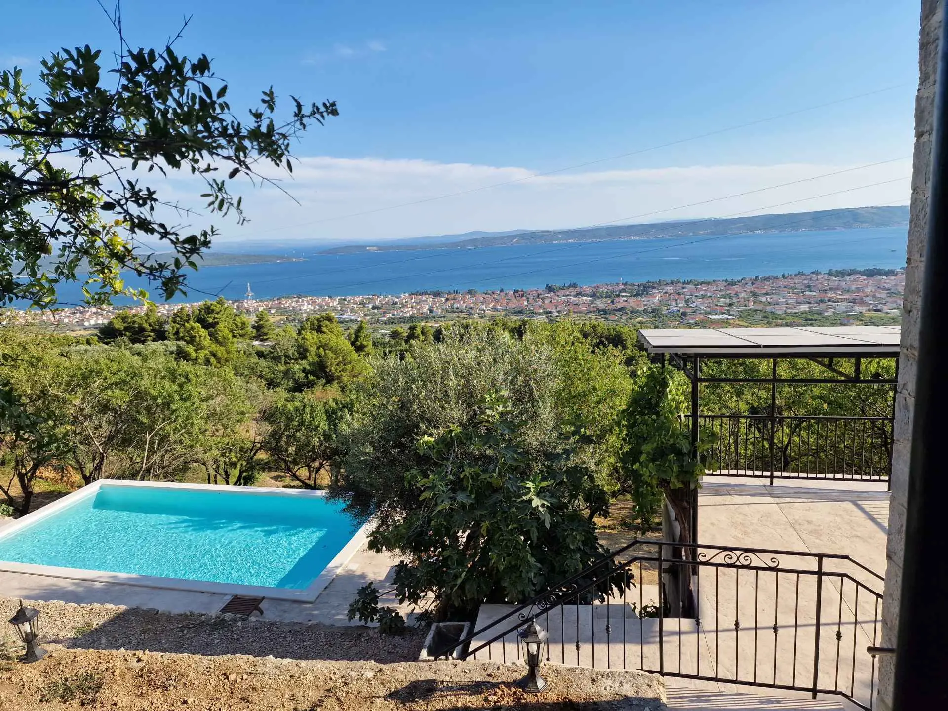 Nyt den fantastiske utsikten i dette private, århundre gamle steinhuset som ligger på en 6ooom2 tomt, med utsikt over hele Kaštela-bukten. Miljøvennlig, bærekraftig og med 50m2 basseng med elektrolyse! Bare 5 minutters kjøring fra sentrum og alle fasiliteter den tilbyr. Huset ligger i enden av en grusvei 250m over havet og ligger på en 6000m2 tomt. Det er helt utenfor nettet og miljøvennlig med solsystemet, vannoppsamleren, bioseptiktankene. 1. etasje består av åpen kjøkkenløsning, spisestue og stue, 2. etasje har 2 soverom med queen size-senger og et komplett bad. Utendørs: et par uteplasser, stor grillplass, basseng, frukt-, mandel- og oliventrær og en liten vingård i ferd med å lages. Huset ligger høyt oppe i åsene og en del av veien er ikke asfaltert. Alle typer biler kan gå opp, men vi anbefaler virkelig ikke å ta en sportsbil der oppe. Huset drives av solcellepaneler. HUSREGLER 1. 30% depositum ved bestilling, resten betales kontant/bankvarsel ved ankomst. 2. Innsjekking er kl. 16.00, utsjekking innen kl. 10.00. 3. Husdyr er velkomne, men må forhåndsgodkjennes. 4. Eiendommen er ikke egnet for små barn/babyer.(1) Vi forventer at vår gjest er respekt for huset og eiendommen. 5. I henhold til vår lov, må hver gjest være sjekket inn, så må oppgi et pass eller personlig identifikasjonskort for å gjøre det. 6. På grunn av det ovennevnte kan gjester ikke ta med besøkende eller NOEN ANDRE til huset mitt på noe tidspunkt, over lengre tid, uten min tillatelse. 7. Røyking er kun tillatt ute! 8. Gjester må informere meg hvis de bremser eller skader noe. 9. Tap av nøkler belastes med 30 euro. 10. Ved vesentlig brudd på husordensregler vil reservasjonen umiddelbart bli avsluttet og alle gebyrer tapt.