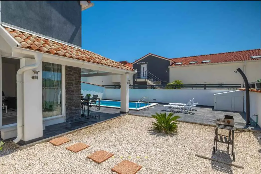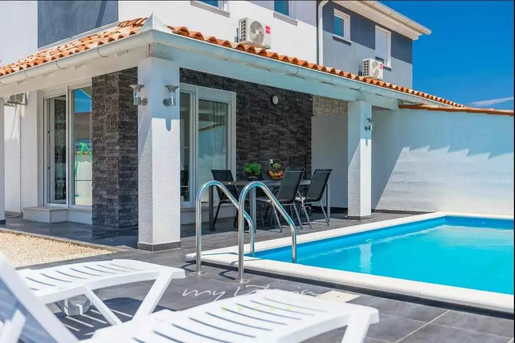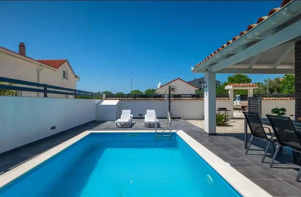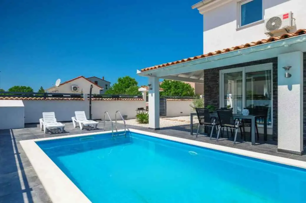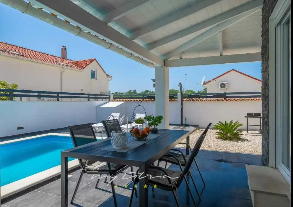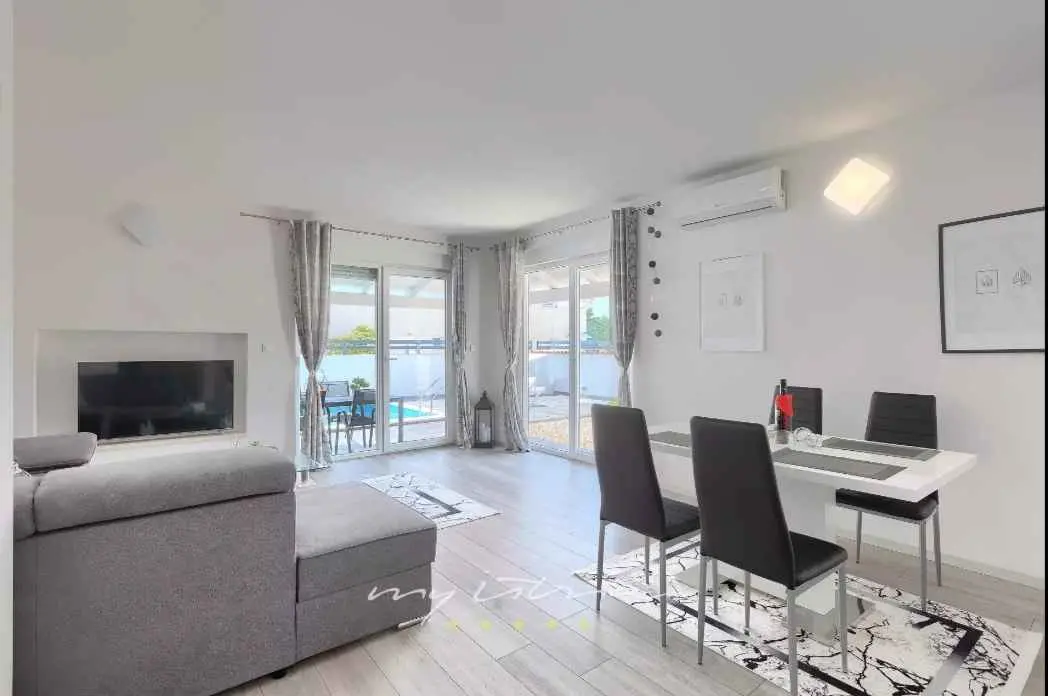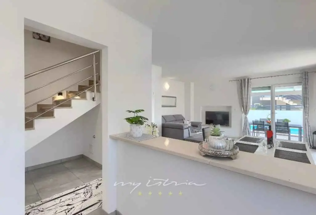 Villa Sarah er en moderne og elegant villa bygget i 2022 med materialer av høyeste kvalitet. Villaen ligger i en ekstremt rolig beliggenhet, som er perfekt for avslapning og nytelse. Huset ligger mellom de vakre istriske byene Medulin, Pula, Poreč og Rovinj og den vakre Adriaterhavskysten. Villa Sarah ligger også mellom den vakre byen Fažana og den verdenskjente Brijuni nasjonalpark. Dette området byr på utrolig naturlig skjønnhet og et stort utvalg av aktiviteter for gjester som liker å utforske naturen. Du kan også dra på en båttur eller tilbringe dagen på de vakre strendene. Villa Sarah dekker et areal på 100 kvadratmeter og består av 2 soverom, 2 bad, 1 toalett, gang, kjøkken og romslig stue. Alle elementene i villaen er av topp kvalitet og moderne design, de er utstyrt med moderne kvalitetsmøbler. Villaen har et vakkert privat basseng, ideelt for å slappe av og nyte solfylte dager. Det er også en terrasse med fluktstoler og en grill for å nyte de vakre omgivelsene med lukten av grill. Villa Sarah har også privat parkering for gjester som kommer med bil. Dette er et ideelt sted for de som ønsker å rømme fra hverdagens stress og folkemengder. Gjestene vil ha tilgang til alle fasilitetene som villaen tilbyr, alle med fullstendig privatliv og fred. Kom og nyt alt Villa Sarah har å tilby. Velkommen!
