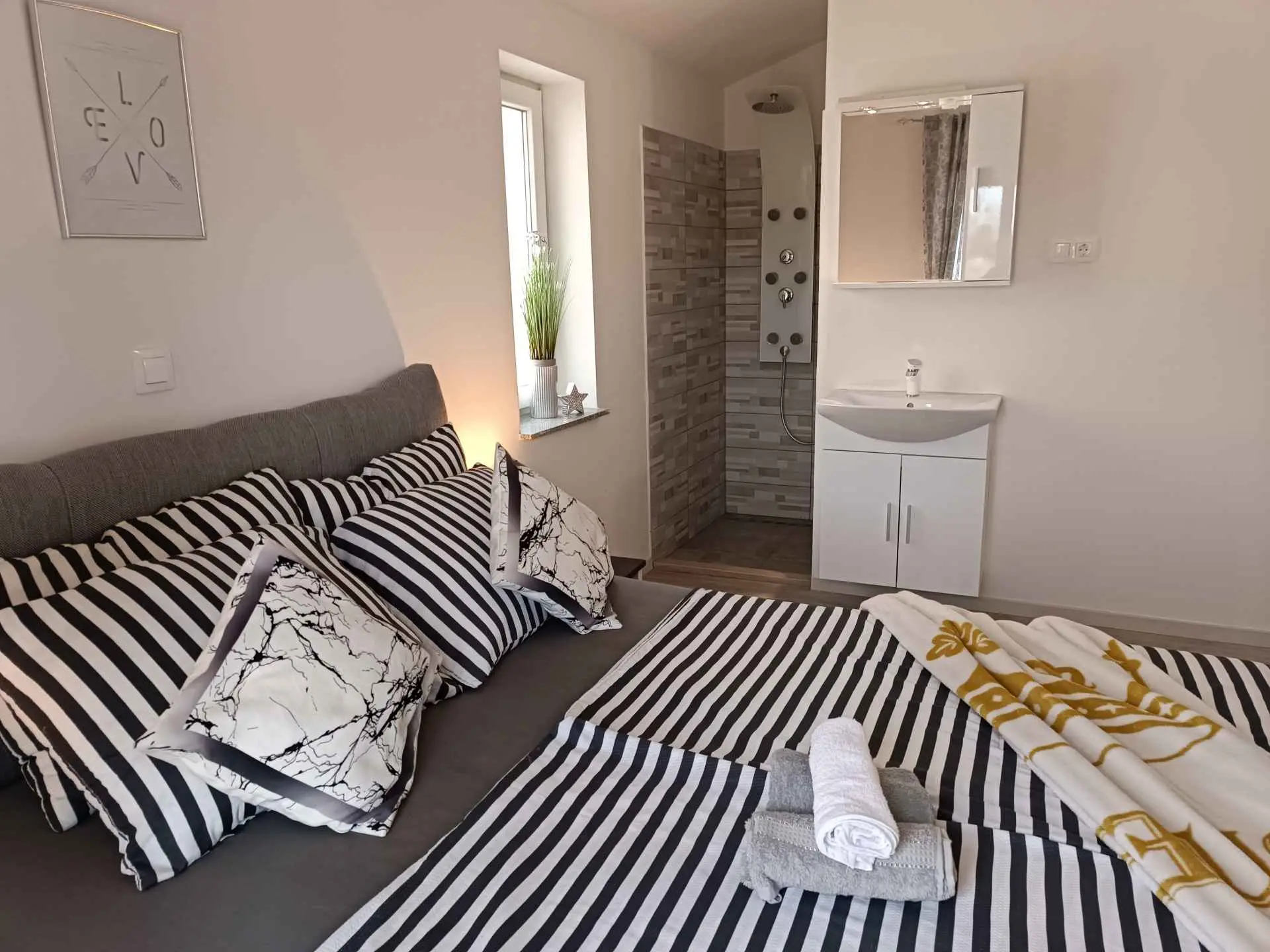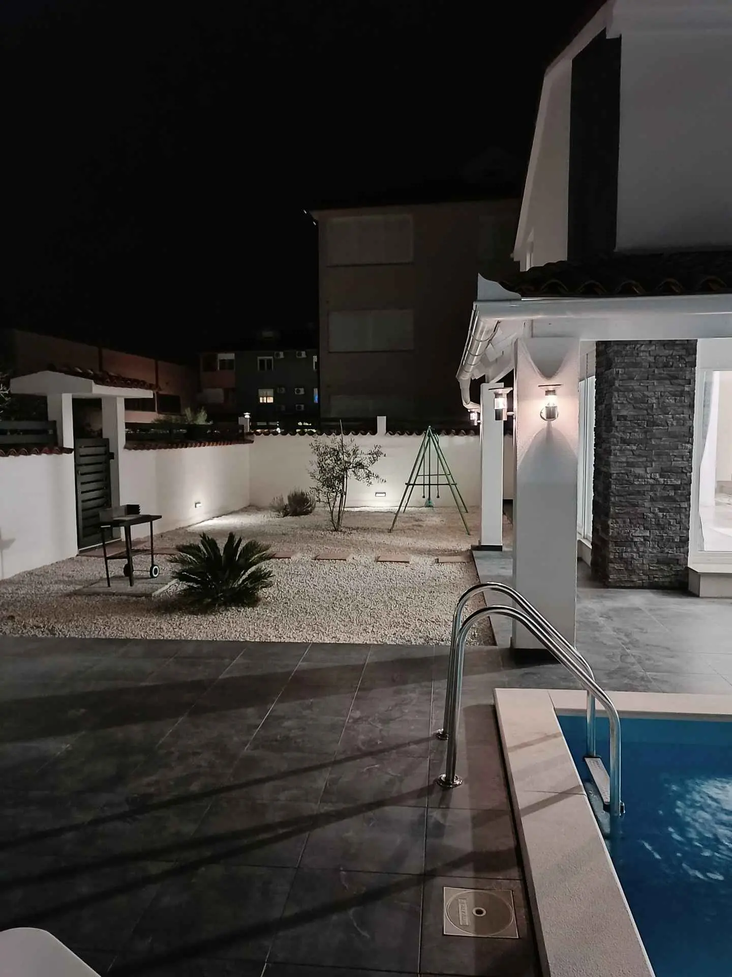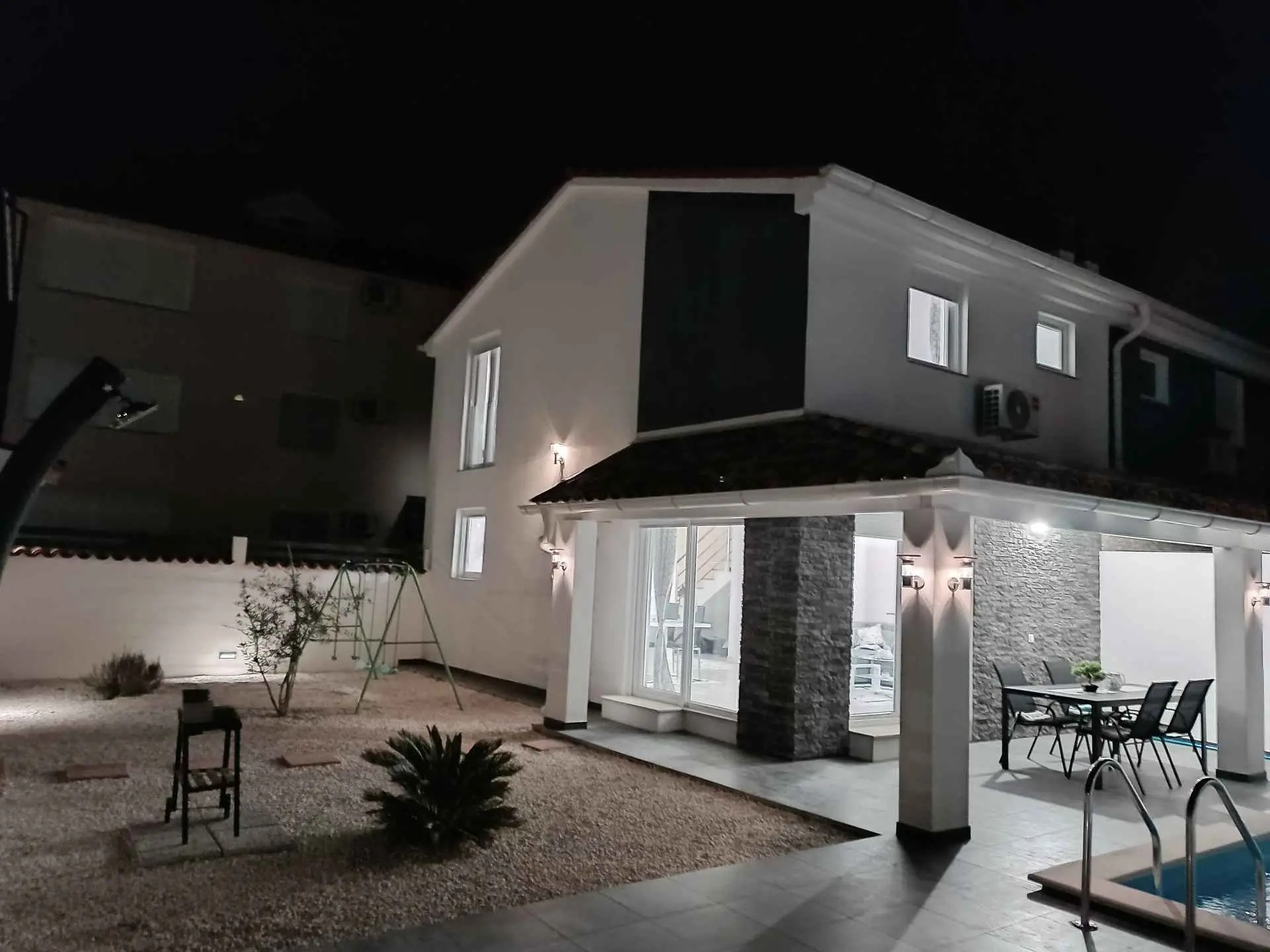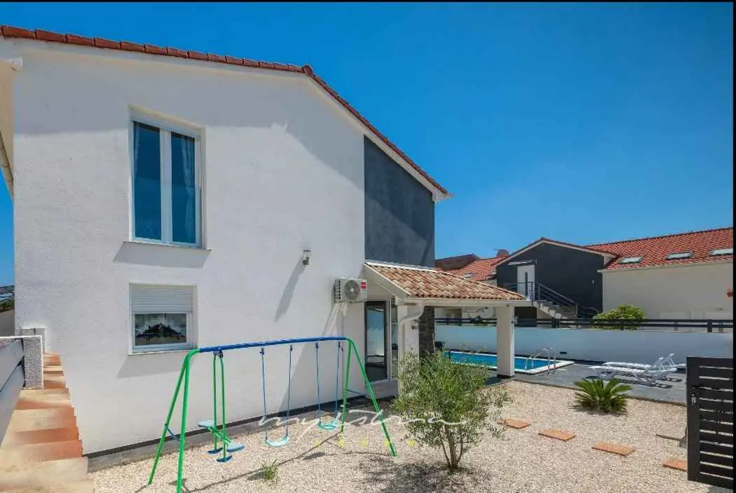 Villa Sarah er en moderne og elegant villa bygget i 2022 med materialer av høyeste kvalitet. Villaen ligger i en ekstremt rolig beliggenhet, som er perfekt for avslapning og nytelse. Huset ligger mellom de vakre istriske byene Medulin, Pula, Poreč og Rovinj og den vakre Adriaterhavskysten. Villa Sarah ligger også mellom den vakre byen Fažana og den verdenskjente Brijuni nasjonalpark. Dette området byr på utrolig naturlig skjønnhet og et stort utvalg av aktiviteter for gjester som liker å utforske naturen. Du kan også dra på en båttur eller tilbringe dagen på de vakre strendene. Villa Sarah dekker et areal på 100 kvadratmeter og består av 2 soverom, 2 bad, 1 toalett, gang, kjøkken og romslig stue. Alle elementene i villaen er av topp kvalitet og moderne design, de er utstyrt med moderne kvalitetsmøbler. Villaen har et vakkert privat basseng, ideelt for å slappe av og nyte solfylte dager. Det er også en terrasse med fluktstoler og en grill for å nyte de vakre omgivelsene med lukten av grill. Villa Sarah har også privat parkering for gjester som kommer med bil. Dette er et ideelt sted for de som ønsker å rømme fra hverdagens stress og folkemengder. Gjestene vil ha tilgang til alle fasilitetene som villaen tilbyr, alle med fullstendig privatliv og fred. Kom og nyt alt Villa Sarah har å tilby. Velkommen!