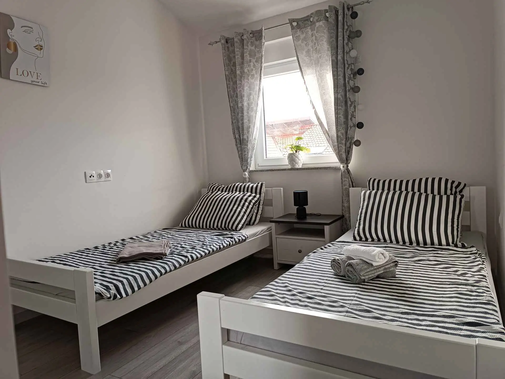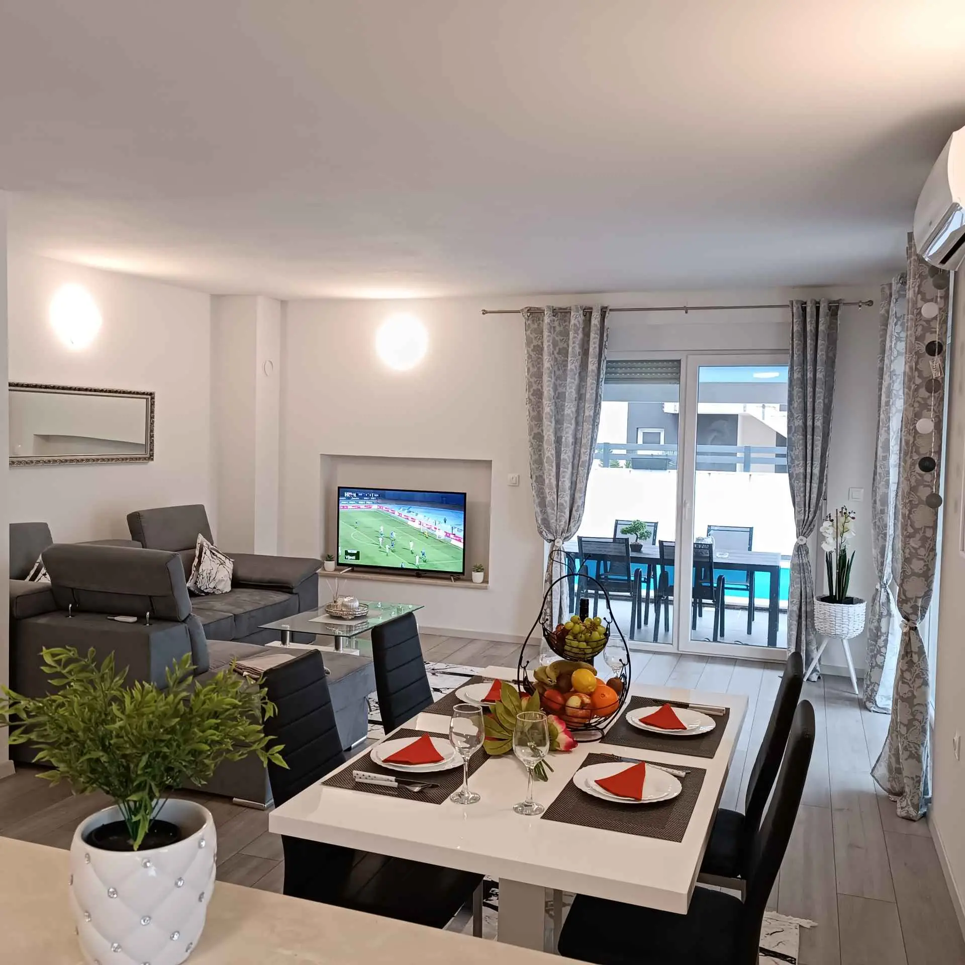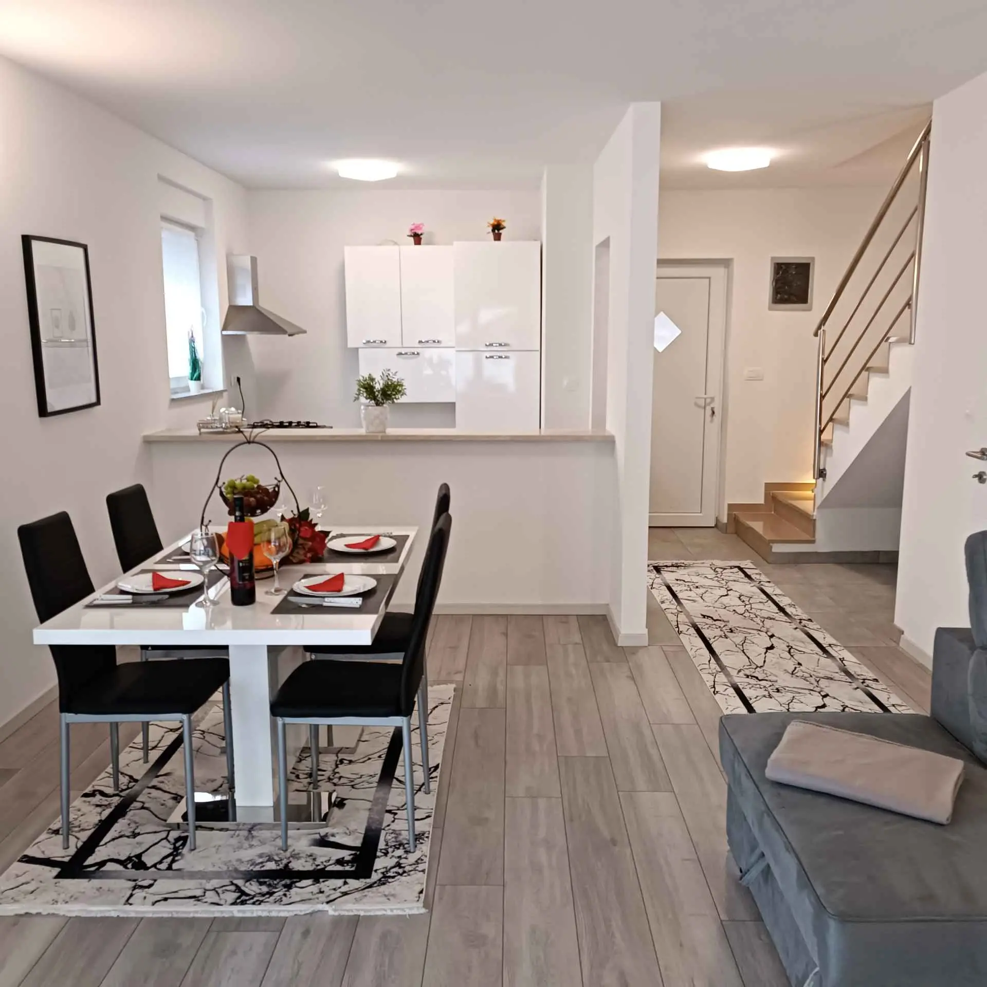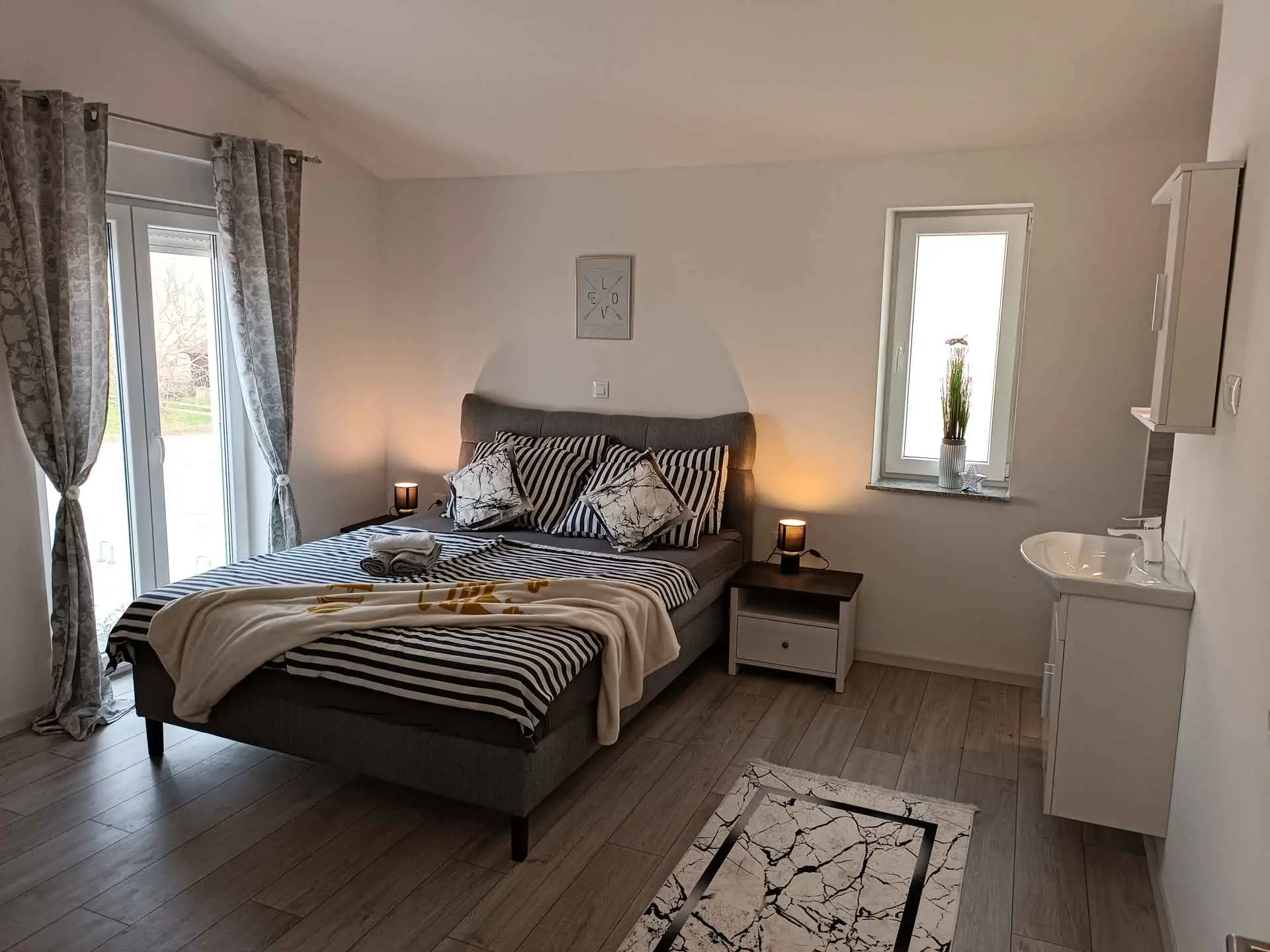 Villa Sarah er en moderne og elegant villa bygget i 2022 med materialer av høyeste kvalitet. Villaen ligger i en ekstremt rolig beliggenhet, som er perfekt for avslapning og nytelse. Huset ligger mellom de vakre istriske byene Medulin, Pula, Poreč og Rovinj og den vakre Adriaterhavskysten. Villa Sarah ligger også mellom den vakre byen Fažana og den verdenskjente Brijuni nasjonalpark. Dette området byr på utrolig naturlig skjønnhet og et stort utvalg av aktiviteter for gjester som liker å utforske naturen. Du kan også dra på en båttur eller tilbringe dagen på de vakre strendene. Villa Sarah dekker et areal på 100 kvadratmeter og består av 2 soverom, 2 bad, 1 toalett, gang, kjøkken og romslig stue. Alle elementene i villaen er av topp kvalitet og moderne design, de er utstyrt med moderne kvalitetsmøbler. Villaen har et vakkert privat basseng, ideelt for å slappe av og nyte solfylte dager. Det er også en terrasse med fluktstoler og en grill for å nyte de vakre omgivelsene med lukten av grill. Villa Sarah har også privat parkering for gjester som kommer med bil. Dette er et ideelt sted for de som ønsker å rømme fra hverdagens stress og folkemengder. Gjestene vil ha tilgang til alle fasilitetene som villaen tilbyr, alle med fullstendig privatliv og fred. Kom og nyt alt Villa Sarah har å tilby. Velkommen!