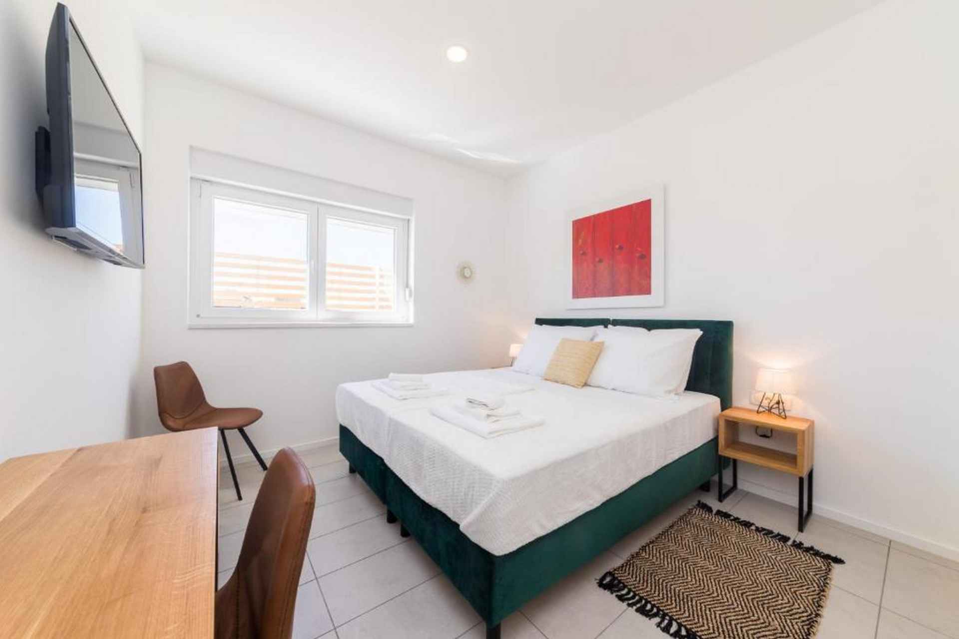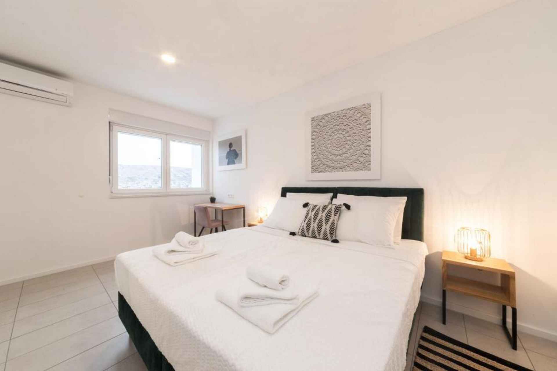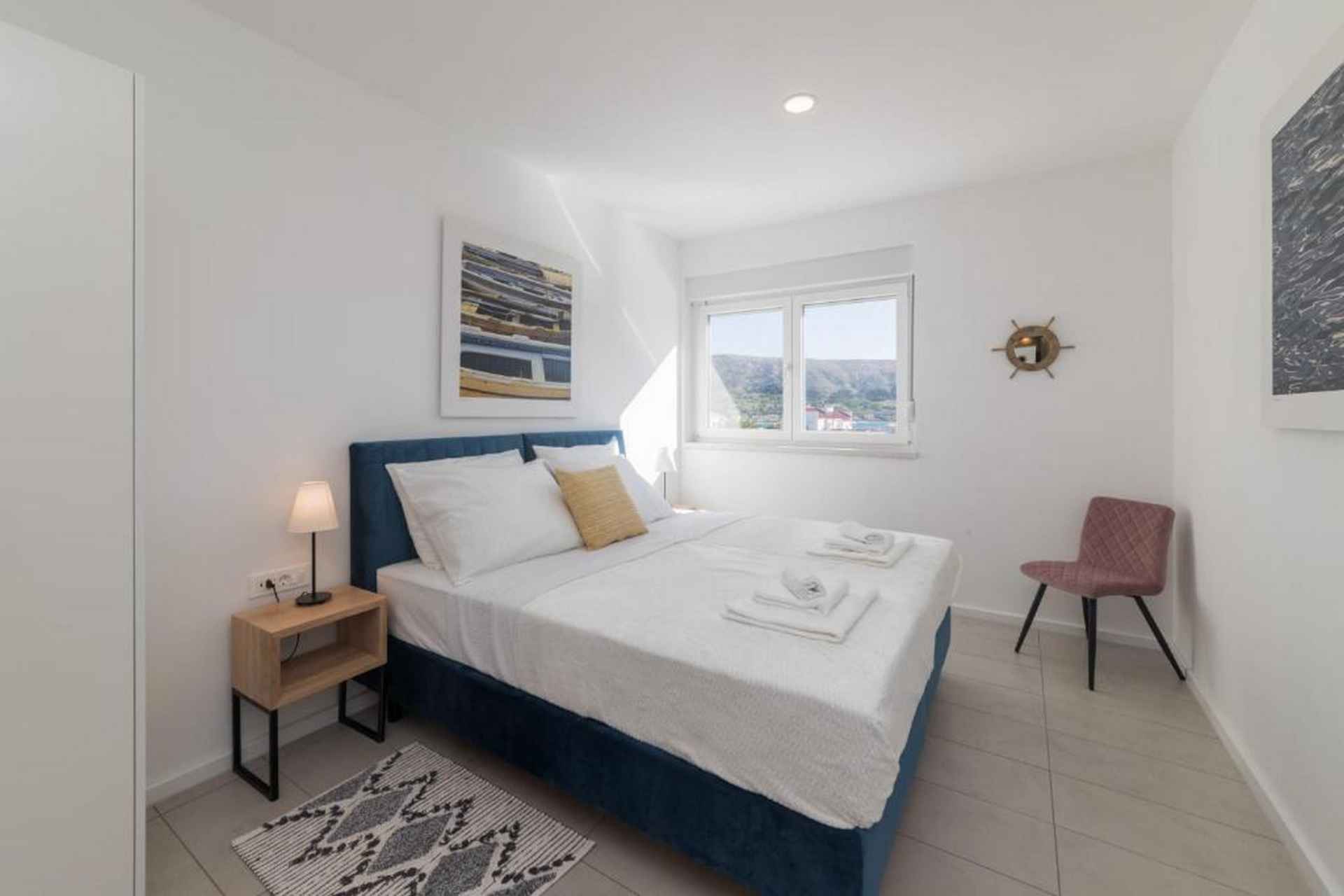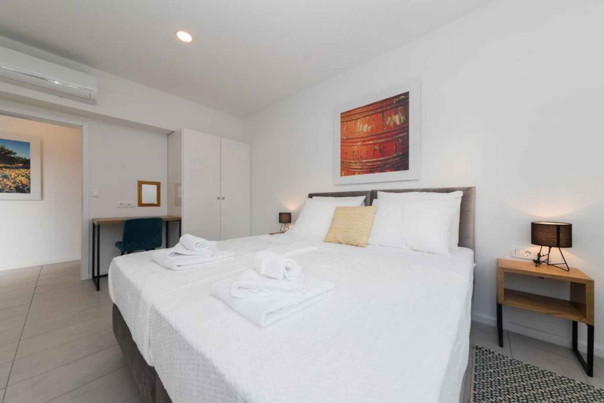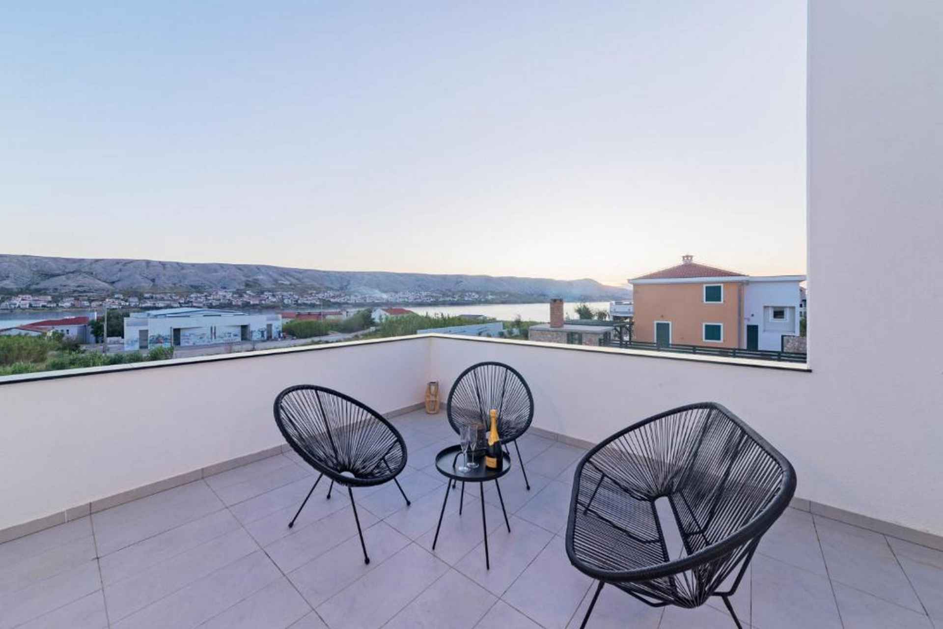 Oppdag en moderne og vakker villa som ligger på den sjarmerende øya Pag, og tilbyr en eksepsjonell ferieopplevelse for opptil 10 gjester. Denne romslige eiendommen kombinerer komfort, stil og fantastisk havutsikt som vil gjøre oppholdet ditt virkelig minneverdig. Villaen har fire soverom med seks komfortable senger, inkludert fire king-size-senger og to sovesofaer, noe som sikrer at alle har et perfekt sted å hvile. Med fire bad - fire med dusj og ett ekstra toalett - er det god plass for alle å forberede seg til dagens eventyr. Ditt private oppvarmede svømmebasseng (4x8 meter) er midtpunktet i utendørs avslapning, supplert med solsenger, utemøbler og et grillområde. Den inngjerdede tomten gir privatliv og sikkerhet, mens hagen og terrassen tilbyr flere plasser for å slappe av og nyte middelhavsatmosfæren. Innvendig finner du et fullt utstyrt uavhengig kjøkken med moderne fasiliteter, inkludert kjøleskap, fryser, oppvaskmaskin, stekeovn, kaffemaskin og alt nødvendig kjøkkenutstyr. Stuene har smart-TVer, spisebord og komfortable sitteplasser, noe som skaper et perfekt miljø for gruppesamlinger. Villaen ligger kun 550 meter fra stranden Pagus, med både sand- og steinstrand, og tilbyr praktisk tilgang til lokale attraksjoner. Et supermarked, restaurant og kaffebar ligger innen gangavstand, mens gamlebyen og flyplassen i Zadar er lett tilgjengelig for dagsturer. Ytterligere fasiliteter inkluderer klimaanlegg, WiFi, privat parkering for tre biler og en sterk boks for verdisakene dine. Ett lite kjæledyr er velkommen, noe som gjør dette til et ideelt valg for familier og små grupper som søker et komfortabelt kroatisk feriehus. Barneseng og barnestol er på forespørsel. Røyking er ikke tillatt. Ett kjæledyr er tillatt, opptil maks 10 kilo og det betales kontant ved ankomst 20 euro per bestilling. Det er TV i stuen og ett soverom. Ett separat toalett, fire bad (3 med eget bad). Utendørsbasseng, møbler, dusj, solsenger og BBQ.