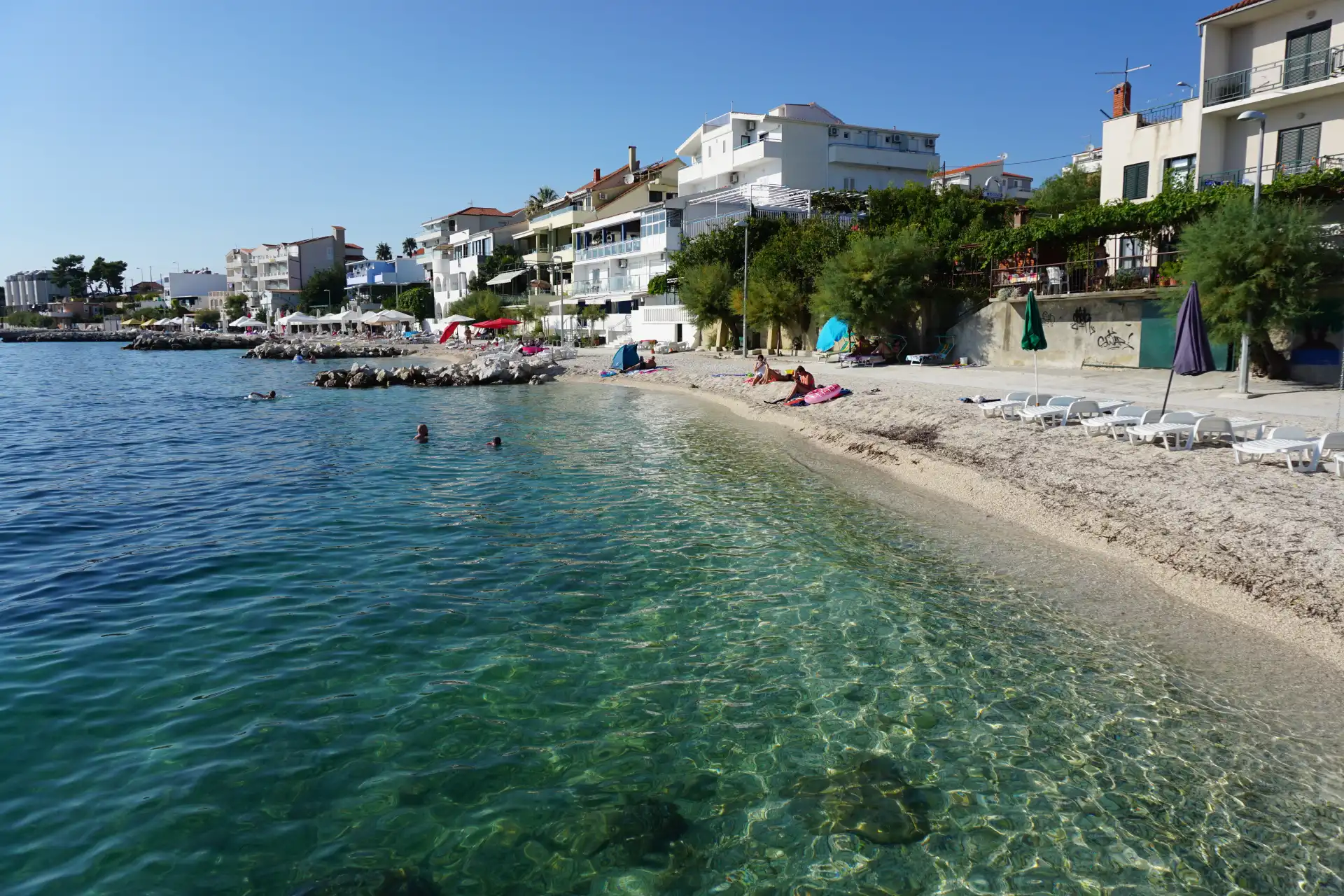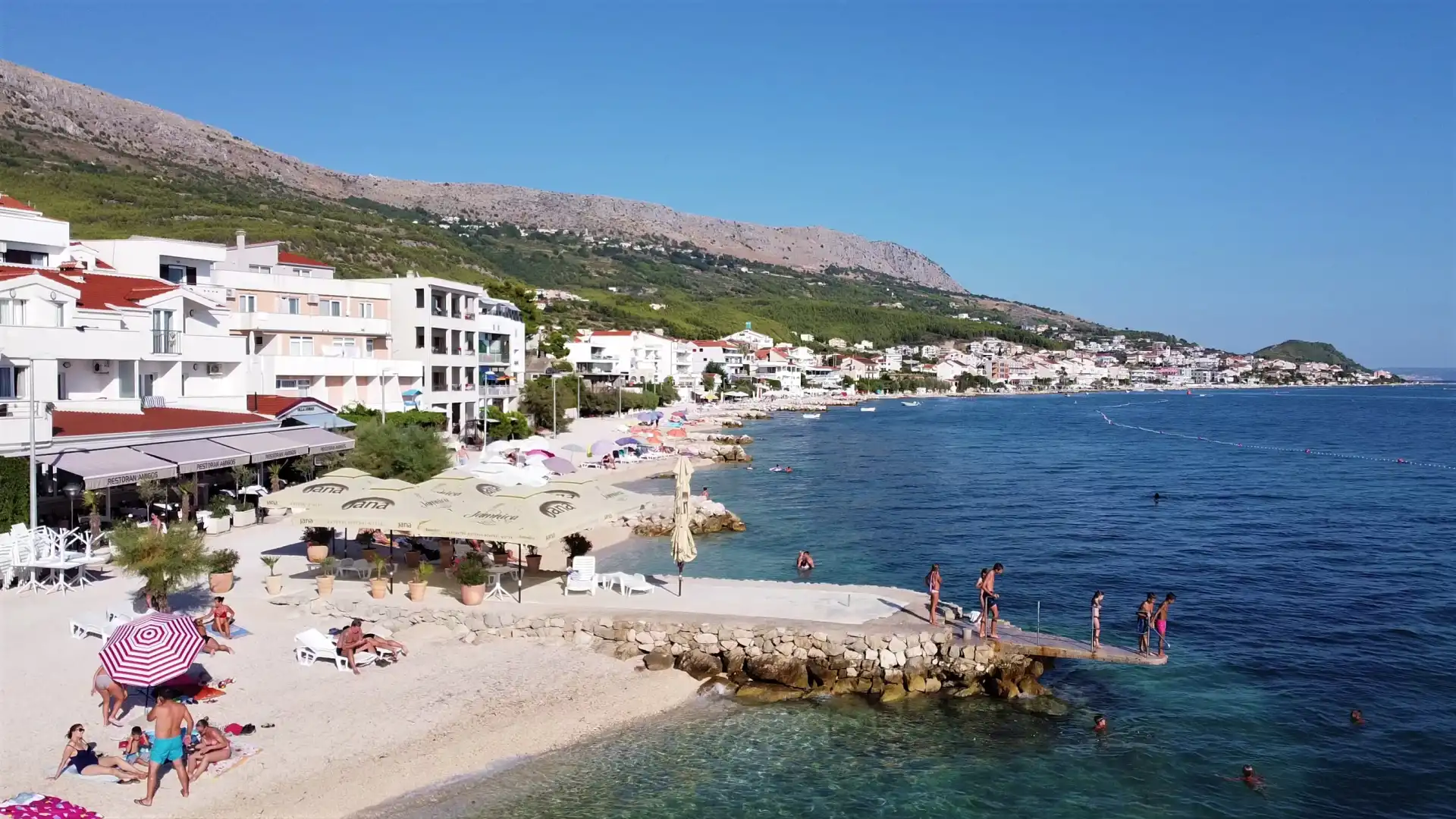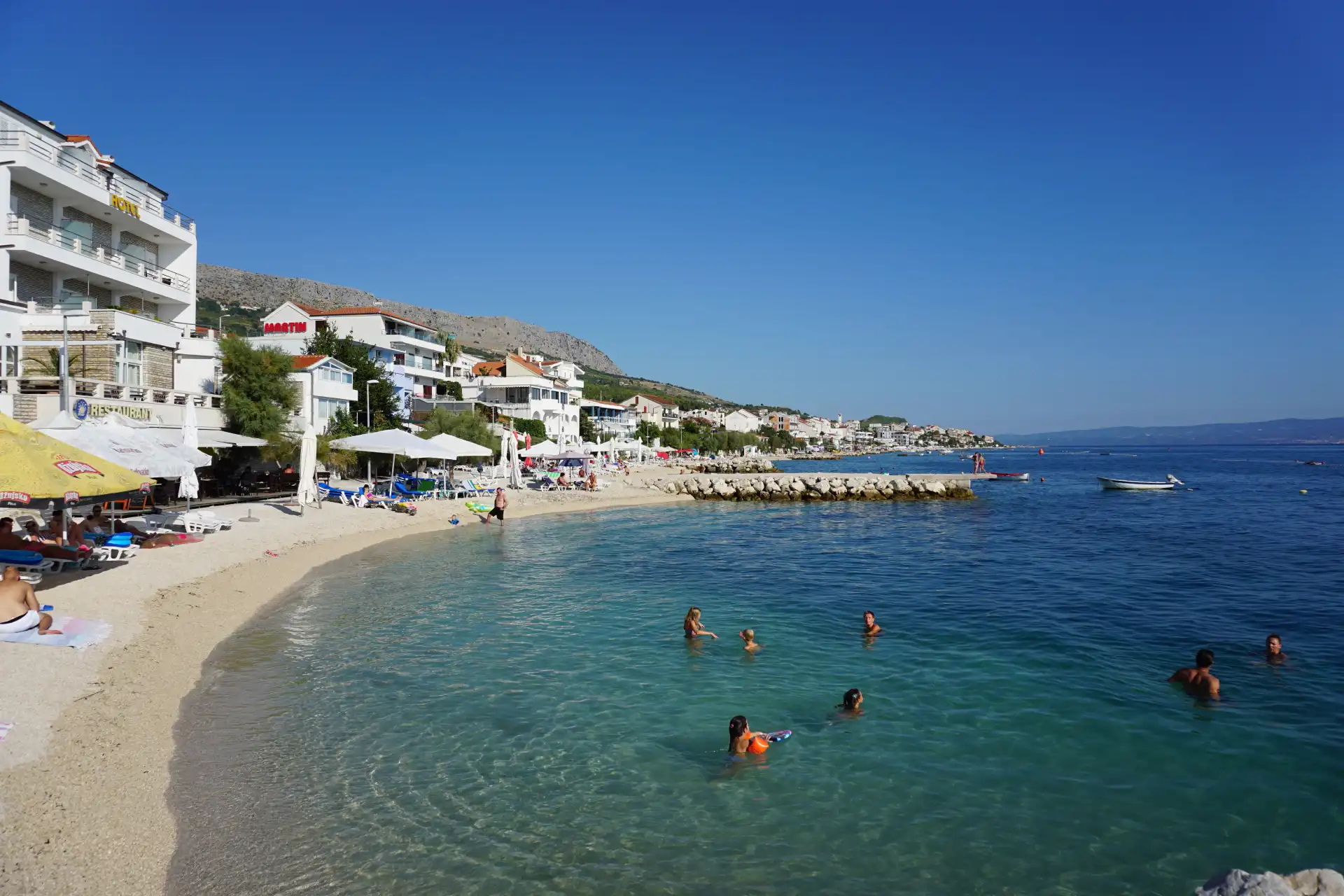 Podstrana er et lite turiststed som ligger på den pittoreske sørøstre delen av Split-Dalmatia fylke, 8 km fra Split. Den kystnære delen av Podstrana strekker seg 6 km langs den 533 m høye bakken Perun etter den 6 km lange innrykkede kystlinjen med en rekke vakre grusbukter og strender. I bakken av de pittoreske åsene er gamle olivenlunder, steingjerder, vingårder og ferskenhage, omgitt av grøntområder og vill underbørste og middelhavsplanter. Turisttilbudet består av mer enn 2500 senger, de fleste av dem er leiligheter i privat innkvartering. Hvis Podstrana er ditt valg for ferier og ferier, i tillegg til sin naturlige skjønnhet og vennlige verter, tilbyr den aktiv rekreasjon som fotturer og sykling. Du kan drive med forskjellige idretter: windsurfing, seiling, sportskatamaraner, vannski og rafting på elven Cetina, som ligger bare 15 km unna. I nærheten av de historiske byene Split, Trogir, Salona, Klis og Sinj lar alle gjestene utforske den rike historien til Dalmatia, dens innbyggere og skikker. Besøk Podstrana og bo i en leilighet eller et rom i den private innkvarteringen og møte vennlige lokalbefolkningen og verter. Velkommen til Podstrana og Dalmatia!