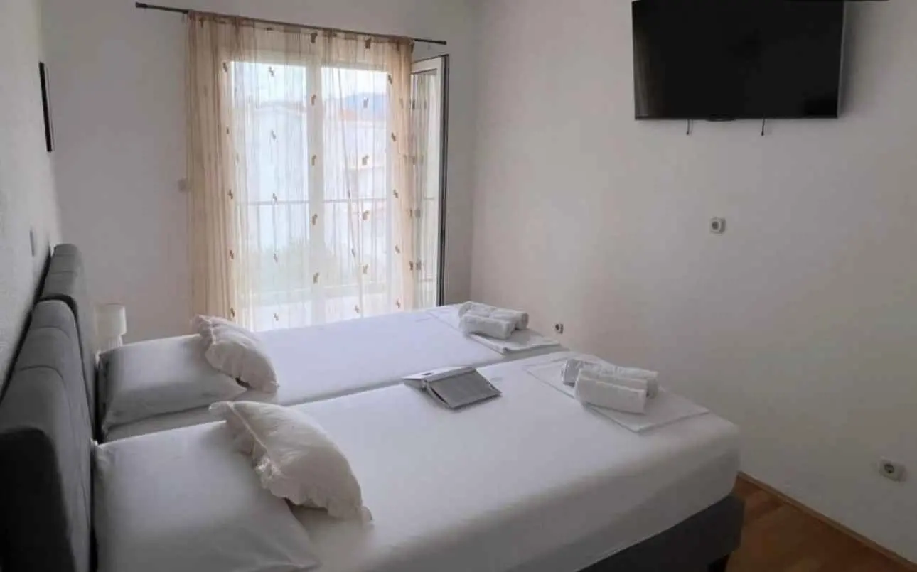 Komfortabel leilighet på 100 m2 med to soverom og mulighet for sovesofa i stuen ved opphold på mer enn 4 personer. Barneseng er også tilgjengelig på forespørsel. Fullt utstyrt bad med 1,5 senger. Parkeringsplass tilgjengelig i hagen vår.