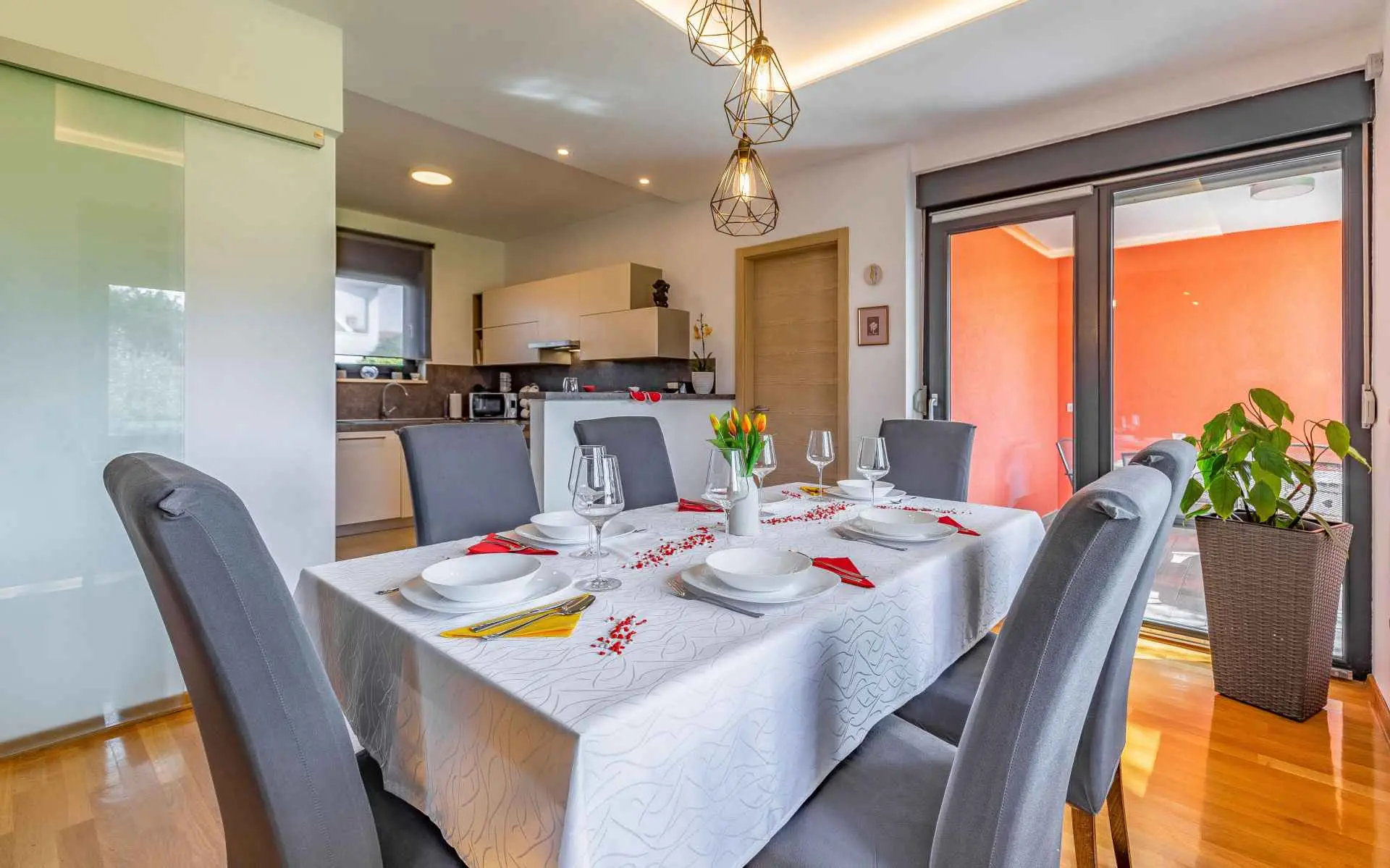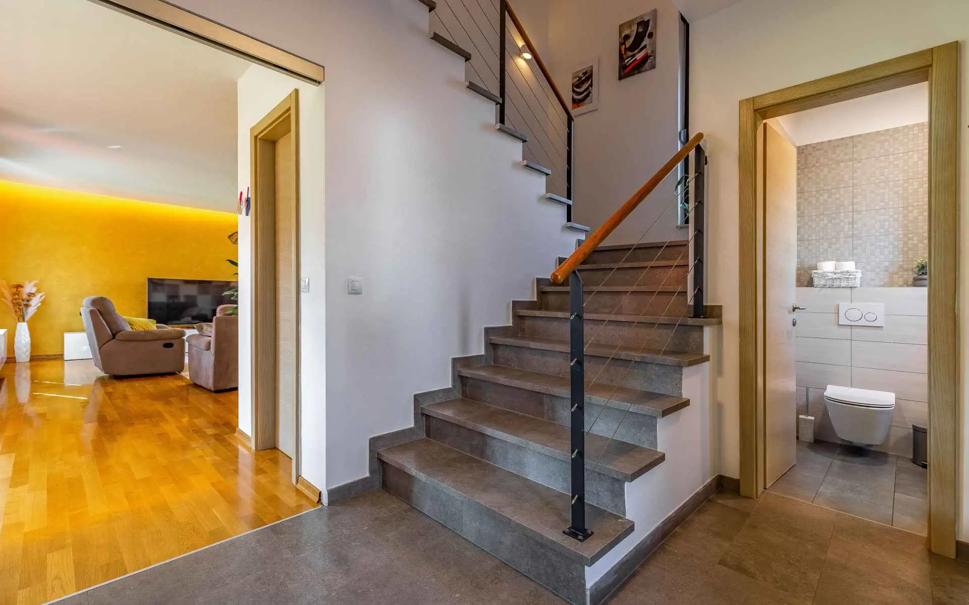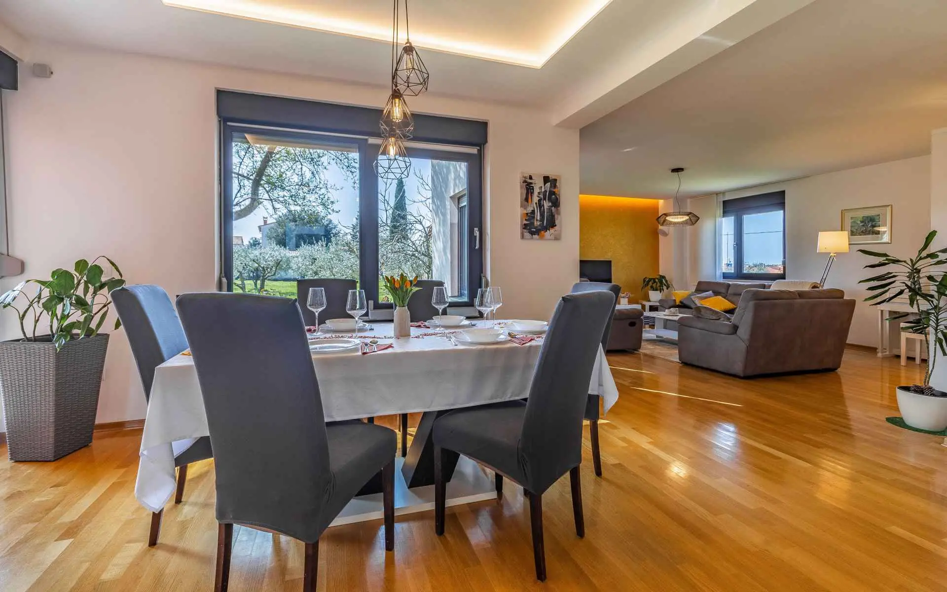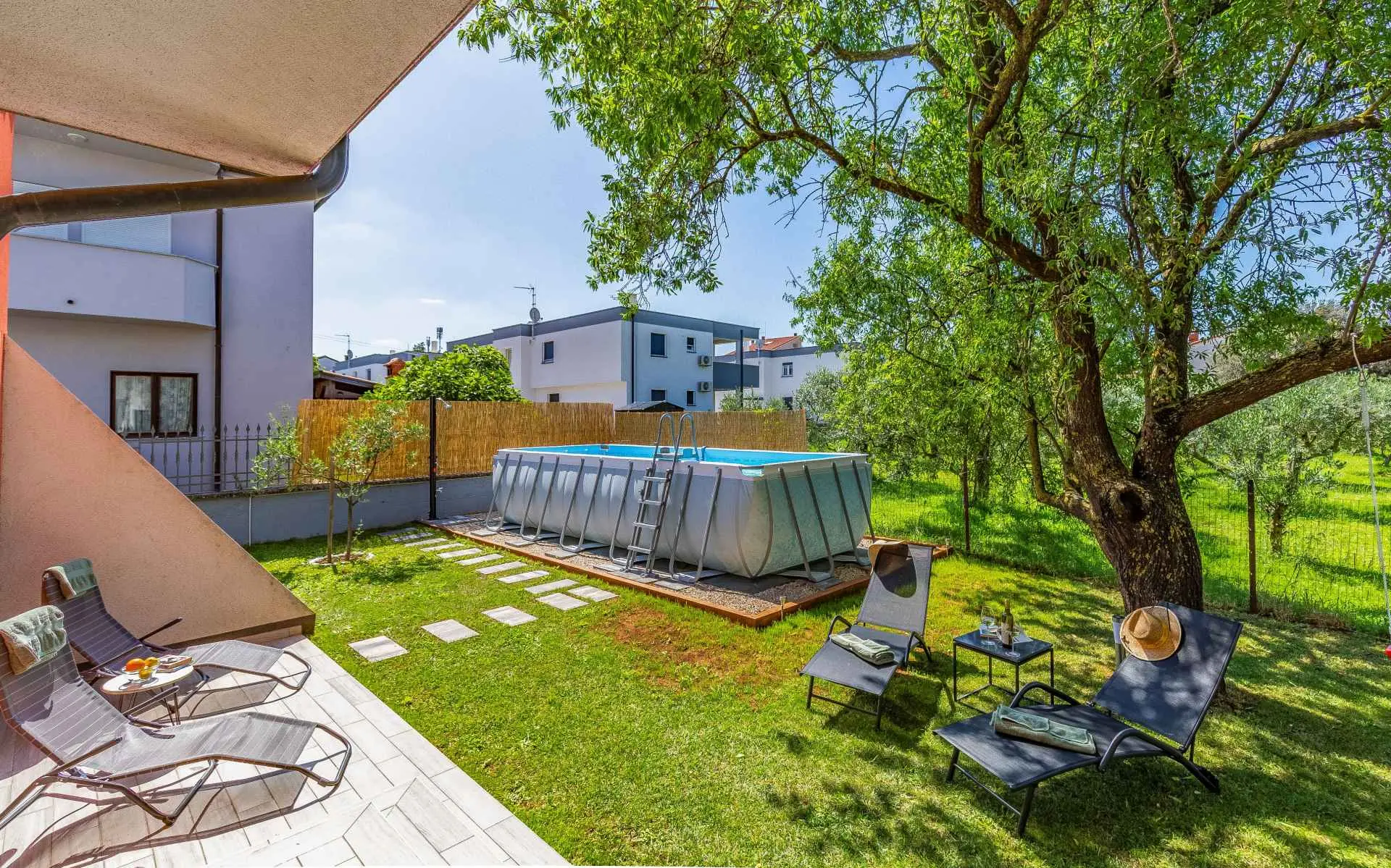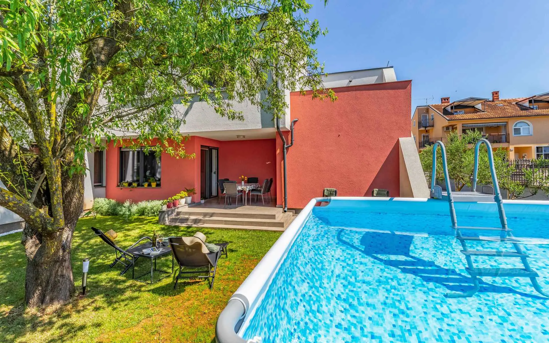 Et moderne feriehus med romslig boareal og et utendørs svømmebasseng, i forstedene til den gamle byen Pula, langt fra byens støy og mas, men likevel nær sentrum. Boligen har all nødvendig komfort for en hyggelig ferie. Tunet er inngjerdet slik at barna kan leke mens du soler deg ved bassenget. Grill inviterer deg også til å tilbringe avslappende timer med familien din utendørs på terrassen eller plenen. Huset har en romslig stue med spisestue, kjøkken og toalett i første etasje. Ovenpå er det 3 romslige rom, 2 bad og vaskerom. Alle rom er utstyrt med alle nødvendige møbler og utstyr du måtte trenge. Det er et 15m2 svømmebasseng i gården, med fluktstoler og en utendørs dusj, samt en grill ved siden av verandaen. For familier med små barn tilbyr vi en barneseng som er gratis, så gi oss beskjed hvis du trenger det. I hele huset er tilgjengelig Wi-Fi-nettverk. Sentrum av den gamle byen Pula ligger ca. 3 kilometer unna, og den store stranden ligger 5 kilometer unna.