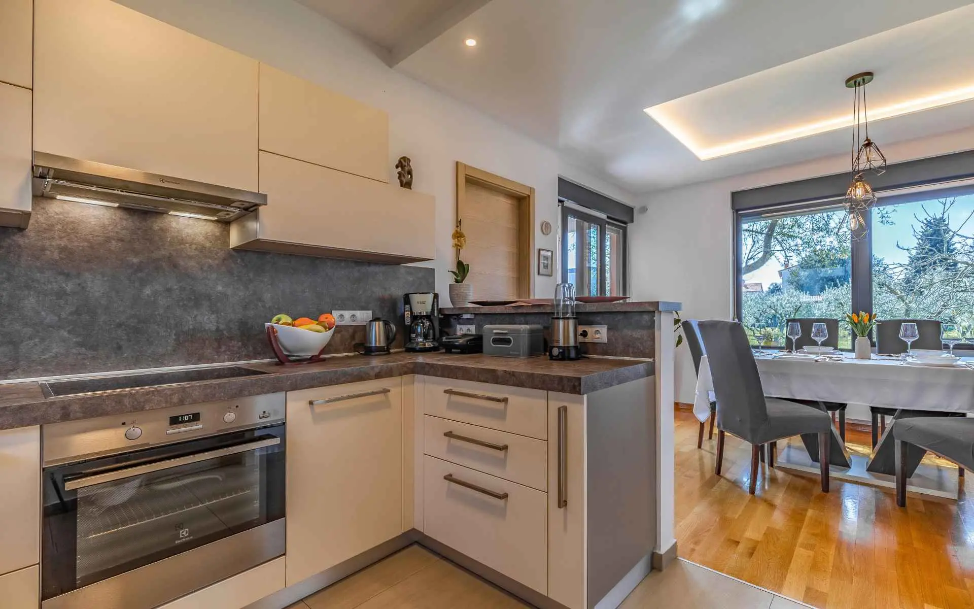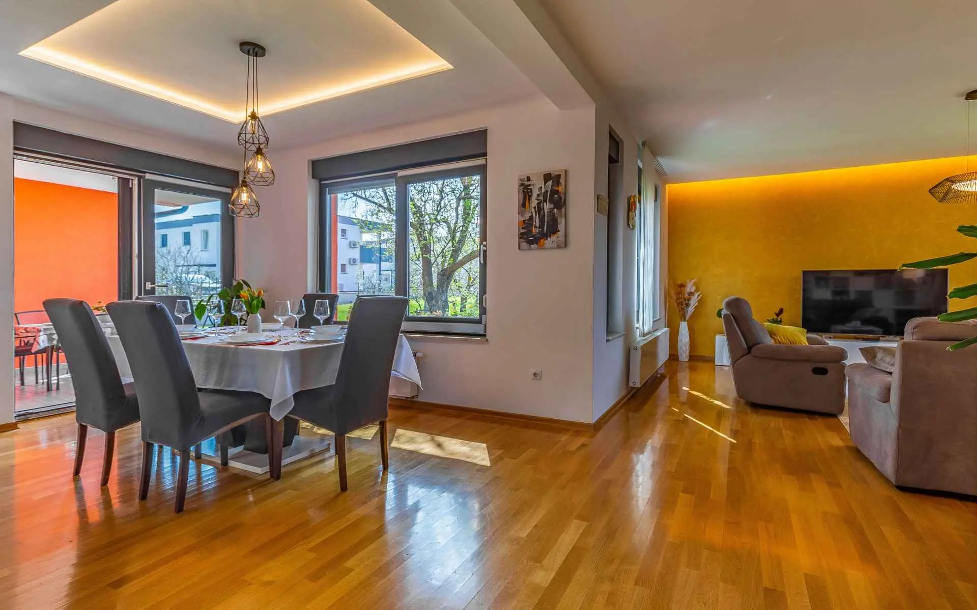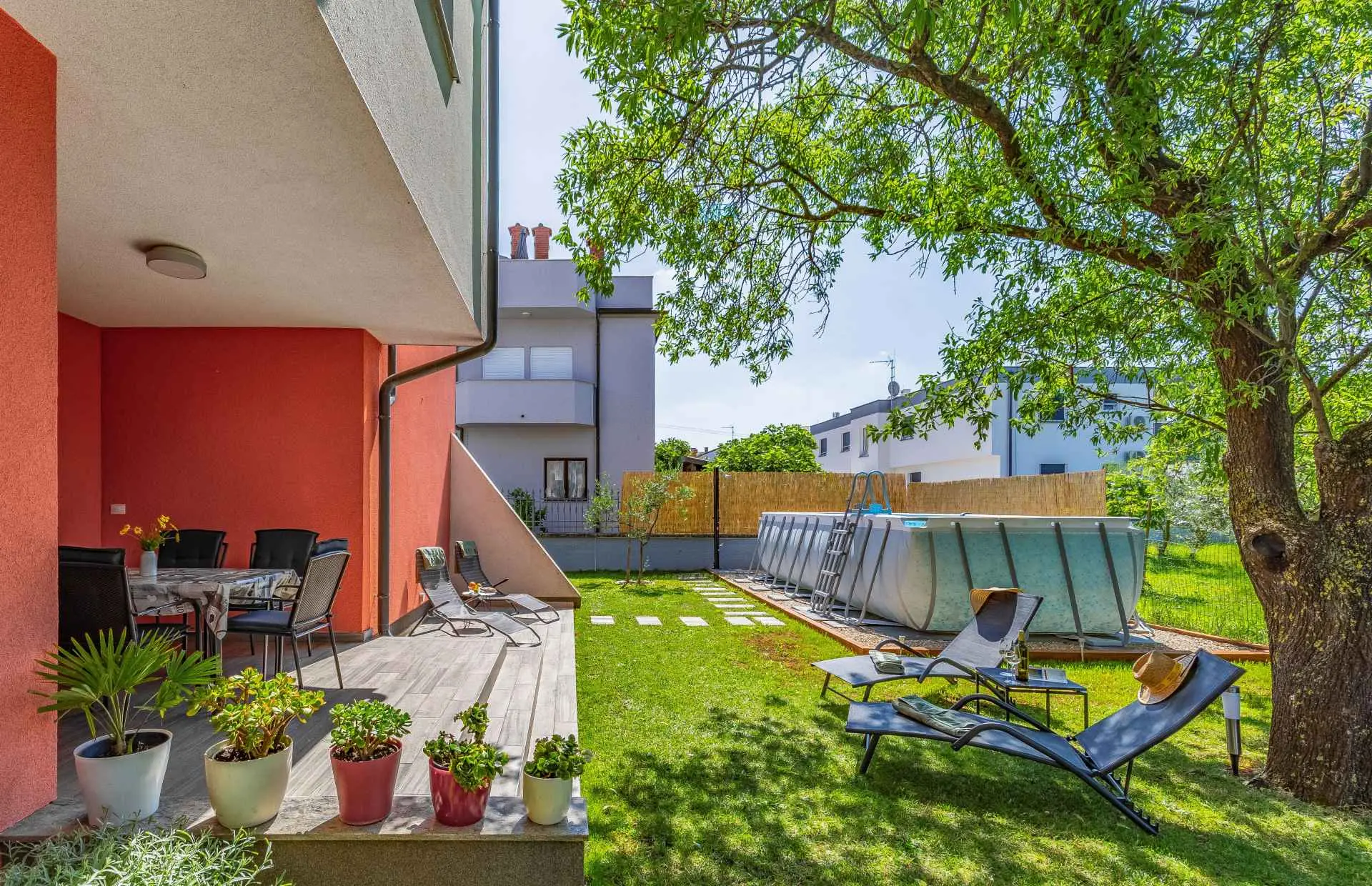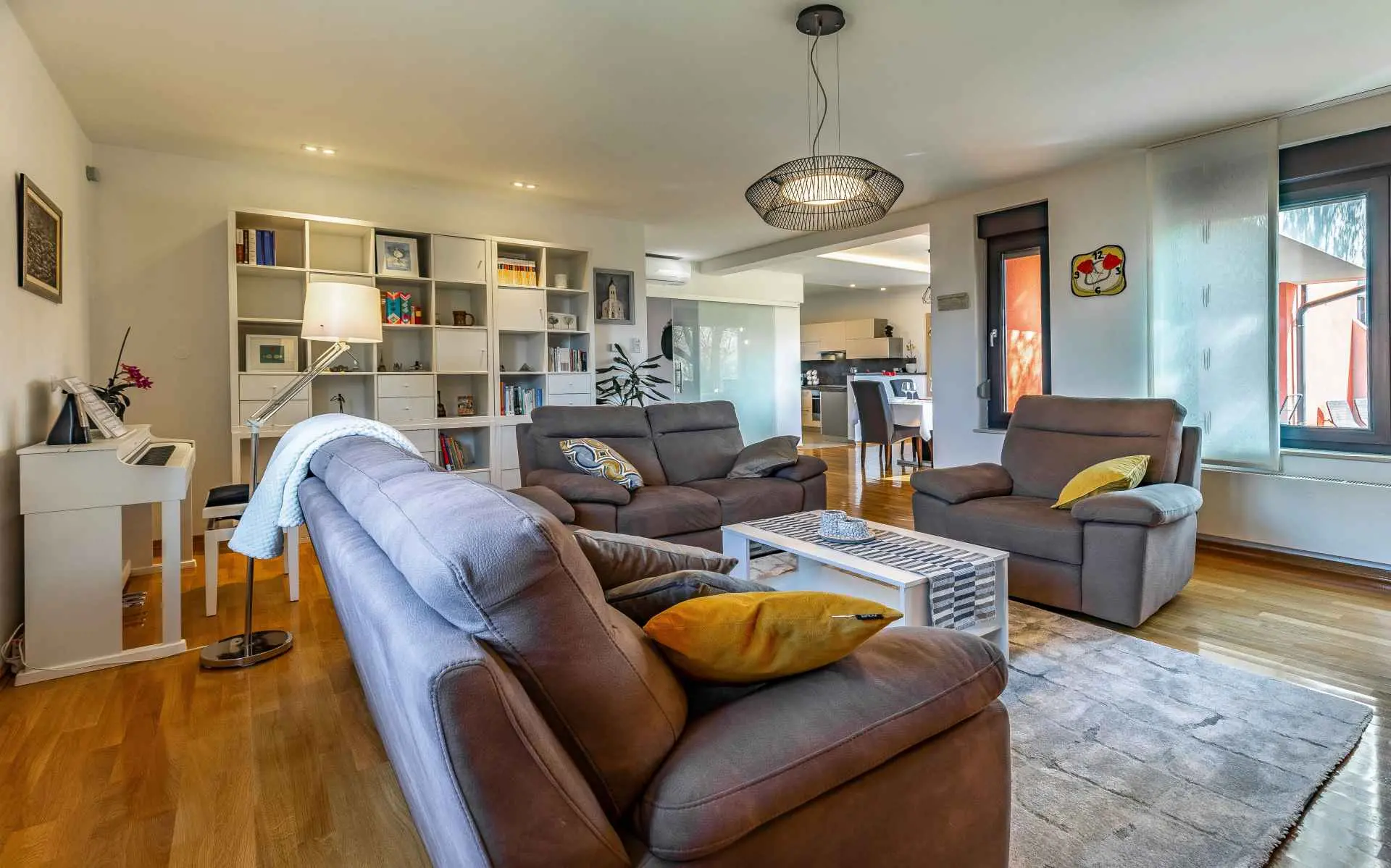 Et moderne feriehus med romslig boareal og et utendørs svømmebasseng, i forstedene til den gamle byen Pula, langt fra byens støy og mas, men likevel nær sentrum. Boligen har all nødvendig komfort for en hyggelig ferie. Tunet er inngjerdet slik at barna kan leke mens du soler deg ved bassenget. Grill inviterer deg også til å tilbringe avslappende timer med familien din utendørs på terrassen eller plenen. Huset har en romslig stue med spisestue, kjøkken og toalett i første etasje. Ovenpå er det 3 romslige rom, 2 bad og vaskerom. Alle rom er utstyrt med alle nødvendige møbler og utstyr du måtte trenge. Det er et 15m2 svømmebasseng i gården, med fluktstoler og en utendørs dusj, samt en grill ved siden av verandaen. For familier med små barn tilbyr vi en barneseng som er gratis, så gi oss beskjed hvis du trenger det. I hele huset er tilgjengelig Wi-Fi-nettverk. Sentrum av den gamle byen Pula ligger ca. 3 kilometer unna, og den store stranden ligger 5 kilometer unna.
