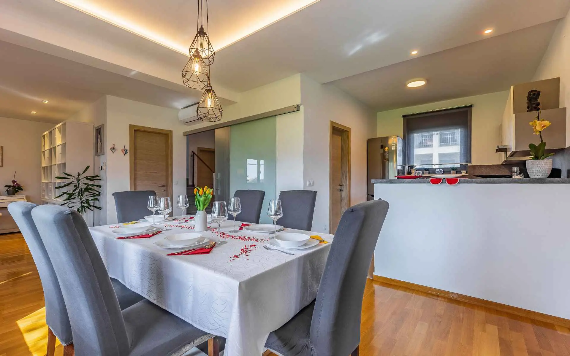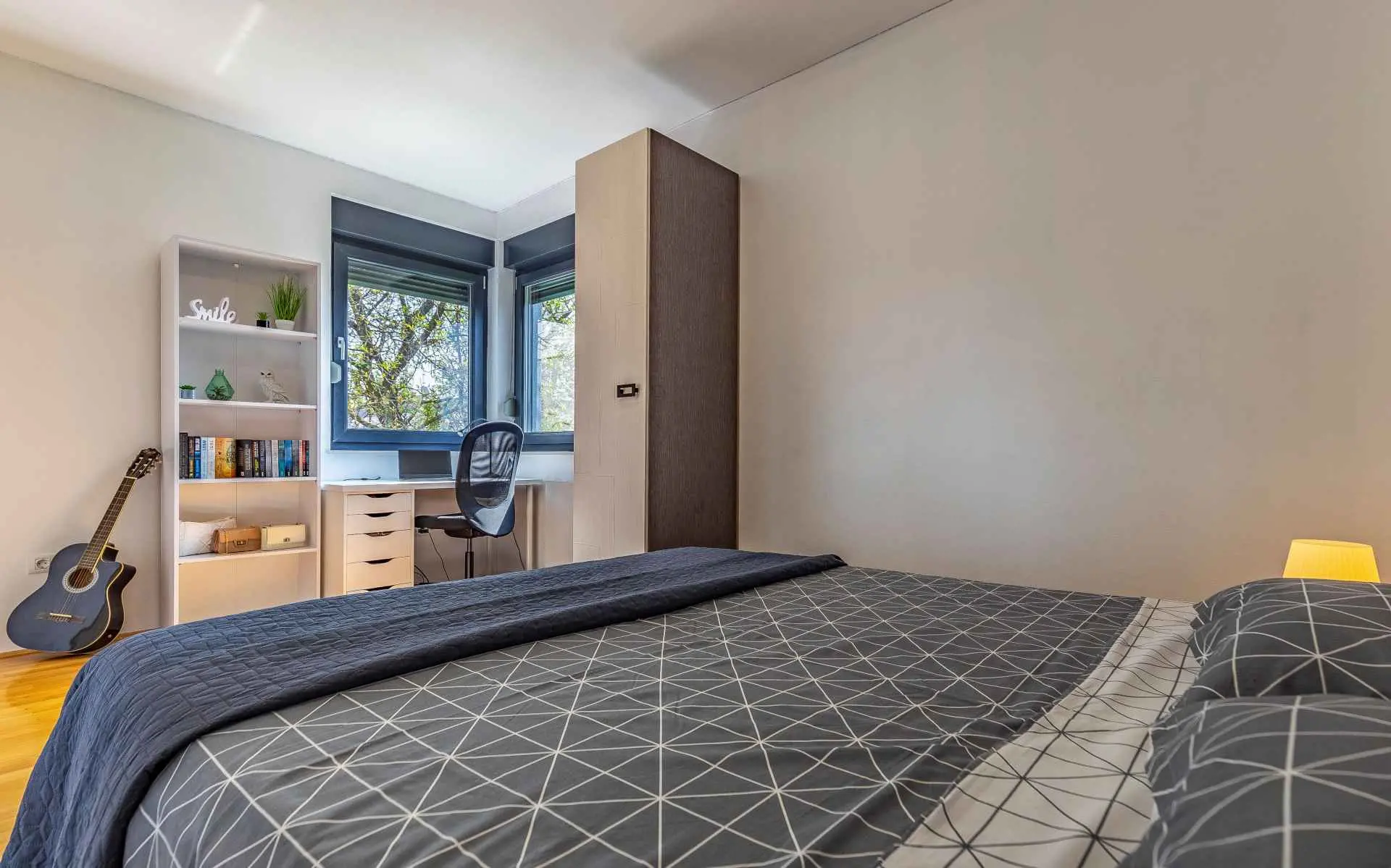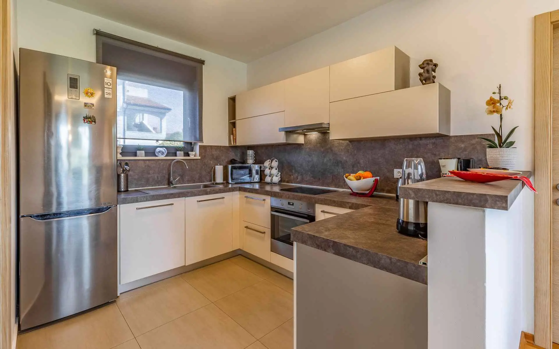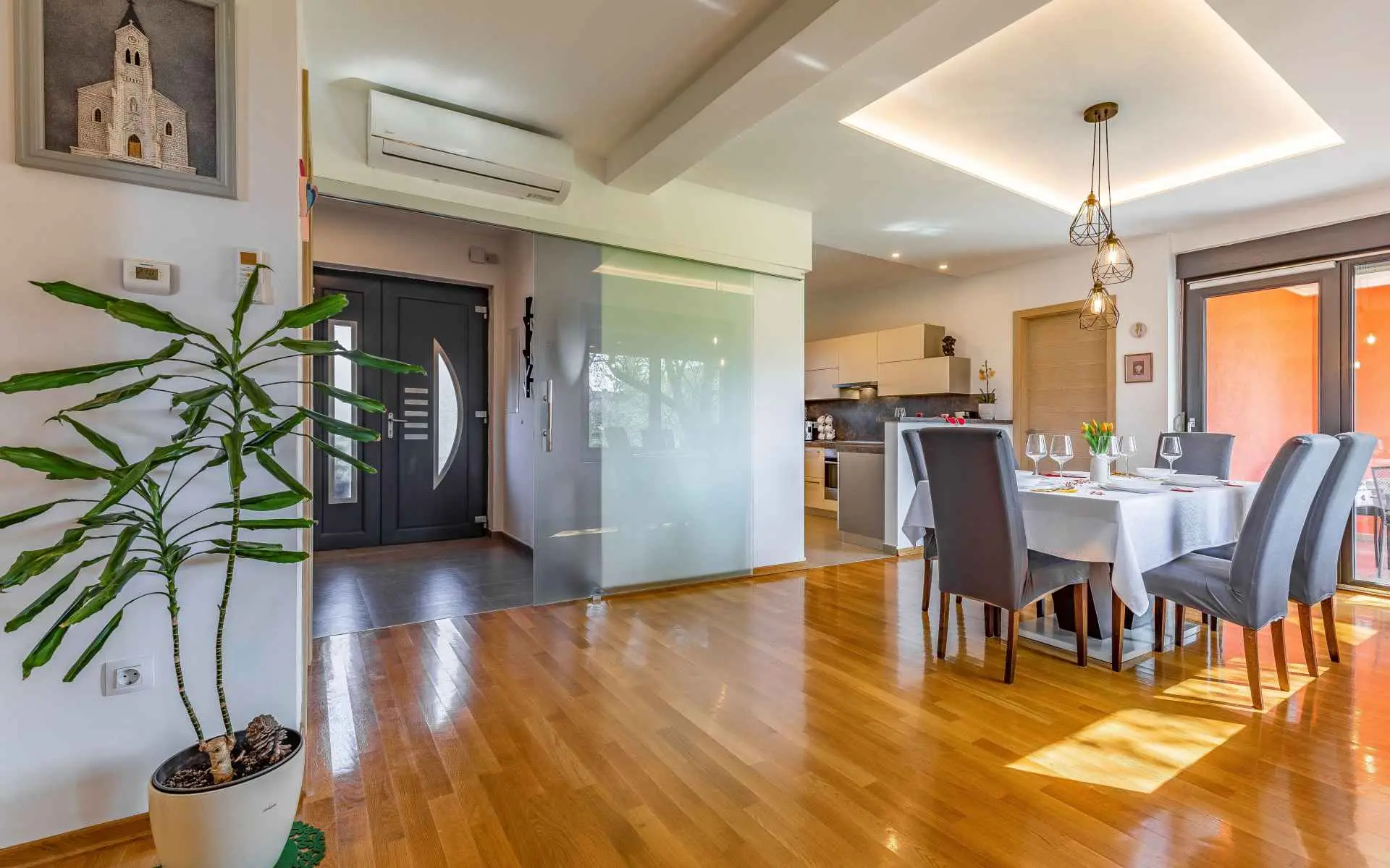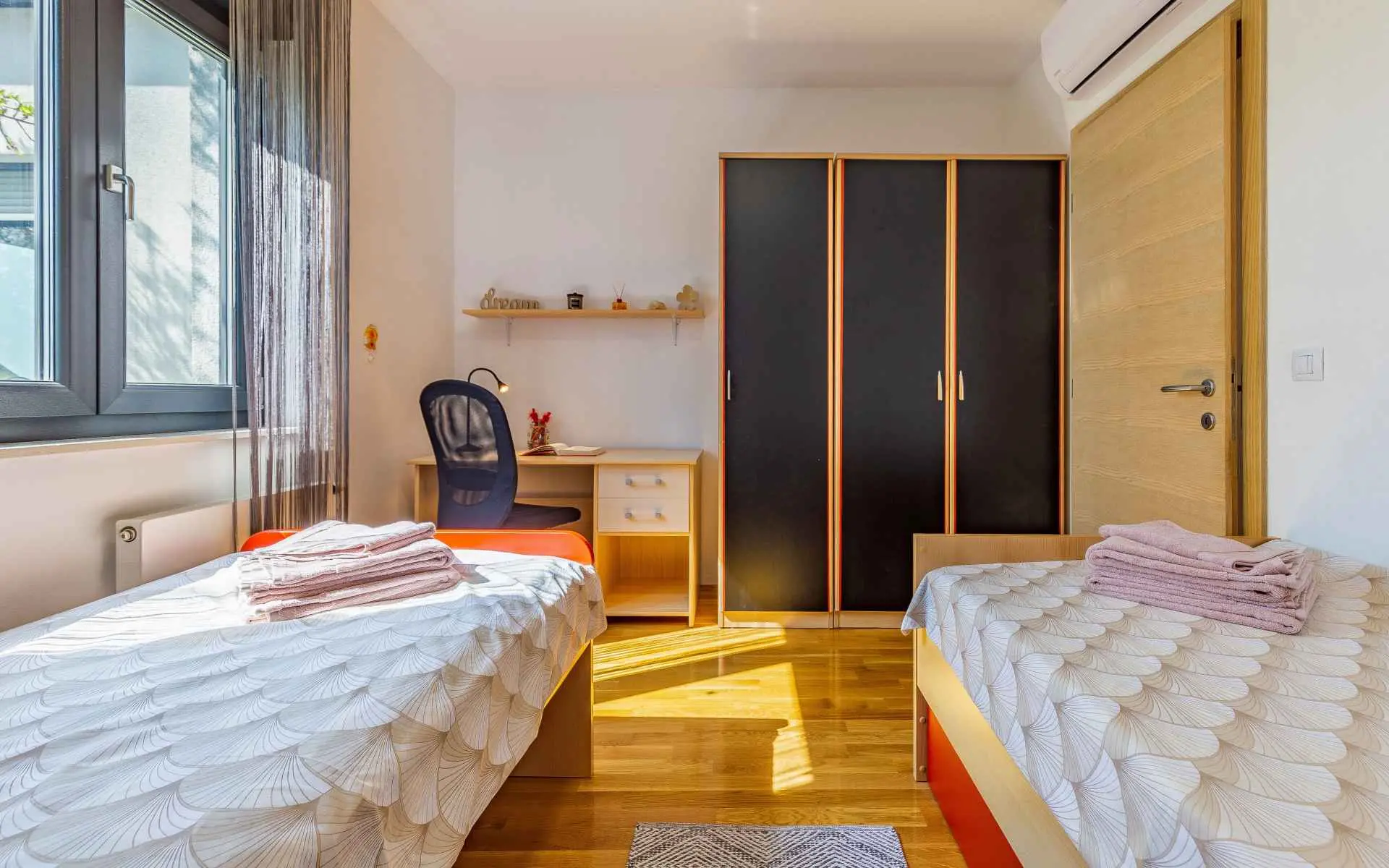 Et moderne feriehus med romslig boareal og et utendørs svømmebasseng, i forstedene til den gamle byen Pula, langt fra byens støy og mas, men likevel nær sentrum. Boligen har all nødvendig komfort for en hyggelig ferie. Tunet er inngjerdet slik at barna kan leke mens du soler deg ved bassenget. Grill inviterer deg også til å tilbringe avslappende timer med familien din utendørs på terrassen eller plenen. Huset har en romslig stue med spisestue, kjøkken og toalett i første etasje. Ovenpå er det 3 romslige rom, 2 bad og vaskerom. Alle rom er utstyrt med alle nødvendige møbler og utstyr du måtte trenge. Det er et 15m2 svømmebasseng i gården, med fluktstoler og en utendørs dusj, samt en grill ved siden av verandaen. For familier med små barn tilbyr vi en barneseng som er gratis, så gi oss beskjed hvis du trenger det. I hele huset er tilgjengelig Wi-Fi-nettverk. Sentrum av den gamle byen Pula ligger ca. 3 kilometer unna, og den store stranden ligger 5 kilometer unna.
