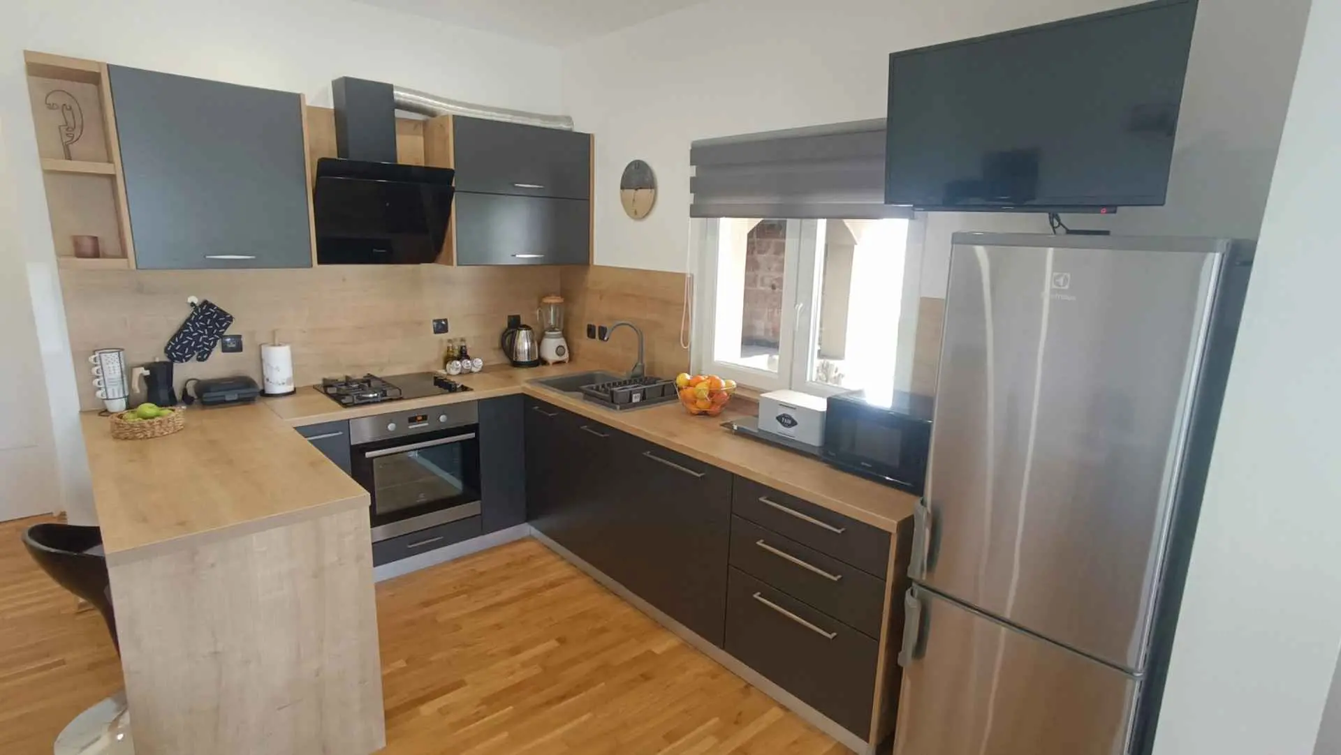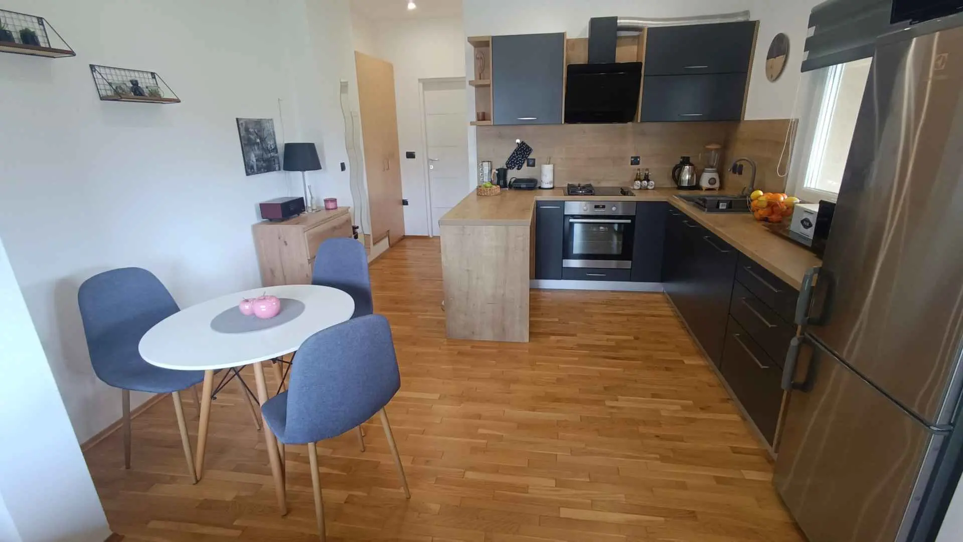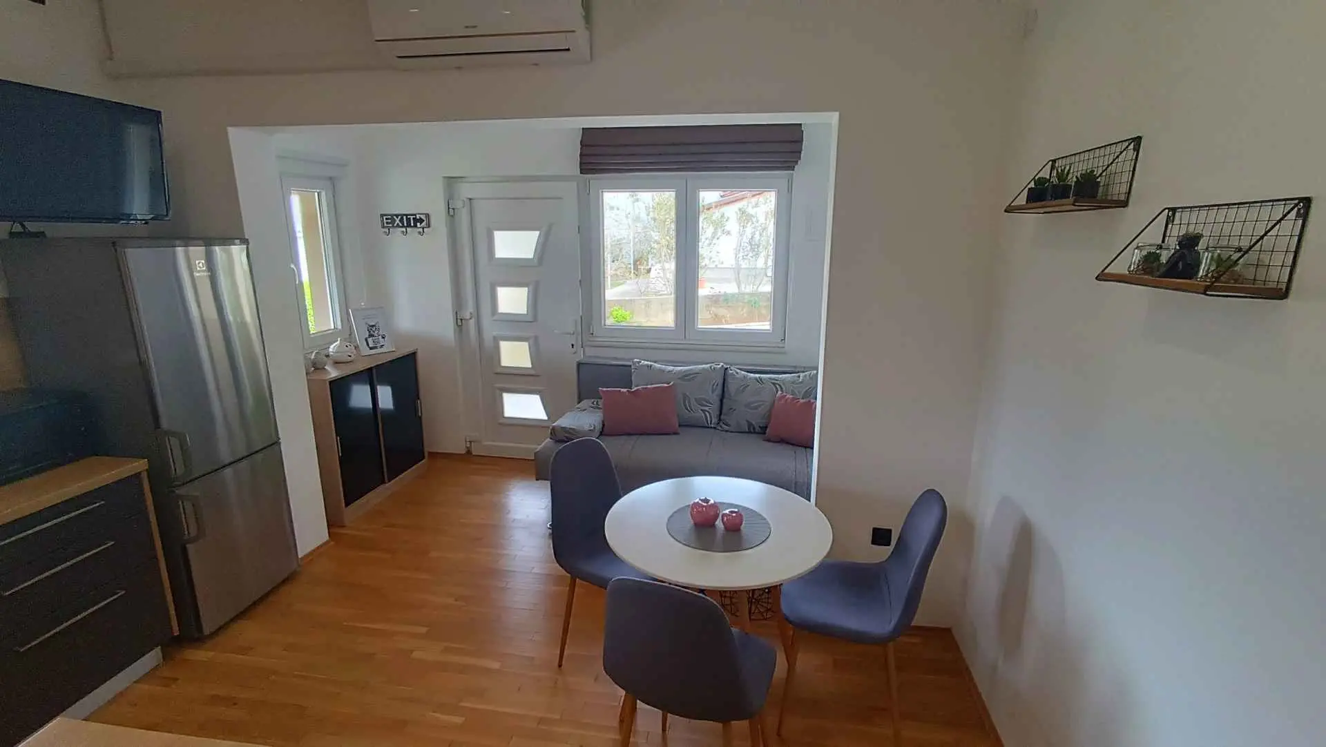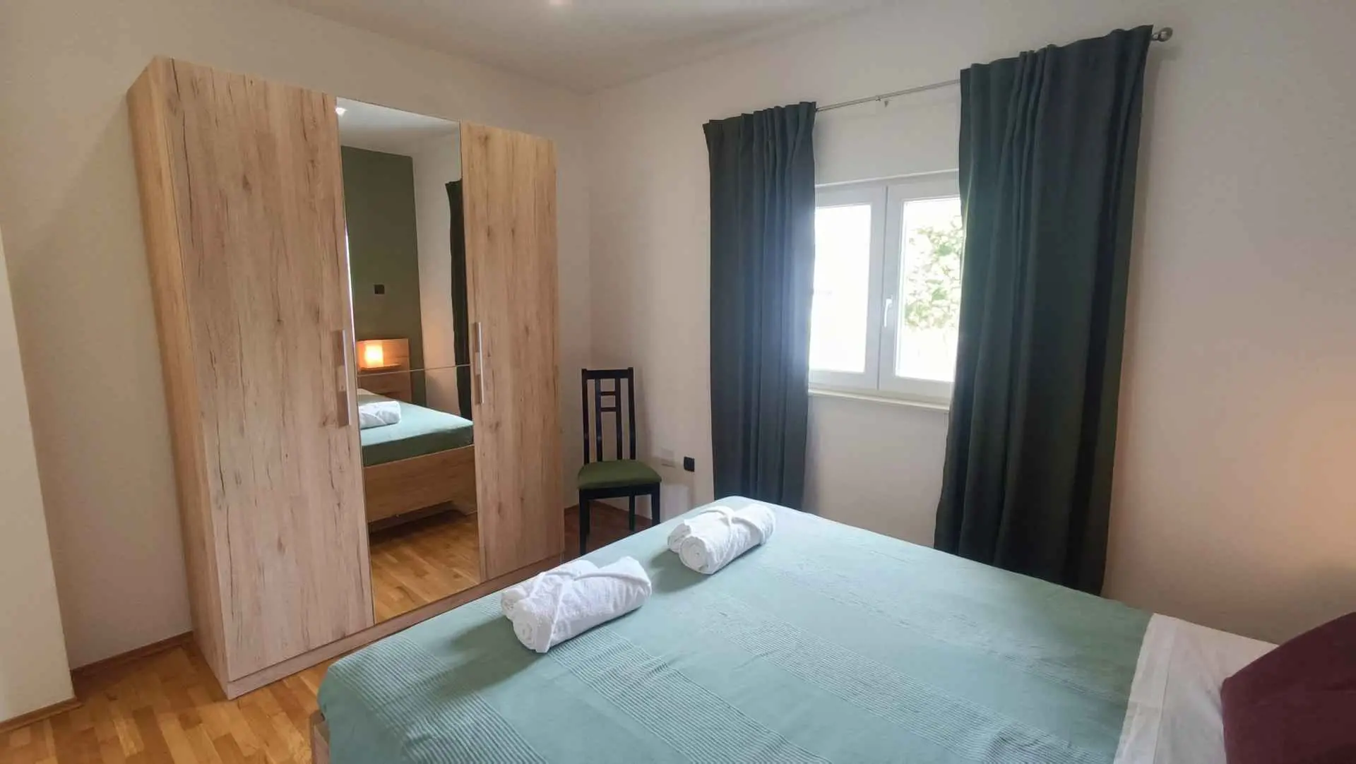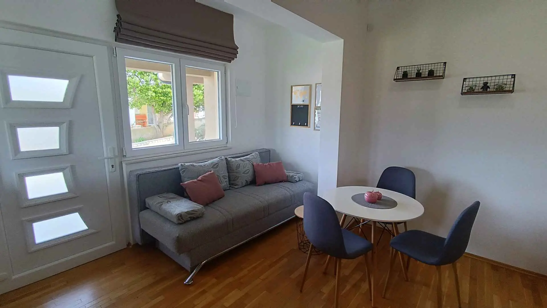 Jardin: Leilighet ideell for en rolig utflukt, Dalmatia 2 gjester · 1 soverom · 1 seng · 1 bad En komfortabel leilighet med en fantastisk utsikt over Velebit-fjellet, som ligger i landsbyen Rudići nær Ražanac. Et perfekt valg for alle som ønsker å nyte fredelige naturlige omgivelser, vekk fra byens mas og kjas. Sentrum av Ražanac og strender med krystallklart hav ligger bare noen få minutters kjøretur unna. Overnatting: Nyt en leilighet med ett soverom med moderne interiør, gratis Wi-Fi og privat parkering. Leiligheten er omgitt av grøntområder og har en romslig terrasse, en hage og utsikt over Velebit-fjellet – et ideelt sted for par eller enslige reisende som søker fred og ro. Plass: "Jardin"-enheten har plass til to gjester og inkluderer: et soverom med dobbeltseng, et bad, et kjøkken med en liten stue, en terrasse perfekt for morgenkaffe, grilling eller kveldsavslapning. Beliggenhet: Et utmerket utgangspunkt for å utforske naturlige og kulturelle attraksjoner: nær fem nasjonalparker og mange dalmatiske byer og øyer, noe som gjør det til et ideelt utgangspunkt for dagsturer til Zadar, Nin, Pag, Paklenica nasjonalpark, Velebit og Krka nasjonalpark. Nærliggende fasiliteter inkluderer butikker, apotek, kafeer og restauranter. Gjestene har tilgang til: Gratis Wi-Fi, privat parkering, terrasse med grill, hage med hjemmedyrkede grønnsaker, solområde med solsenger og solcelledusj. For familier med små barn: Overnatting er mulig for et barn opptil 2 år. Barnestol og reiseseng er tilgjengelig (vennligst ta med eget sengetøy til barnesengen).