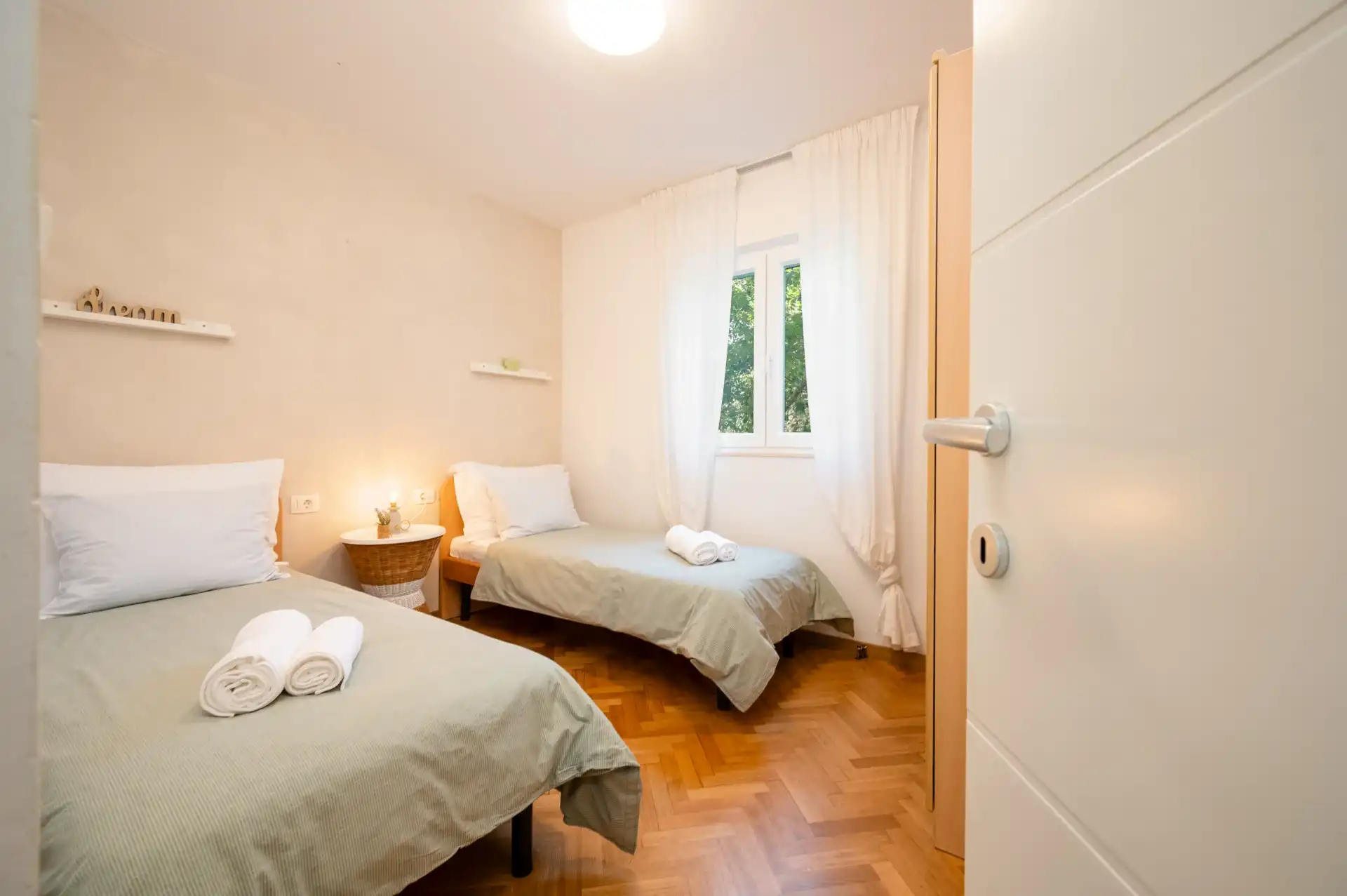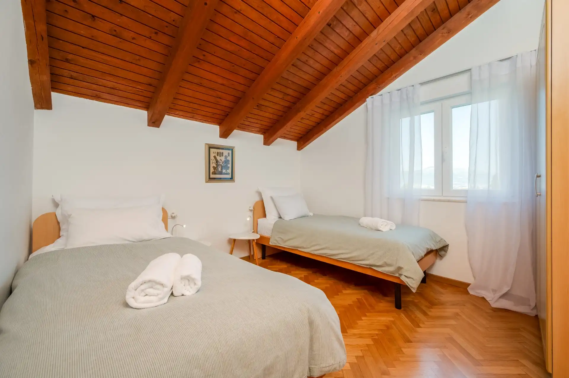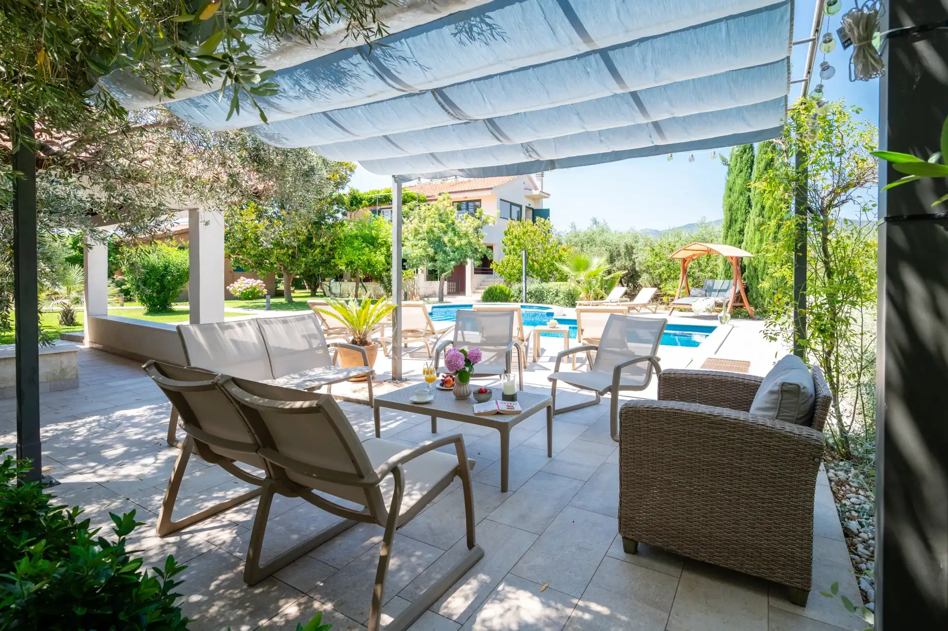 Denne sjarmerende villaen med basseng, omgitt av grøntområder, ligger i Divulje, kun 60 m fra sjøen, som gir deg perfekt beliggenhet, uteplass og hav. Villa Buble ligger kun 5 minutter fra sentrum og Trogir og 20 minutter fra Split. Hele eiendommen er tilgjengelig for våre gjester, slik at de har fullstendig privatliv. Start din perfekte ferie i villaen vår. Vi venter på deg. :) Denne villaen på 140 kvadratmeter ligger kun 60 meter fra den lange rullesteinstranden, og består av 2 leiligheter på 2 etasjer, med plass til maksimalt 10 personer. Hver leilighet har sitt eget fullt utstyrte kjøkken, spisestue og stue, 5 soverom, 3 bad, terrasse og balkong på toppen med den mest fantastiske utsikten over Adriaterhavet og også med utsikt over byene Split og Kastela. Det har også en grill-/grill- og spiseplass og et utendørsbasseng. Så len deg tilbake og nyt den fantastiske utsikten villaen har å tilby deg.