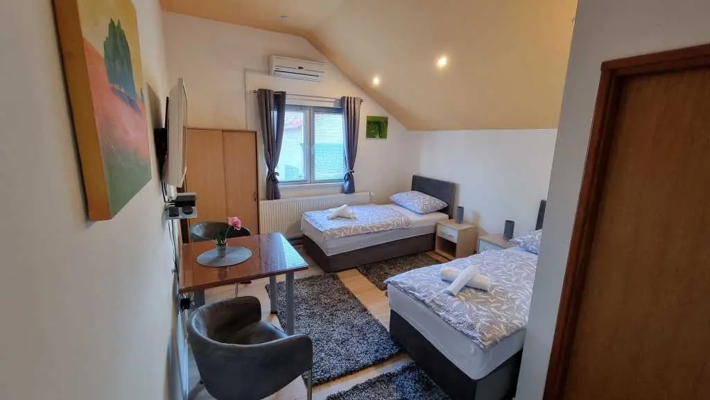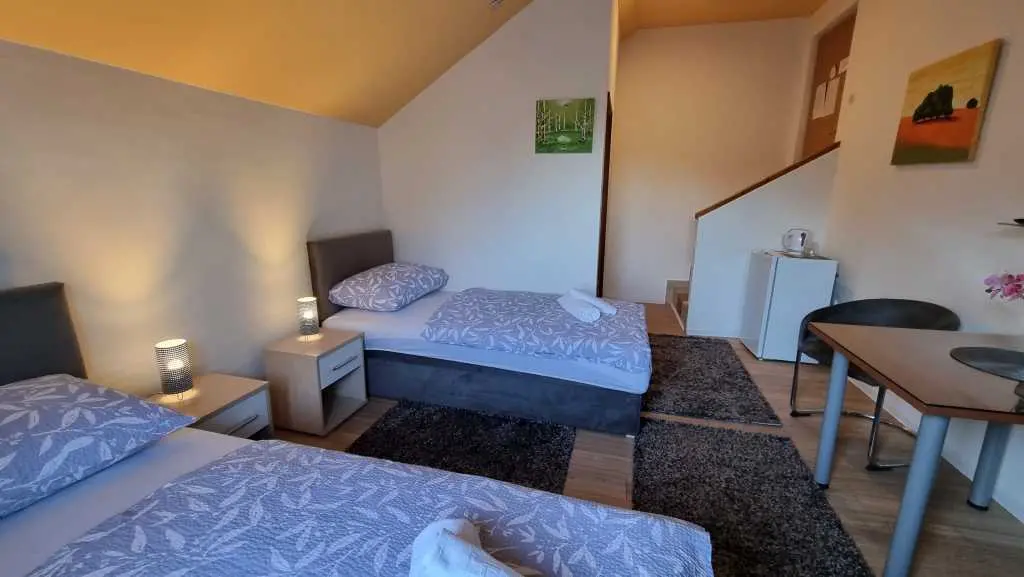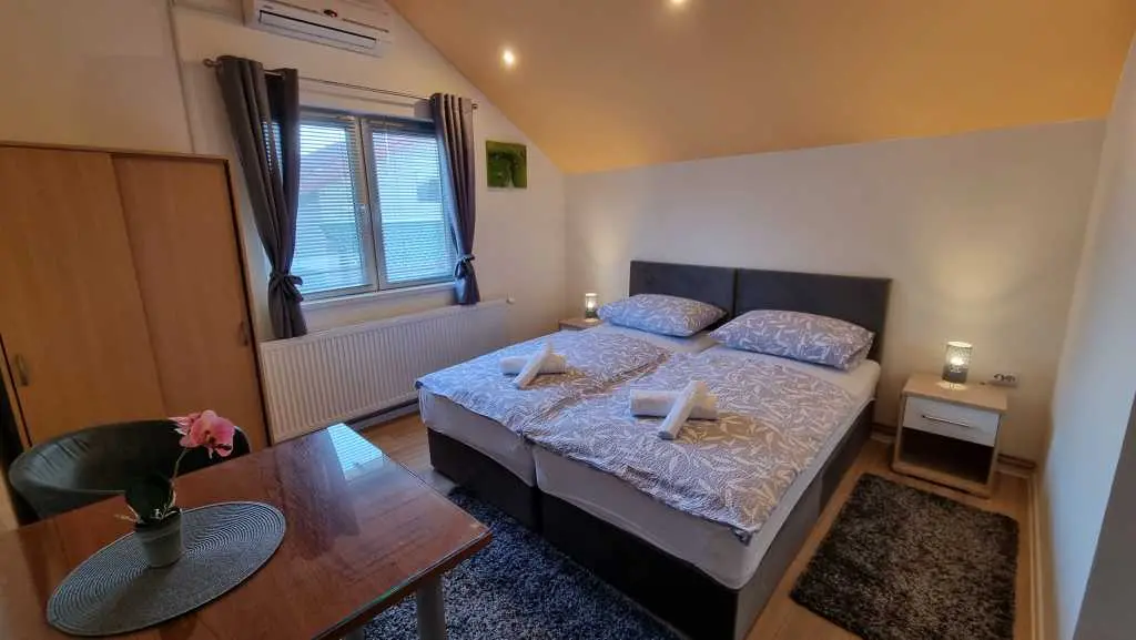 Znajduje się w gminie Bilje, 5 km od Osijeku i 3 km od Parku Narodowego Kopački rit. Goście mają dostęp do ogrodu , bezpłatny bezprzewodowy dostęp do Internetu oraz parking. Mieszkanie i pokoje mają osobne wejścia. Pokoje są wygodne z klimatyzacją, BEZPŁATNYM WI-FI, TV LCD SAT, biurkiem, lodówką, łazienką z prysznicem i kosmetykami. Apartman jest wygodny i wygodny, posiada bezpłatny dostęp do Internetu oraz bezpłatny parking. Apartman posiada w pełni wyposażoną kuchnię, klimatyzację oraz telewizor LCD z telewizją satelitarną. Mieszkanie znajduje się na parterze. Na piętrze znajdują się dwa pokoje z łazienką. Najbliższy sklep znajduje się 200 metrów od apartamentu Corina. Pojemność zakwaterowania do 9 osób. W naszym zakwaterowaniu postaramy się dać Ci poczucie ciepła własnego domu w otoczeniu spokoju, zieleni w pobliżu Parku Przyrody Kopački Rit. Przebywając w naszym obiekcie możesz cieszyć się dobrodziejstwami natury i obudzić się zapachem świeżych kwiatów i świergotem ptaków. Cieszymy się, że pobyt u nas będzie jak najbardziej przyjemny.