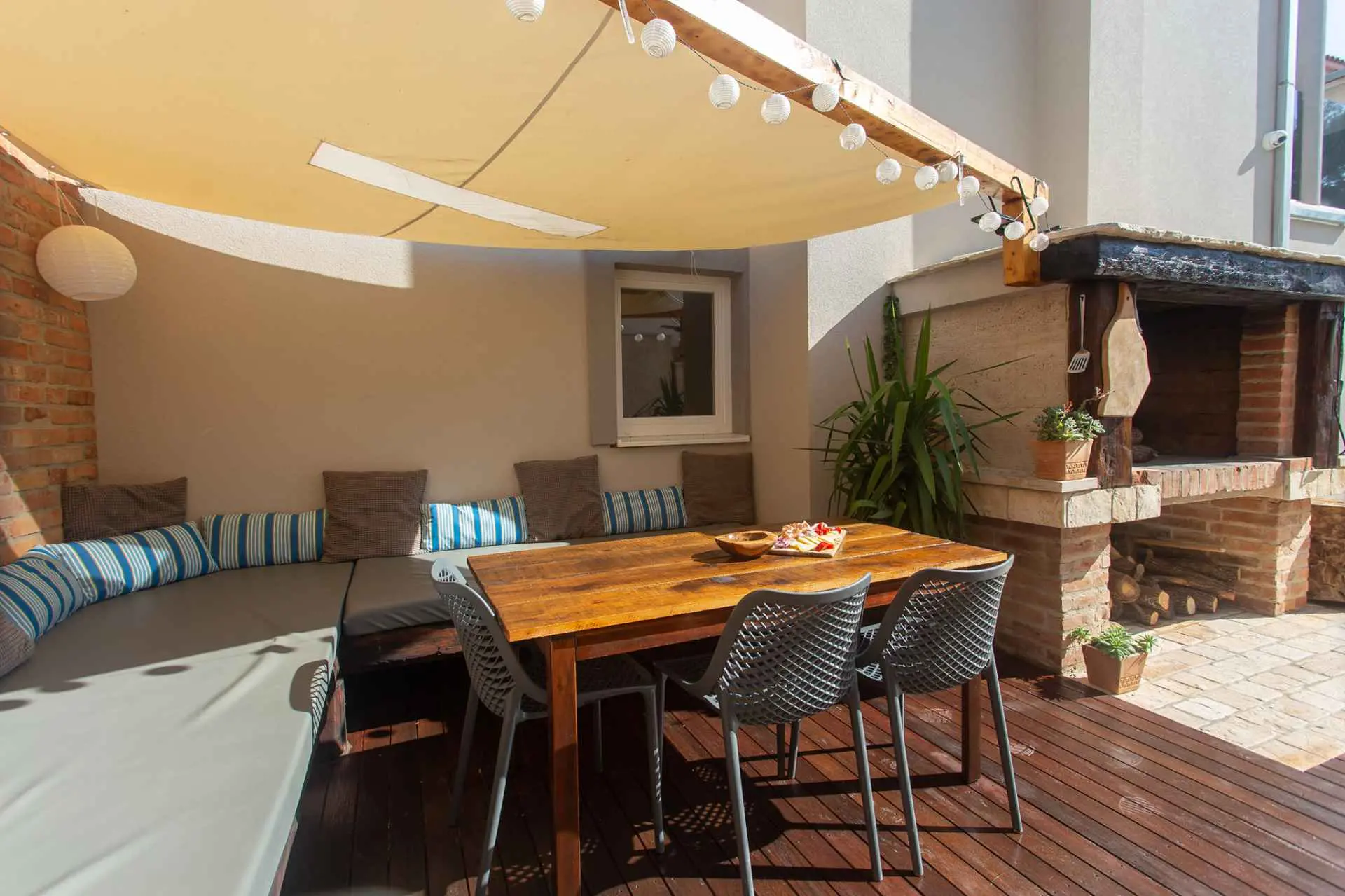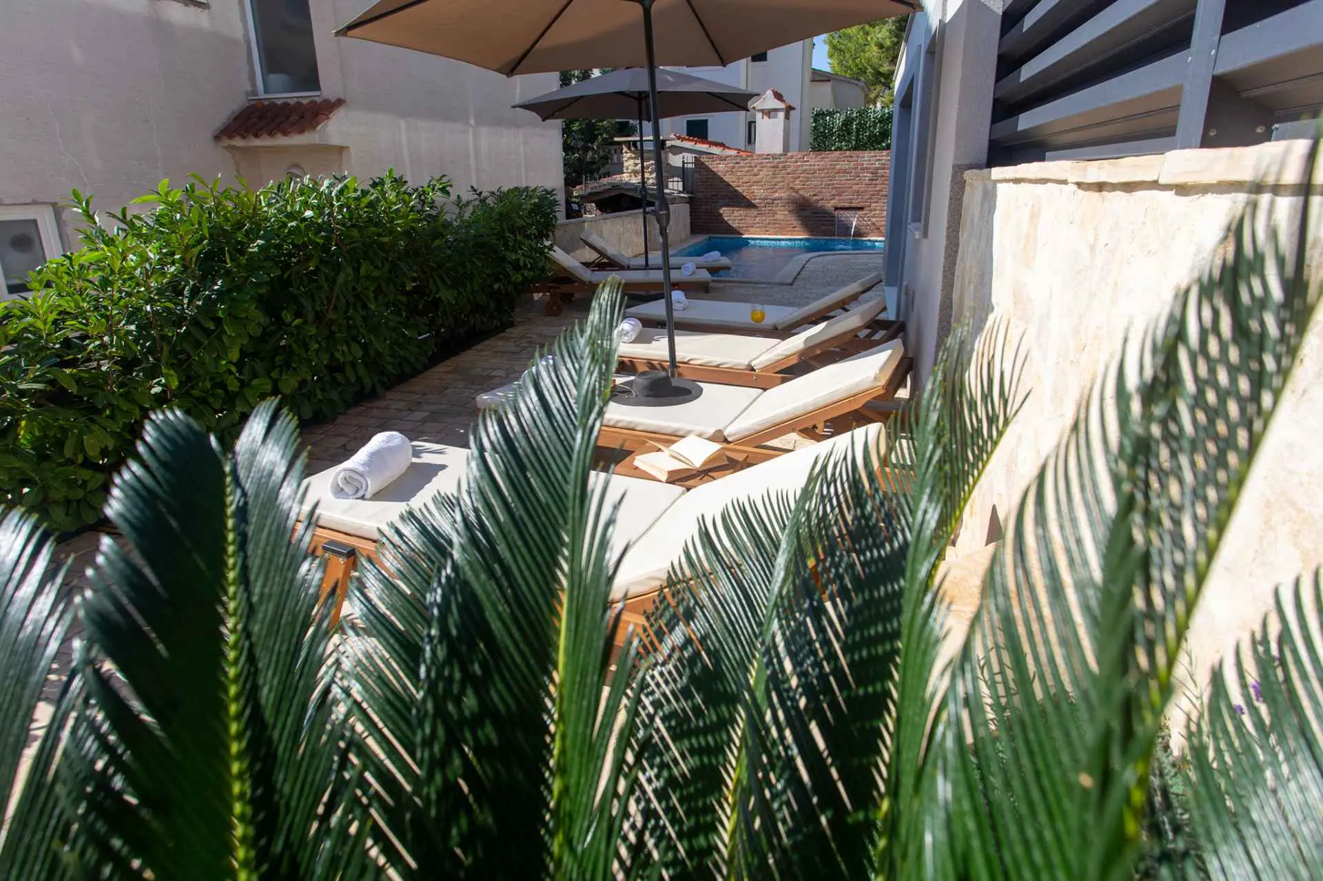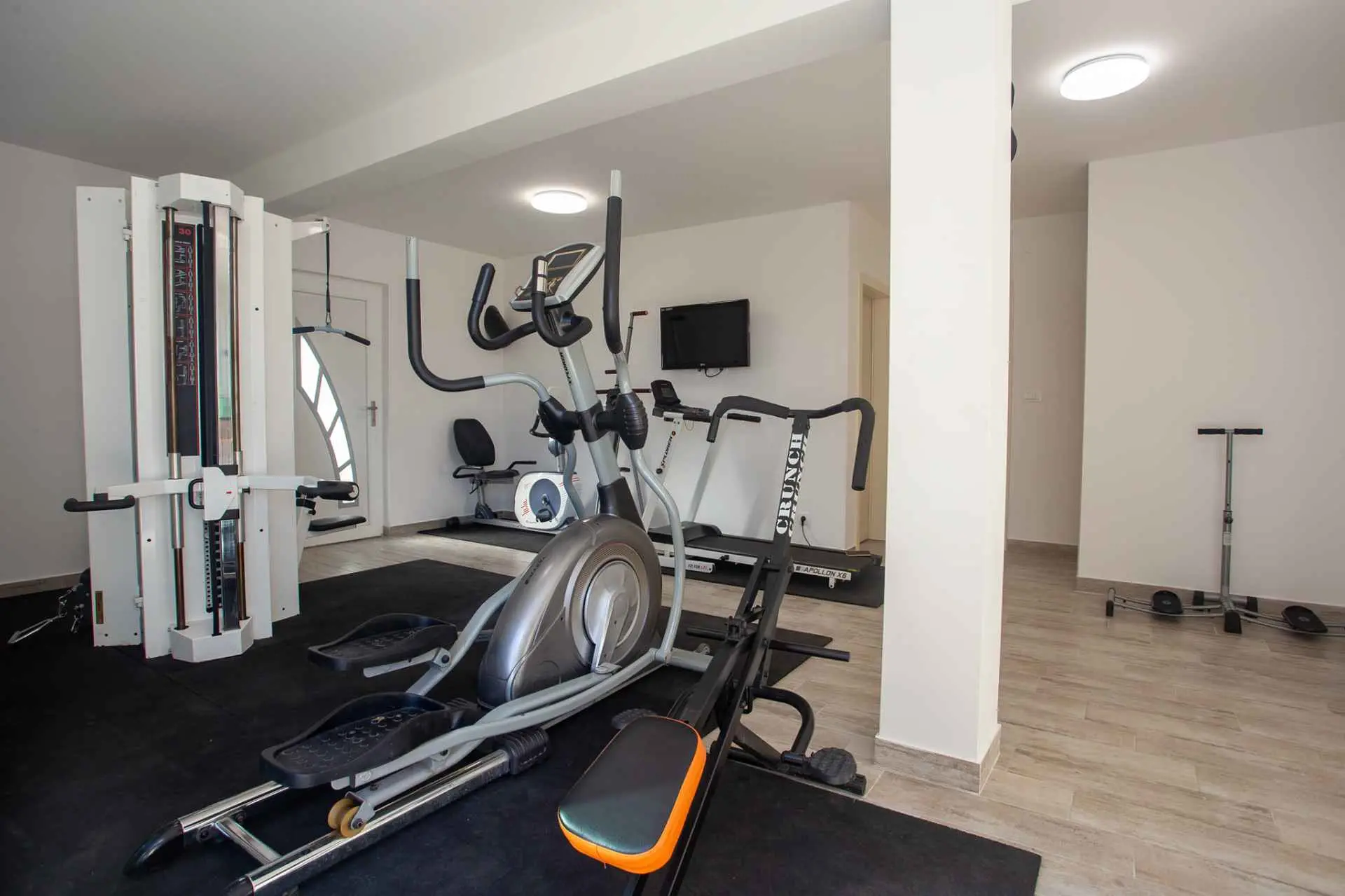 Ta wspaniała willa z odkrytym basenem z podgrzewaną wodą o powierzchni 40 m², prywatną siłownią i jacuzzi w Okrug Gornji na wyspie Čiovo oferuje idealne miejsce na wymarzone wakacje. Dom wakacyjny położony jest bezpośrednio nad morzem i jest odpowiedni dla maksymalnie 18 osób. Jest idealny dla 3 dużych rodzin lub kilku par: przyjemna atmosfera na 330 m² z sześcioma sypialniami, trzema łazienkami i trzema kuchniami z przytulnym salonem. W każdym apartamencie dwie dodatkowe osoby mogą spać na rozkładanej kanapie. Możesz cieszyć się wieloma szczęśliwymi godzinami na tarasie z widokiem na morze. Świetne wyposażenie obiecuje komfortowy wypoczynek. Wyposażony w duże naczynia kuchenne, lodówkę z zamrażalnikiem, zmywarkę, toster, ekspres do kawy, czajnik, telewizję satelitarną, klimatyzację, pralkę, parasole i leżaki. Ponadto goście mogą korzystać z bezpłatnego łącza internetowego, aby wysyłać e-maile do przyjaciół i rodziny w domu. Dom wakacyjny posiada bezpłatne prywatne miejsce parkingowe. Do Państwa dyspozycji jest miejsce na grilla, gdzie można przygotować pyszne posiłki. Ręczniki, pościel, ręczniki plażowe w cenie. Psów nie wolno zabierać ze sobą. Ta willa znajduje się w pięknym otoczeniu, w bezpośrednim sąsiedztwie betonowej plaży, 100 m. Piękne kamieniste plaże oddalone są o 300 m. Na pyszny posiłek wystarczy wybrać się na krótki spacer, 100 m. Bary, apteki, sklepy, kawiarnie, bary i wiele restauracji znajdują się w odległości krótkiego spaceru od domu wakacyjnego. Lotnisko w Splicie oddalone jest o 10 km. Wyspa Ciovo jest połączona mostem z lądem z miastem Trogir. Do kilku atrakcji regionu Trogir można szybko dojechać samochodem.