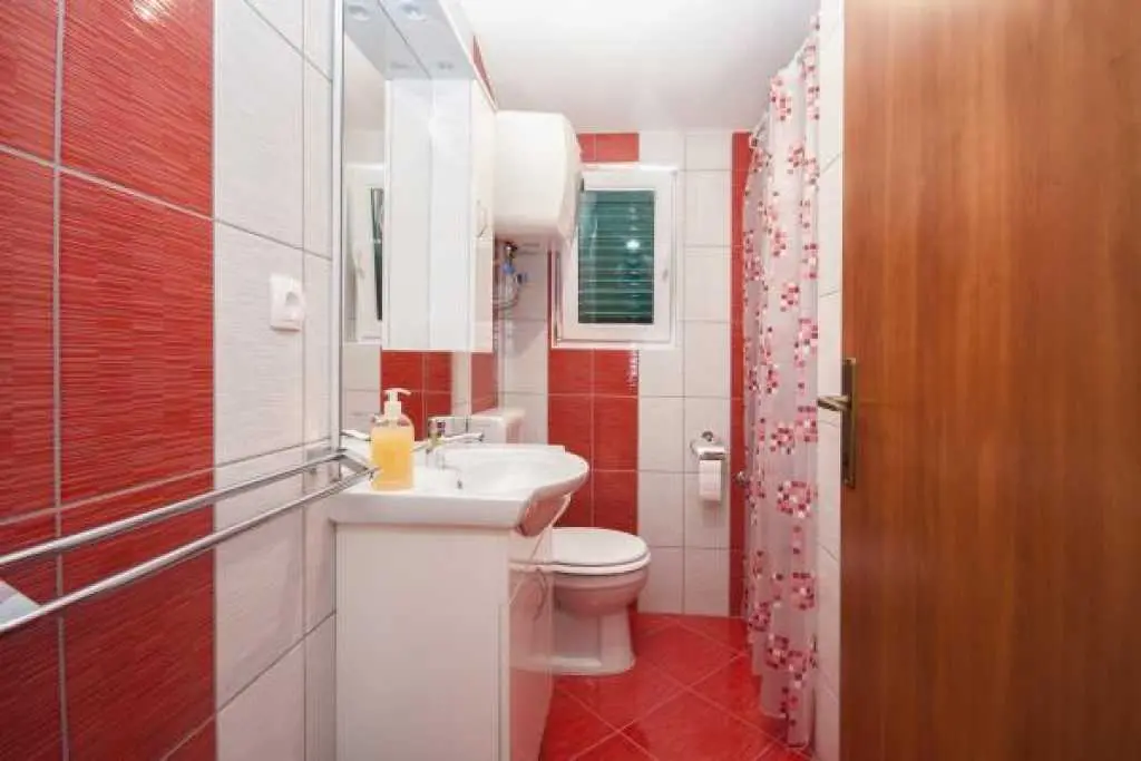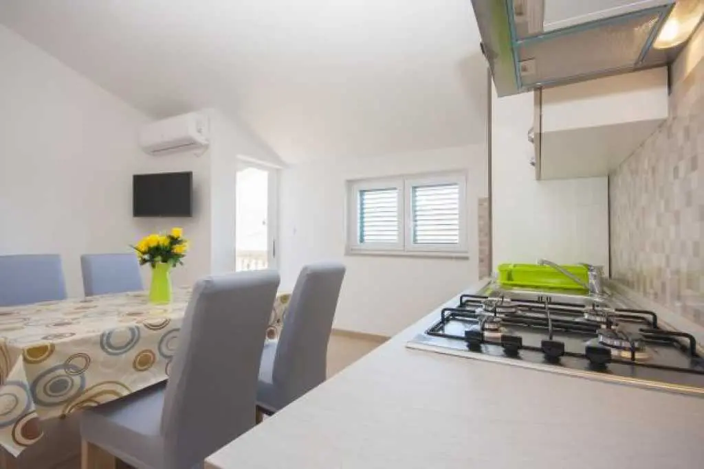 Apartament A1 (2 + 2): Jeden apartament A1 (2 + 2) rozciąga się do 50 m2. W pokoju znajduje się podwójne łóżko z tarasem. W kuchni znajduje się rozkładana sofa. Nadal jest duża i przestronna łazienka. Jest on wyposażony w klimatyzację, telewizję satelitarną, tosterem i czajnikiem. Wi-Fi jest bezpłatny i parking.
