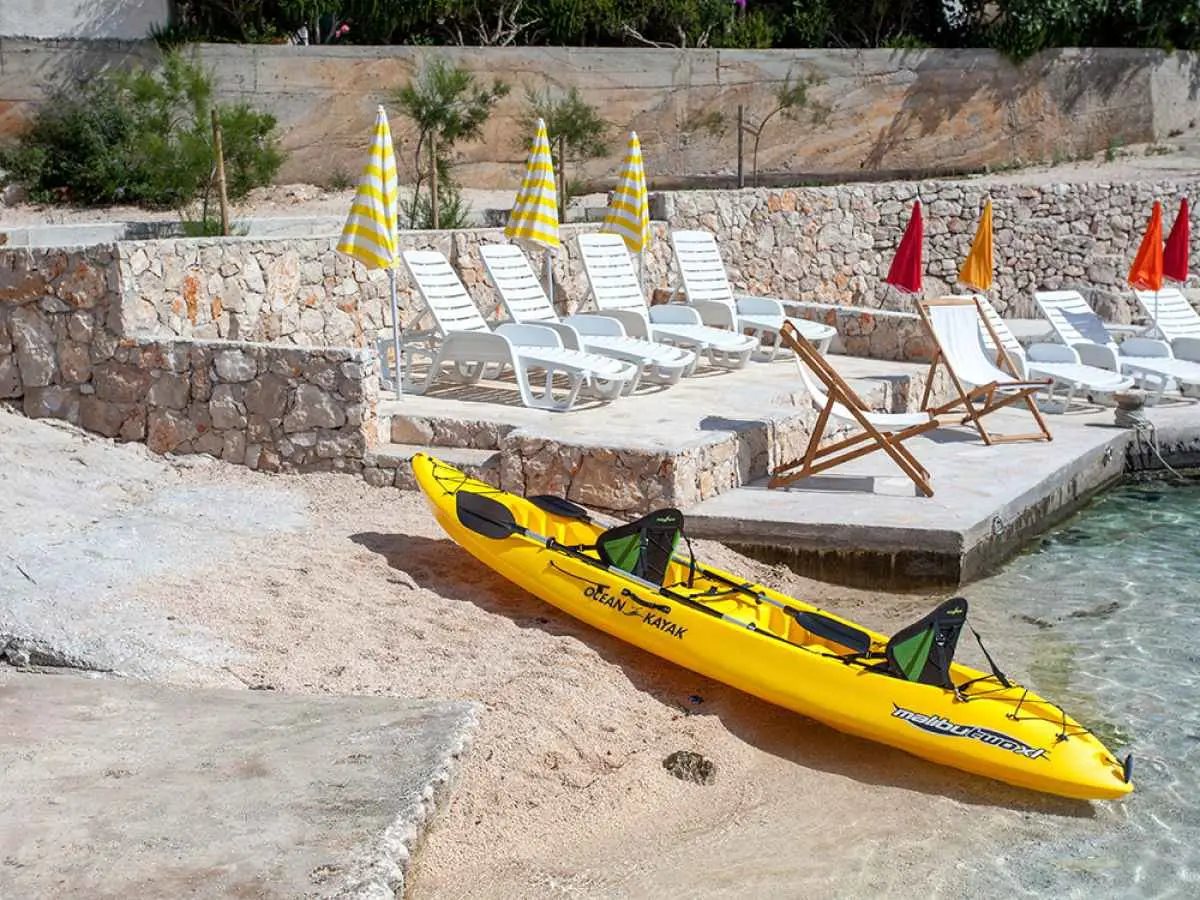 NAJLEPSZA LOKALIZACJA! Willa Tihana, 5 metrów od plaży. Kanica, rejon Split-Šibenik. Dom przy plaży. Pierwszy rząd do plaży. Znajduje się w spokojnej okolicy i jest odpowiedni dla dzieci. Wolnostojący dom wakacyjny dla 8 osób, 7 metrów od morza z prywatnym, podgrzewanym basenem na świeżym powietrzu. Uwaga: OBROT GOŚCI następuje tylko w soboty (Zameldowanie i wymeldowanie tylko w soboty) Minimalna rezerwacja to 7 dni. Powierzchnia wewnętrzna 140m², wielkość działki 600 m². W 4 sypialniach śpi 8 osób. Basen zewnętrzny ma wymiary 8x4m (głębokość od 1 do 1,5 metra). Basen jest do wyłącznego użytku gości. Nieruchomość posiada duży taras o powierzchni 25 m² i taras przy basenie o powierzchni 60 m² z pięknym widokiem na morze. Dom NIE JEST DO WYNAJĘCIA w okresie od 1 listopada do 31 marca. Dom położony jest w Kanicy, która jest położona 12 km na wschód od Rogoznicy, 18 km na wschód od Primošten, 50 km na wschód od miasta Šibenik, 24 km na zachód od Trogiru, 25 km na zachód od lotniska w Splicie i 50 km na zachód od miasto Split. Najbliższe lotnisko to lotnisko w Splicie 25 km. Każda sypialnia i pokój dzienny posiada osobne urządzenie klimatyzacyjne. Będziesz sam w domu, właściciele mieszkają w innym domu w Solin (Split) 50 km dalej. Uwaga: obroty misjami odbywają się tylko w soboty. Minimalna rezerwacja to 7 dni. Zalecane jest korzystanie z samochodu. Właściciele KAYAK Malibu Two XL do użytku morskiego GRATIS. Właściciele Stand Up Paddle Board (SUP) do użytku BEZPŁATNIE. PRYWATNA PLAŻA przed domem. PEOBLE PLAŻA przed domem odpowiednia dla dzieci. SALA ZABAW dla dzieci na tarasie przy basenie.