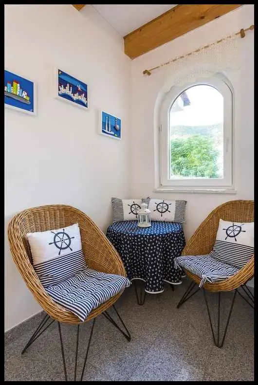 Piękne apartamenty zaledwie 150 metrów od głównej plaży i centrum oraz 200 metrów od sklepu, banku i apteki. Każdy z nich ma klimatyzację, telewizję satelitarną, bezpłatne Wi-Fi, taras i prywatny parking, wyposażoną kuchnię i sypialnię. W domu znajduje się 10 apartamentów, dla 4 osób i dla 6 osób.