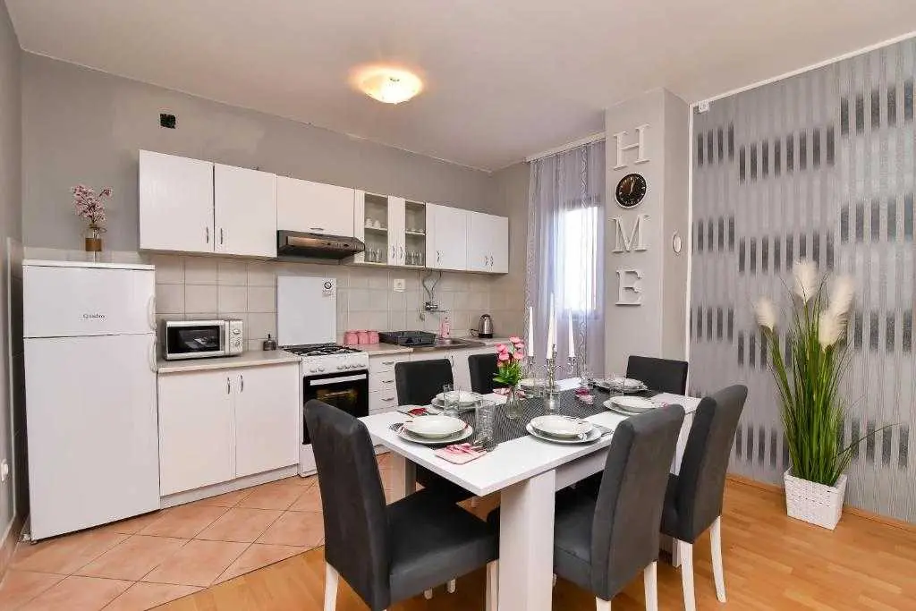 ☀️☀️☀️Apartament Gajtana położony jest w spokojnej miejscowości Maslenica i jest bardzo odpowiedni dla rodzin z małymi dziećmi. Apartament przeznaczony jest dla maksymalnie 6 osób. Mieszkanie posiada duży balkon z widokiem na morze. Dodatkowo goście mogą korzystać z grilla wraz z całym niezbędnym sprzętem na podwórku. Wizyta w Parku Narodowym Paklenica, ujście rzeki Zrmanja (możliwość raftingu) i korzystanie z pobliskich ścieżek rowerowych wśród bardzo atrakcyjnego krajobrazu są częścią pobytu w Maslenicy. polecać. Ponadto warto zobaczyć miasto Zadar (30 km), w którym znajdują się liczne zabytki kulturalne i historyczne (św. Donat, katedra św. Stošije...), atrakcje (Powitanie Słońca, Organy Morskie) i opcje gastronomiczne. . Oferta. ☀️☀️☀️ Maslenica to mała wioska i port w powiecie zadarskim w Chorwacji. Należy do gminy Jasenice. Maslenica położona jest w głębokiej naturalnej zatoce - Morzu Novigradskim, niedaleko ujścia rzeki Zrmanji, która wpływa do tej zatoki. Swoją nazwę zawdzięcza wielowiekowym gajom oliwnym, które nadal są uprawiane i pielęgnowane wzdłuż wybrzeża. Na zachód od Maslenicy znajduje się imponujący most Maslenica, który łączy kontynentalną Chorwację z Dalmacją. Most uległ znacznym zniszczeniom podczas wojny domowej w 1990 roku, jednak w 2006 roku został całkowicie odrestaurowany i można na nim poczuć adrenalinę skacząc na bungee. Dzięki bliskości autostrady Zagrzeb - Split, lotniska w Zadarze i wysokiej jakości kwaterom prywatnym, ta mała miejscowość turystyczna staje się coraz bardziej popularną destynacją turystyczną. To miejsce jest idealne na idylliczne rodzinne wakacje w pięknej okolicy z czystym morzem, czystą rzeką Zrmanja i imponującym Velebitem. Plaże są w większości kamieniste lub kamieniste, z bardzo płytkim morzem i bez tłumów, co czyni je idealnymi dla osób poszukujących prywatności, ciszy i spokoju. W pobliżu Maslenicy oferowanych jest kilka ciekawych wycieczek, takich jak rafting lub spływ kajakowy wzdłuż krasowego piękna rzeki Zrmanja lub piesze safari i safari jeepem po dziewiczej dziczy Velebitu. Odwiedź Maslenicę i naładuj baterie w cichym i spokojnym otoczeniu przyrody, idealnym na idealne rodzinne wakacje. Witamy w Maslenicy! Zwierzęta nie są akceptowane