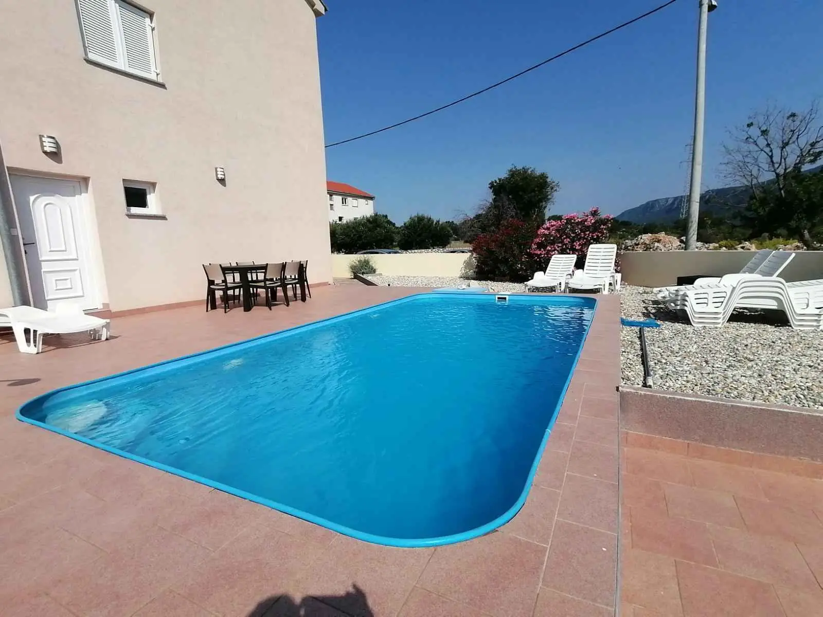 Dom rodzinny z 5 apartamentami może pomieścić 20 osób. Apartamenty znajdują się na 3 piętrach. Basen i grill są do wspólnego użytku. Wszystkie apartamenty są nowocześnie urządzone i wyposażone w celu zapewnienia wygodnego życia. Kuchnie są w pełni wyposażone w przybory do gotowania, serwowania i jedzenia. Są wyposażone w różne urządzenia. Wyślij zapytanie, aby uzyskać szczegółowe informacje. Pościel i ręczniki są wliczone w cenę. Dom znajduje się na końcu ulicy, co zapewnia dodatkową intymność.