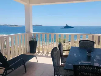 Mieszkanie w cichej okolicy, położony 20 m od morza. Każdy apartament posiada taras z pięknym widokiem na morze. Nasi goście mają do dyspozycji ogród, grill, plac zabaw i parking. Klimatyzacja, Wi-Fi