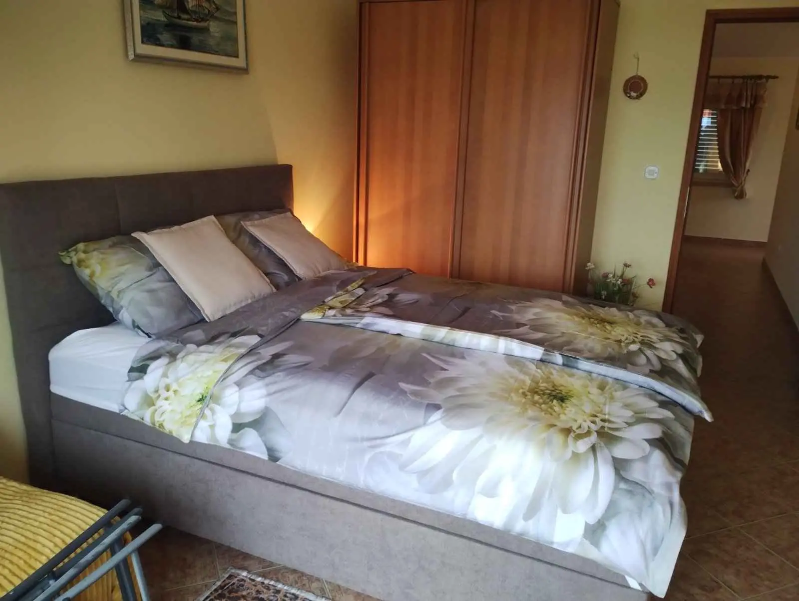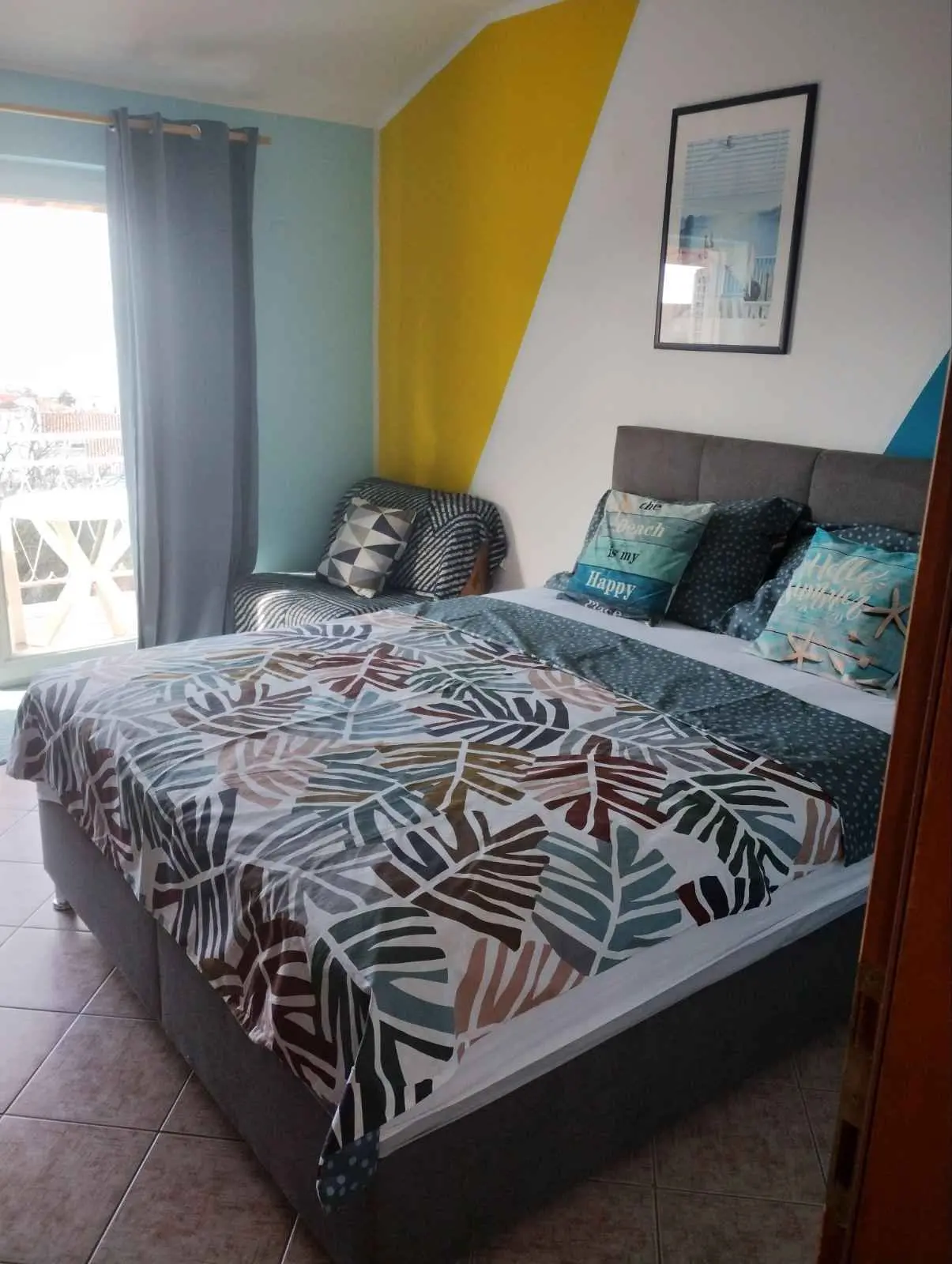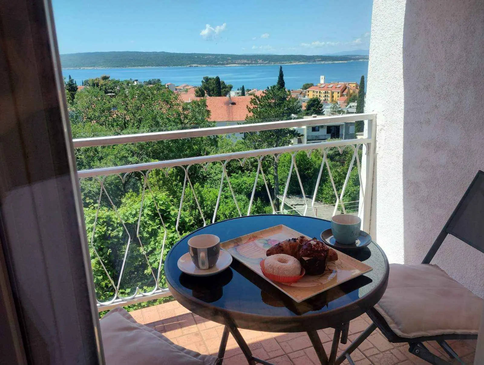 Apartament przeznaczony jest dla dwóch osób, z możliwością zakwaterowania jednego dziecka. Składa się z sypialni z łóżkiem małżeńskim i dodatkowym łóżkiem rozkładanym, kuchni z naczyniami i toaletą oraz łazienki. Posiada balkon z pięknym widokiem na morze. Znajduje się na 3. piętrze domu jednorodzinnego. Wyposażony jest w telewizję satelitarną, internet i klimatyzację. Parking znajduje się na podwórku domu. Wszystkie udogodnienia – restauracje, poczta i apteka – znajdują się w odległości 400 metrów. Plaża oddalona jest o 450-500 metrów – zaledwie 10 minut spacerem.