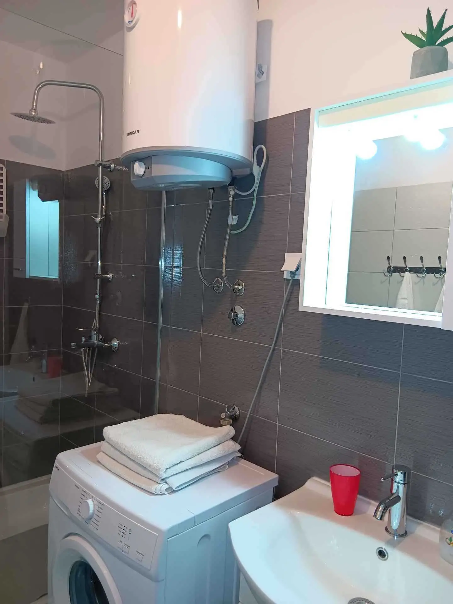 Apartament Marinero *** Šibenik. Cena apartamentu za noc od 80-100€ Znajduje się 500 m od morza, 200 m od sklepów, 1500 m od centrum. Składa się z 1 sypialni, kuchni (sofa) i łazienki, a także obejmuje pralkę, zmywarkę, klimatyzację i WiFi. Dostępny jest parking.