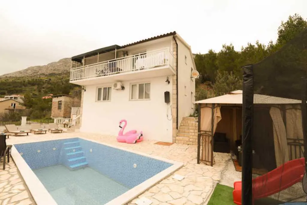 Dom z basenem dla max 10 osób z pięknym widokiem na morze i wyspę Brac, 10 minut od plaży.