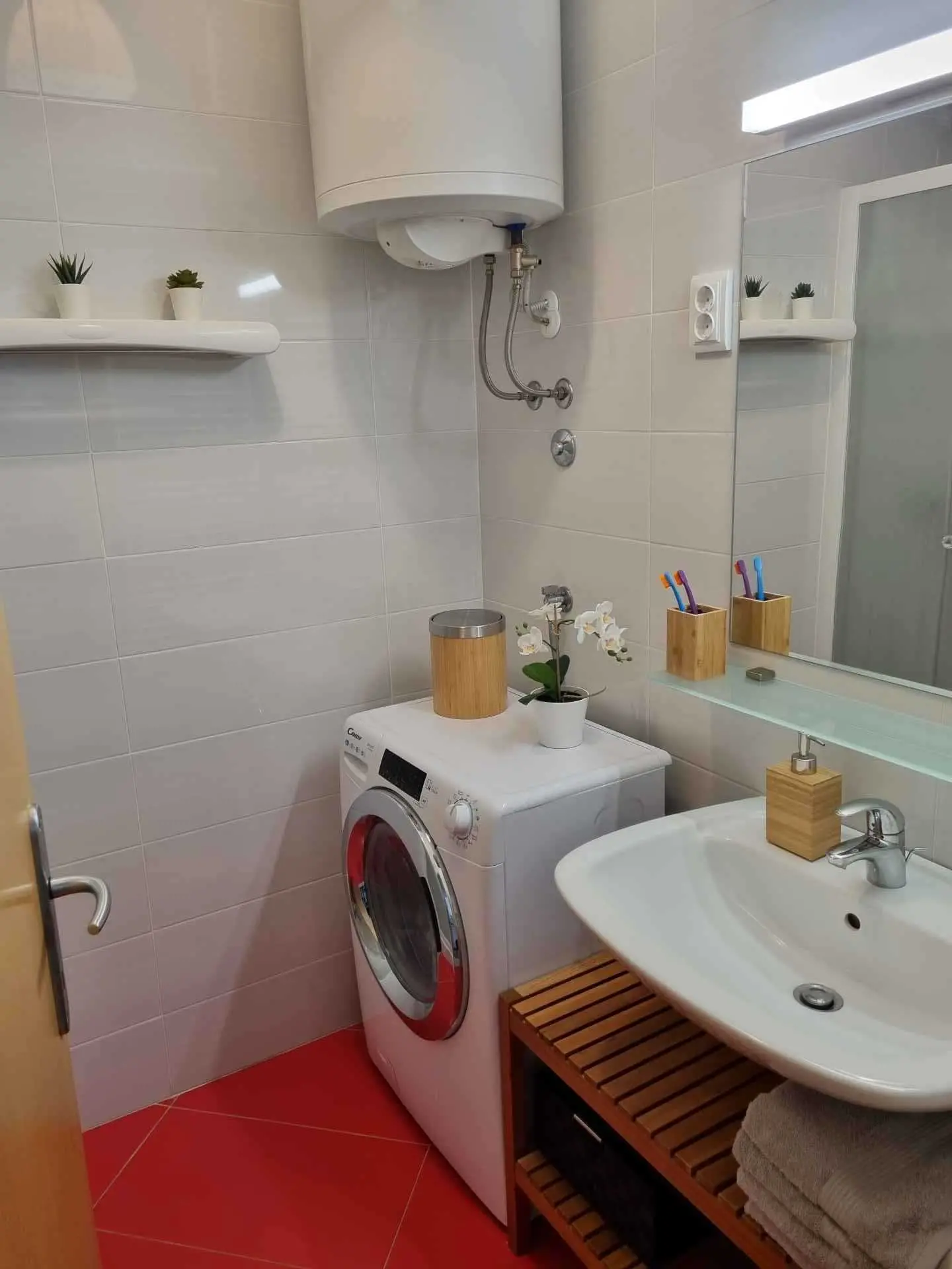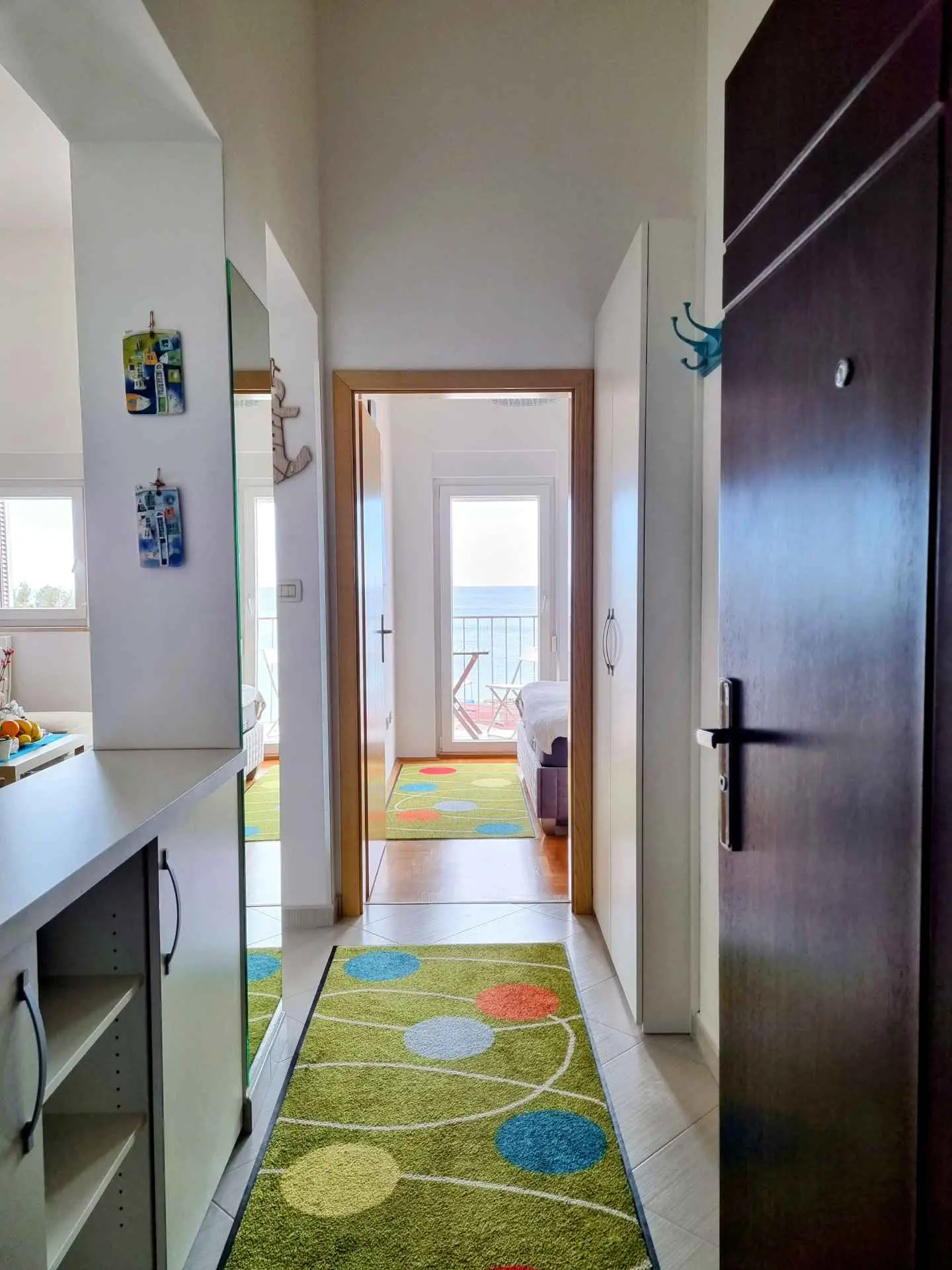 Przez całe lato do wynajęcia na okres miesięczny lub półroczny oferujemy elegancki apartament z wyjątkowym widokiem na morze i wyjątkową lokalizacją. Apartament znajduje się w miejscowości Umag w Chorwacji, zaledwie 100 m od rynku głównego, piekarni, rynku, supermarketu i jednocześnie obok głównej plaży miejskiej (30 m do morza/plaży). W budynku wielomieszkaniowym znajduje się garaż w piwnicy, w którym będzie na Państwa czekać gwarantowane miejsce parkingowe. Mieszkanie dostępne od zaraz - na dłuższy okres wynajmu (do października). Do apartamentu można dotrzeć schodami lub wjechać windą na trzecie piętro, gdzie znajduje się apartament. Apartament składa się z salonu z rozkładaną sofą, jadalnią i kuchnią oraz oddzielnej sypialni z dodatkowym łóżkiem na drugim poziomie. Z sypialni i salonu jest wyjście na balkon. Łazienka wyposażona jest w toaletę, pralko-suszarkę i kabinę prysznicową.