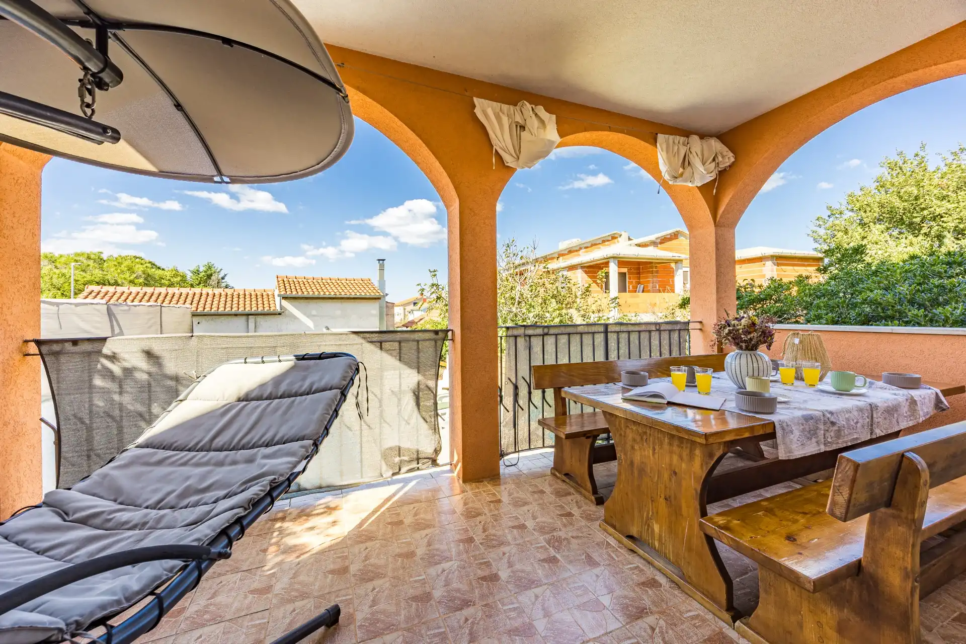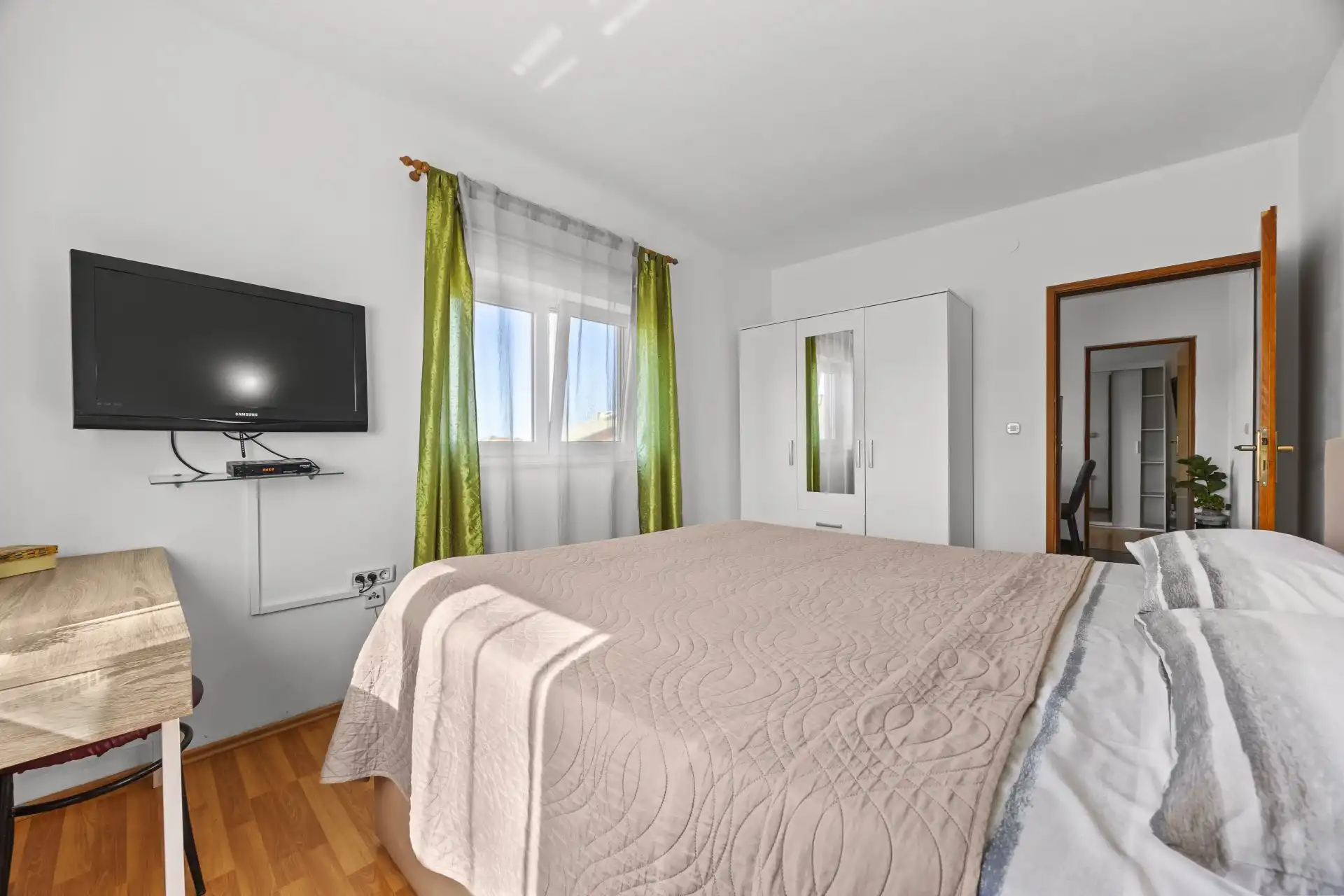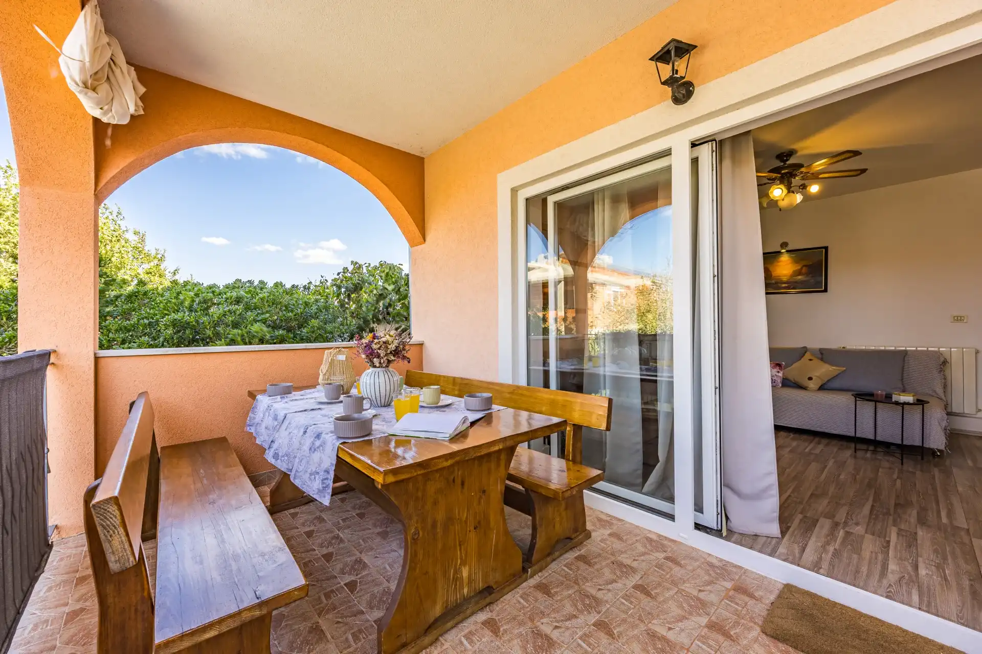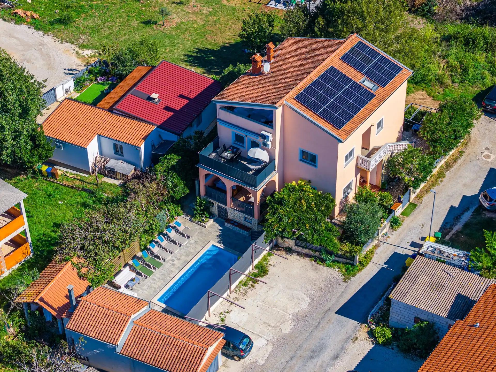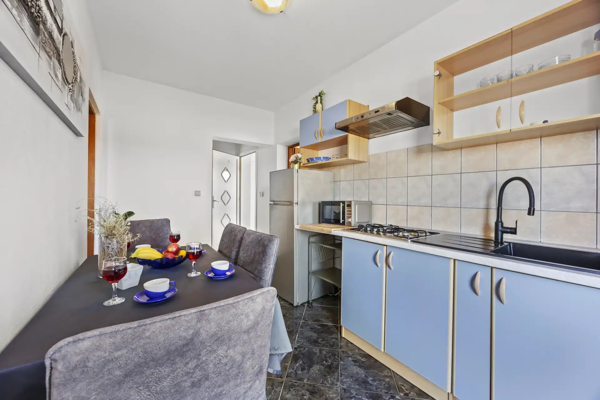 Odkryj urokliwy azyl w sercu Fažany. Ten przestronny dom oferuje apartamenty z dwiema lub trzema sypialniami. To idealne miejsce dla par, rodzin i grup przyjaciół poszukujących niezapomnianych wakacji w Chorwacji. Starannie zaprojektowane apartamenty oferują zakwaterowanie dla 10 osób dorosłych i dwójki dzieci. Apartament z trzema sypialniami może pomieścić do 6 osób dorosłych i dwójkę dzieci, a apartament z dwiema sypialniami – dla 4 osób dorosłych. Apartamenty oferują komfortową i przytulną przestrzeń z nowoczesnymi udogodnieniami oraz piękny wspólny basen. Wejdź do pięknie urządzonego salonu z drewnianym parkietem i marmurową podłogą, tworząc elegancką i ciepłą atmosferę. Apartamenty oferują w pełni wyposażoną kuchnię ze wszystkimi niezbędnymi sprzętami. Ciesz się wspólnymi posiłkami przy dedykowanym stole lub zrelaksuj się w wygodnej części wypoczynkowej ze smart TV. Prawdziwą atrakcją są przestrzenie zewnętrzne, z umeblowanym tarasem z grillem i meblami ogrodowymi, idealnym do spożywania posiłków na świeżym powietrzu i relaksu. Leżaki zachęcają do rozkoszowania się śródziemnomorskim słońcem, a wspólny basen oferuje orzeźwiający relaks w ciepłe dni. Obiekt oferuje również praktyczne udogodnienia, takie jak parking dla rowerów i prysznic na świeżym powietrzu. Apartament jest klimatyzowany i oferuje bezpłatne WiFi, co czyni go idealnym miejscem zarówno dla osób podróżujących służbowo, jak i dla przyjemności. Akceptujemy również do dwóch futrzanych zwierząt domowych za dodatkową opłatą 7 euro za zwierzę za noc (płatną gotówką po przyjeździe). Położony w malowniczej miejscowości Fažana, ten apartament stanowi spokojną bazę wypadową do zwiedzania pięknego wybrzeża Istrii, z łatwym dostępem do lokalnych atrakcji i naturalnego piękna.