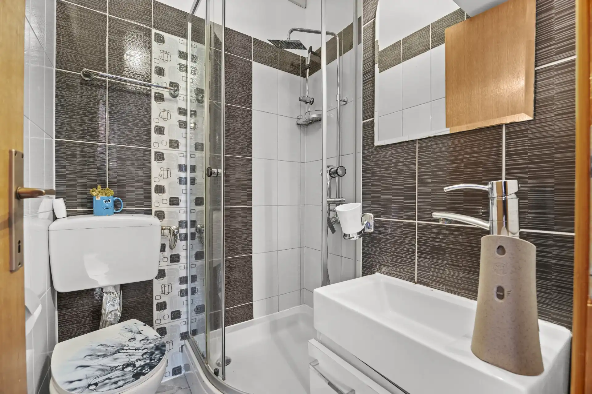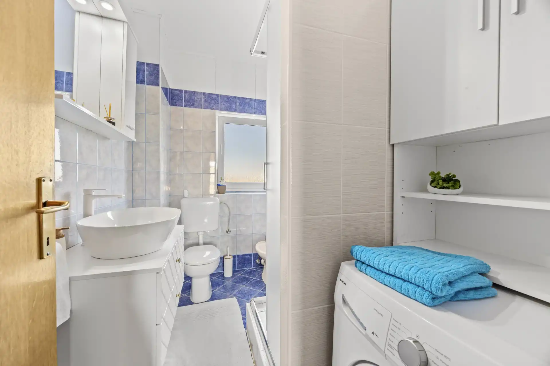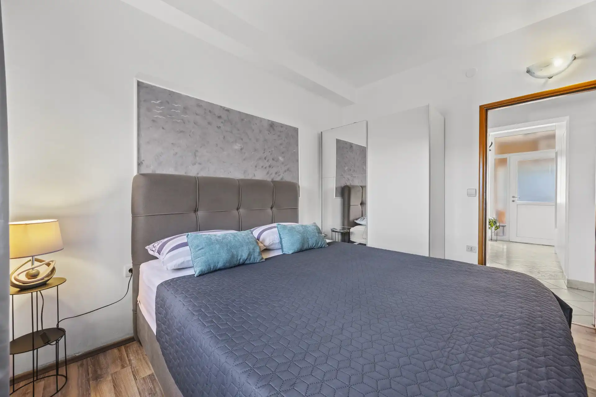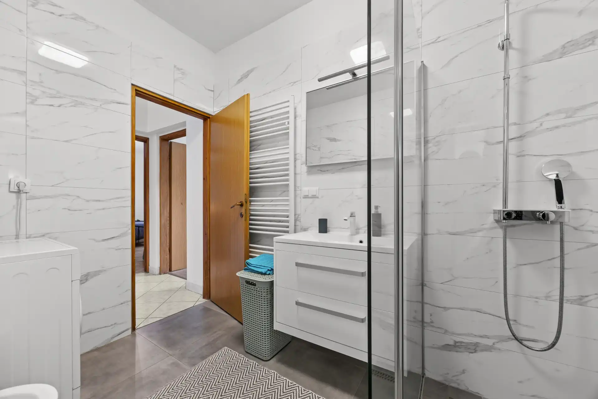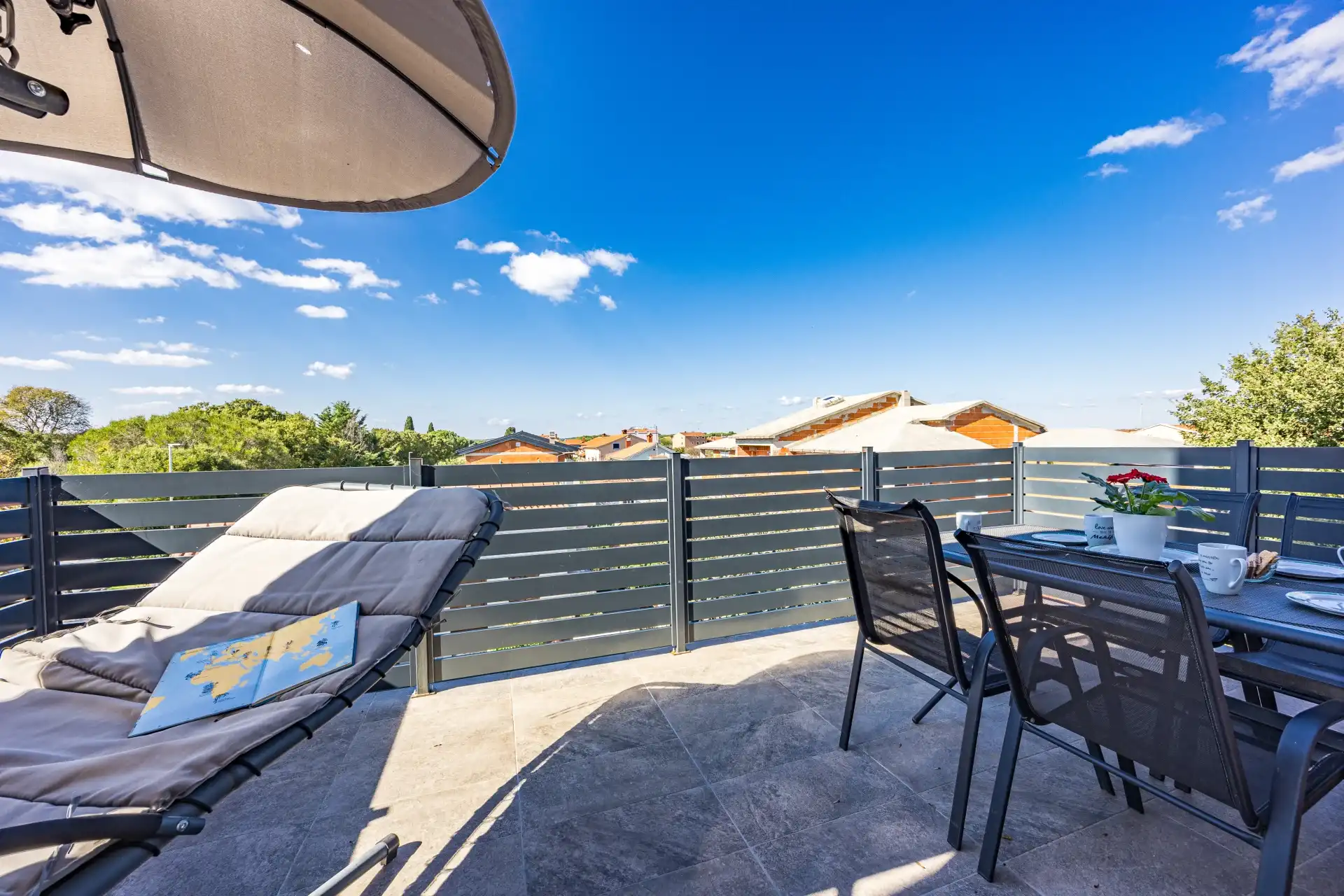 Odkryj urokliwy azyl w sercu Fažany. Ten przestronny dom oferuje apartamenty z dwiema lub trzema sypialniami. To idealne miejsce dla par, rodzin i grup przyjaciół poszukujących niezapomnianych wakacji w Chorwacji. Starannie zaprojektowane apartamenty oferują zakwaterowanie dla 10 osób dorosłych i dwójki dzieci. Apartament z trzema sypialniami może pomieścić do 6 osób dorosłych i dwójkę dzieci, a apartament z dwiema sypialniami – dla 4 osób dorosłych. Apartamenty oferują komfortową i przytulną przestrzeń z nowoczesnymi udogodnieniami oraz piękny wspólny basen. Wejdź do pięknie urządzonego salonu z drewnianym parkietem i marmurową podłogą, tworząc elegancką i ciepłą atmosferę. Apartamenty oferują w pełni wyposażoną kuchnię ze wszystkimi niezbędnymi sprzętami. Ciesz się wspólnymi posiłkami przy dedykowanym stole lub zrelaksuj się w wygodnej części wypoczynkowej ze smart TV. Prawdziwą atrakcją są przestrzenie zewnętrzne, z umeblowanym tarasem z grillem i meblami ogrodowymi, idealnym do spożywania posiłków na świeżym powietrzu i relaksu. Leżaki zachęcają do rozkoszowania się śródziemnomorskim słońcem, a wspólny basen oferuje orzeźwiający relaks w ciepłe dni. Obiekt oferuje również praktyczne udogodnienia, takie jak parking dla rowerów i prysznic na świeżym powietrzu. Apartament jest klimatyzowany i oferuje bezpłatne WiFi, co czyni go idealnym miejscem zarówno dla osób podróżujących służbowo, jak i dla przyjemności. Akceptujemy również do dwóch futrzanych zwierząt domowych za dodatkową opłatą 7 euro za zwierzę za noc (płatną gotówką po przyjeździe). Położony w malowniczej miejscowości Fažana, ten apartament stanowi spokojną bazę wypadową do zwiedzania pięknego wybrzeża Istrii, z łatwym dostępem do lokalnych atrakcji i naturalnego piękna.
