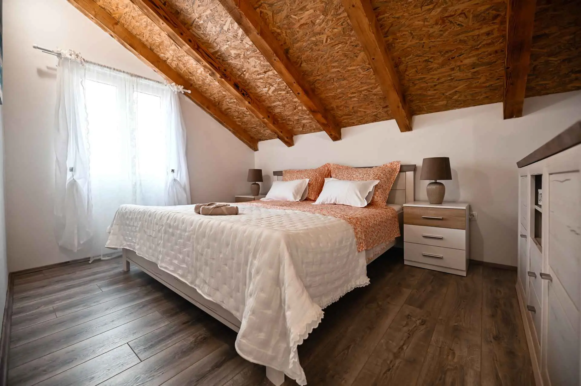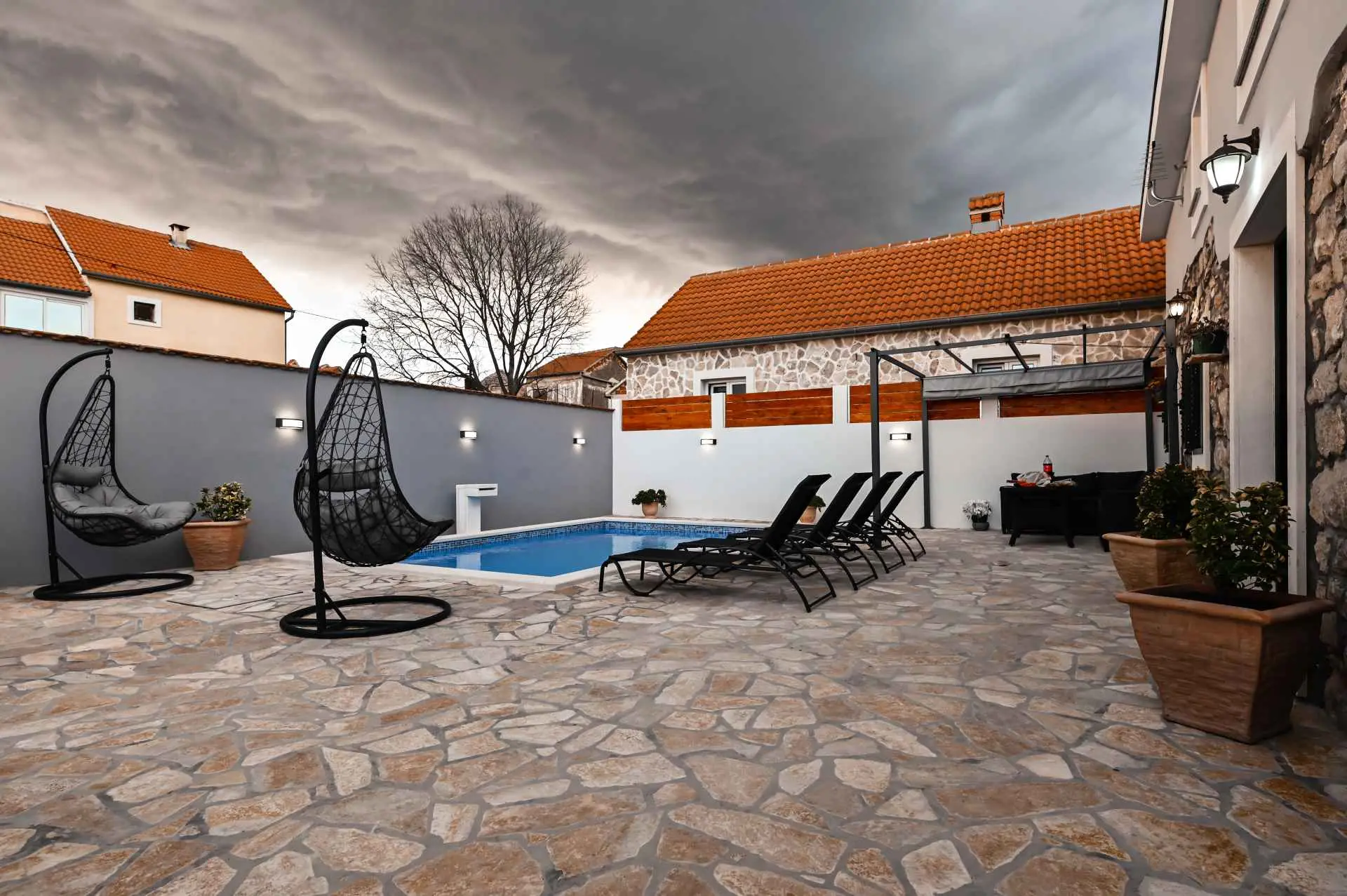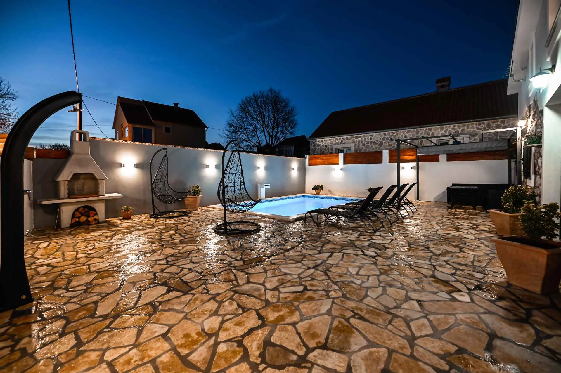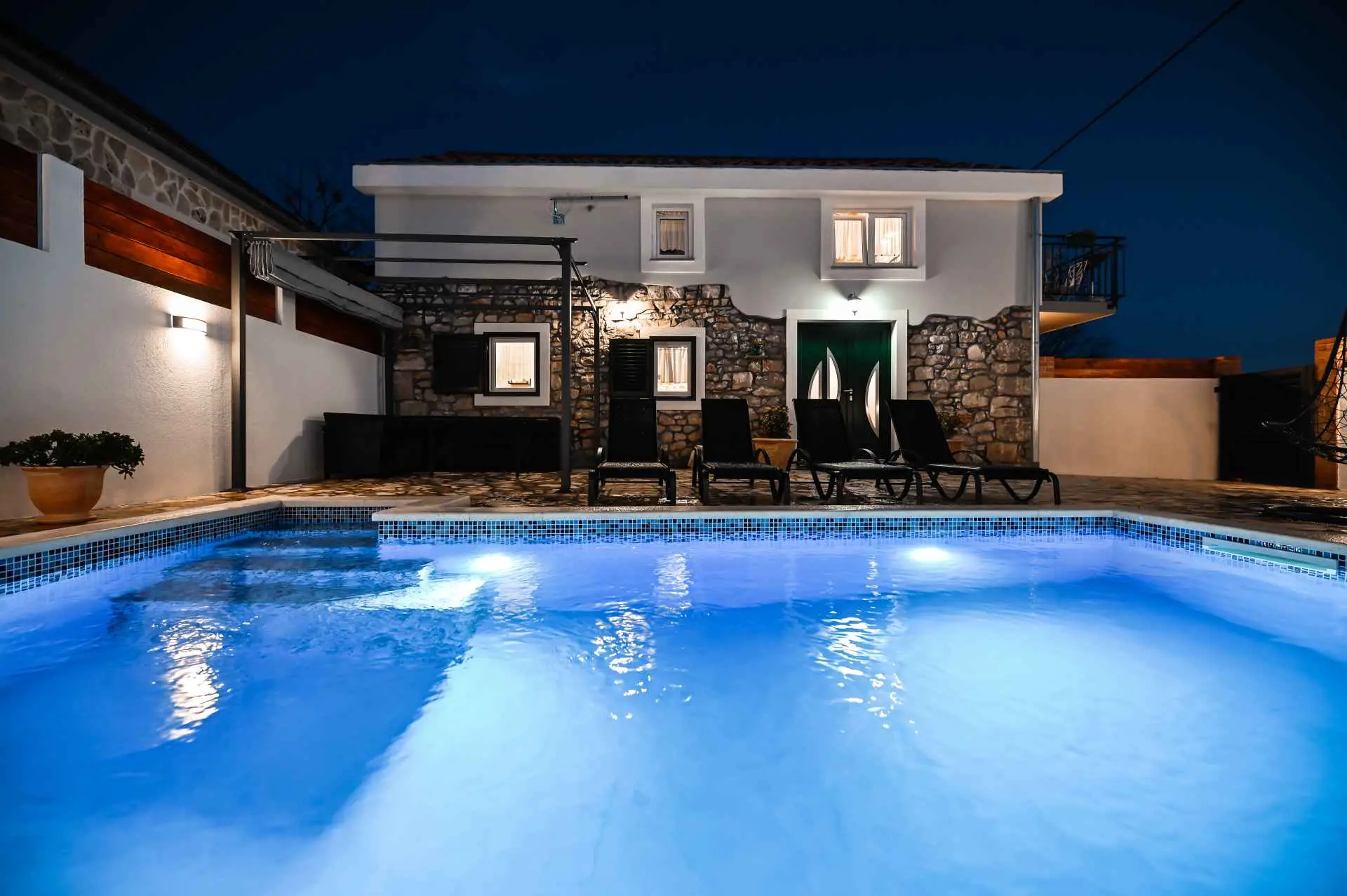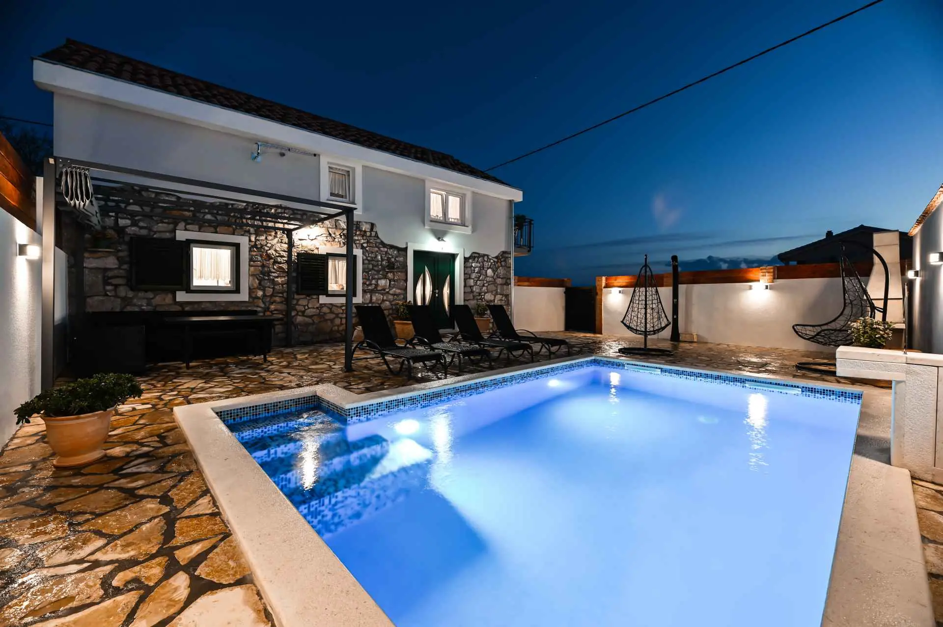 Dom wakacyjny "La felicità" znajduje się w głębi Zadaru, w małej i spokojnej miejscowości Zemunik Gornji. Może pomieścić 6 osób i oferuje odkryty basen z fontanną, leżakami i wygodnymi wiszącymi fotelami. Również taras słoneczny z pięknym widokiem, kominek, część wypoczynkowa i wiele więcej. Obiekt jest klimatyzowany i oferuje bezpłatny bezprzewodowy dostęp do Internetu oraz 2 bezpłatne miejsca parkingowe. Dom otoczony jest tradycyjnymi kamiennymi murami i zapewnia całkowitą prywatność. Dom zawiera w pełni wyposażoną kuchnię, salon, dwie łazienki, trzy sypialnie (2 łóżka podwójne i 2 łóżka pojedyncze), otwartą galerię... Gdzie będziesz: Zemunik Gornji to małe, ciche i bezpieczne miejsce w okolice Zadaru. 10 minut jazdy samochodem do najbliższej plaży (Sukošan) i 15 minut do Zadaru (odległość 18 km). Lotnisko Zemunik oddalone jest o 7 km, a dojazd zajmuje kilka minut. Możesz przypomnieć sobie parki naturalne, takie jak: Jezioro Telašćica i Vrana oraz parki narodowe: Jeziora Plitwickie, Krka, Kornati i Velebit (Paklenica). Kanion Zrmanja oferuje rafting. Można znaleźć więcej pięknych plaż (Bibinje, Petrčane, Zadar, Novigrad), restauracji, muzeów, katedr i parków. Jesteśmy dostępni na wszystkie pytania.