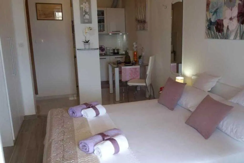 Lägenheter och rum Mladineo ligger i den nya delen av staden. Avståndet från centrum är bara 200 m och 100 m från stranden. Lägenheter och rum är fullt utrustade. Våra gäster kan använda gratis Wi-Fi och en öppen spis med kök. Det finns också en gratis privat parkering för våra gäster. Vi erbjuder taxitjänster med rabatt för våra gäster med transferpoäng och resan av ditt val. Värdarna är alltid tillgängliga. Vi hoppas att du väljer våra lägenheter för vår enastående service och komfort.