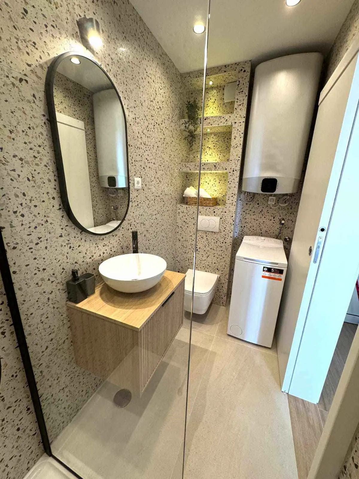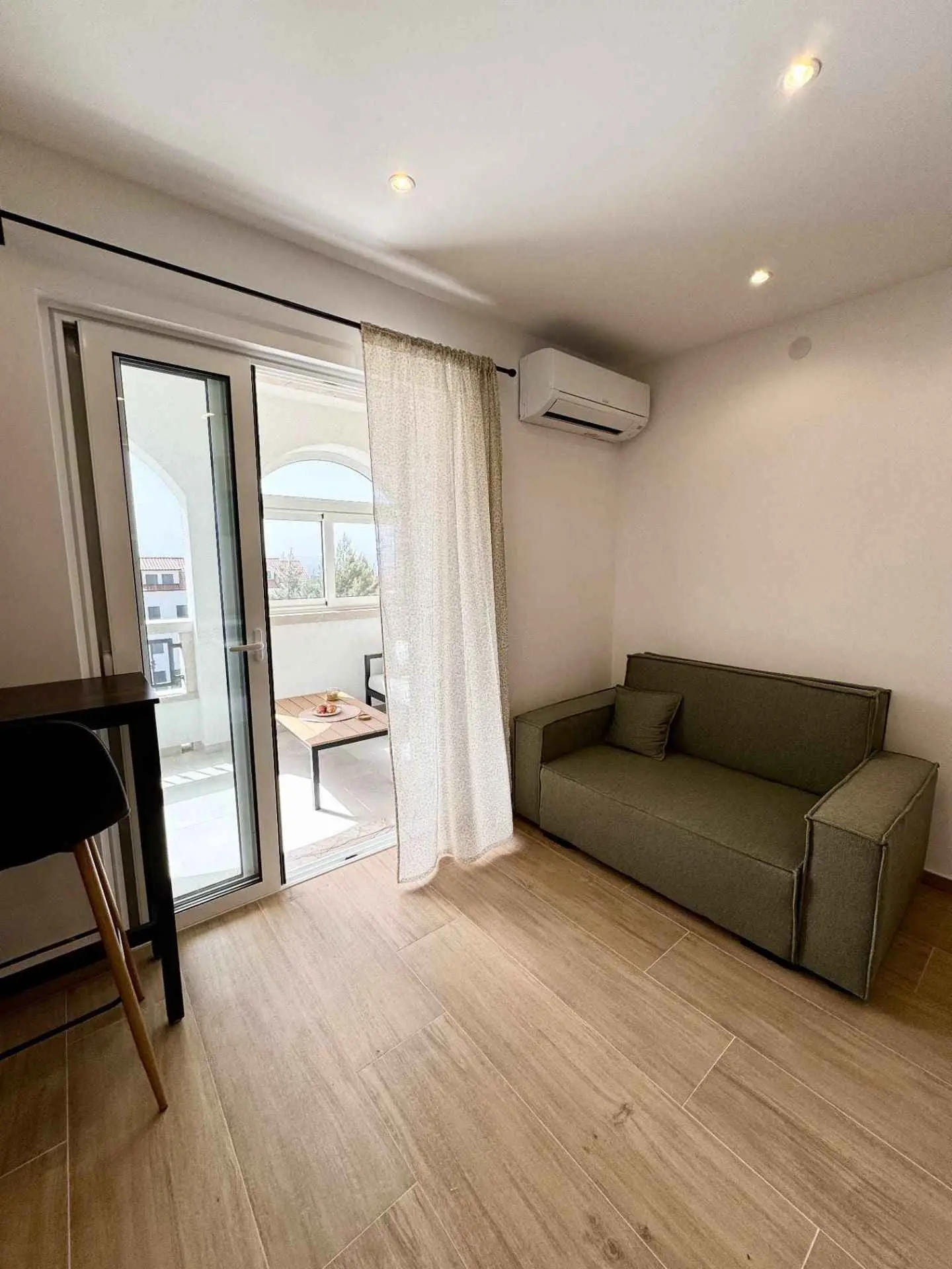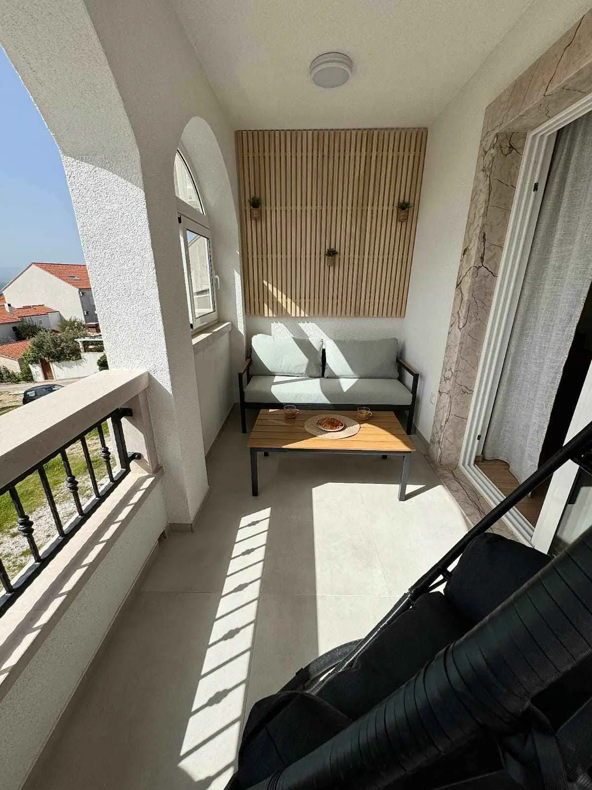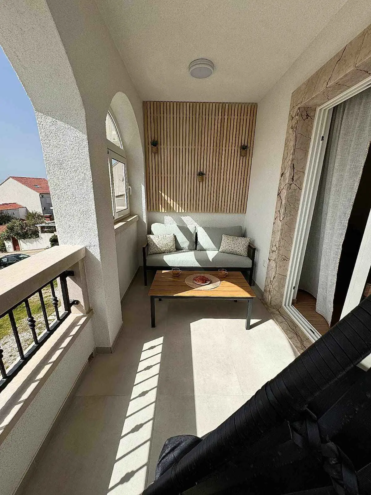 Lyxutrustad lägenhet med ett sovrum på första våningen med terrass med utsikt över havet. Lägenheten har ett sovrum med dubbelsäng, kök med matsal, badrum och terrass (8 m2). Lägenheten är modern och nyutrustad, luftkonditionerad och har satellit - TV, trådlöst internet. Bra läge, fem minuters gångavstånd till centrum och fem minuters gångavstånd till de första stränderna. Vi ser fram emot att välkomna dig!