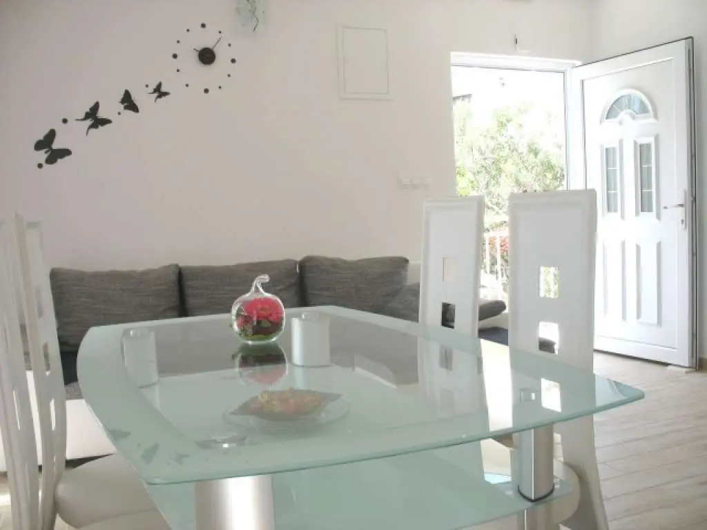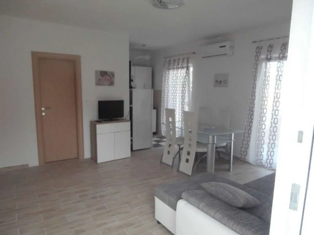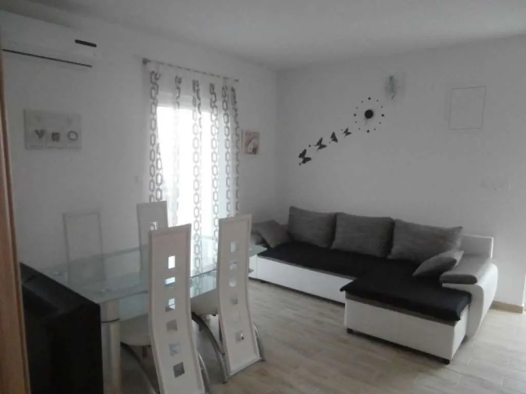 Lägenheterna (4 + 1) ligger bara 150 meter över huvudstranden. Vår lägenhet kan bekvämt rymma 5 personer och består av två vackra och ganska sovrum (båda med garderober). Ett modernt kök som är anslutet till matsal, vackert inredda och soliga vardagsrum. Badrum och en stor balkong som är en utmärkt kvällsdrink och konversation medan du har en vacker havsutsikt. Lägenheten har egen privat parkering. Badrum: 1. Rum: 2