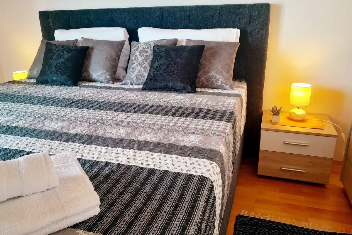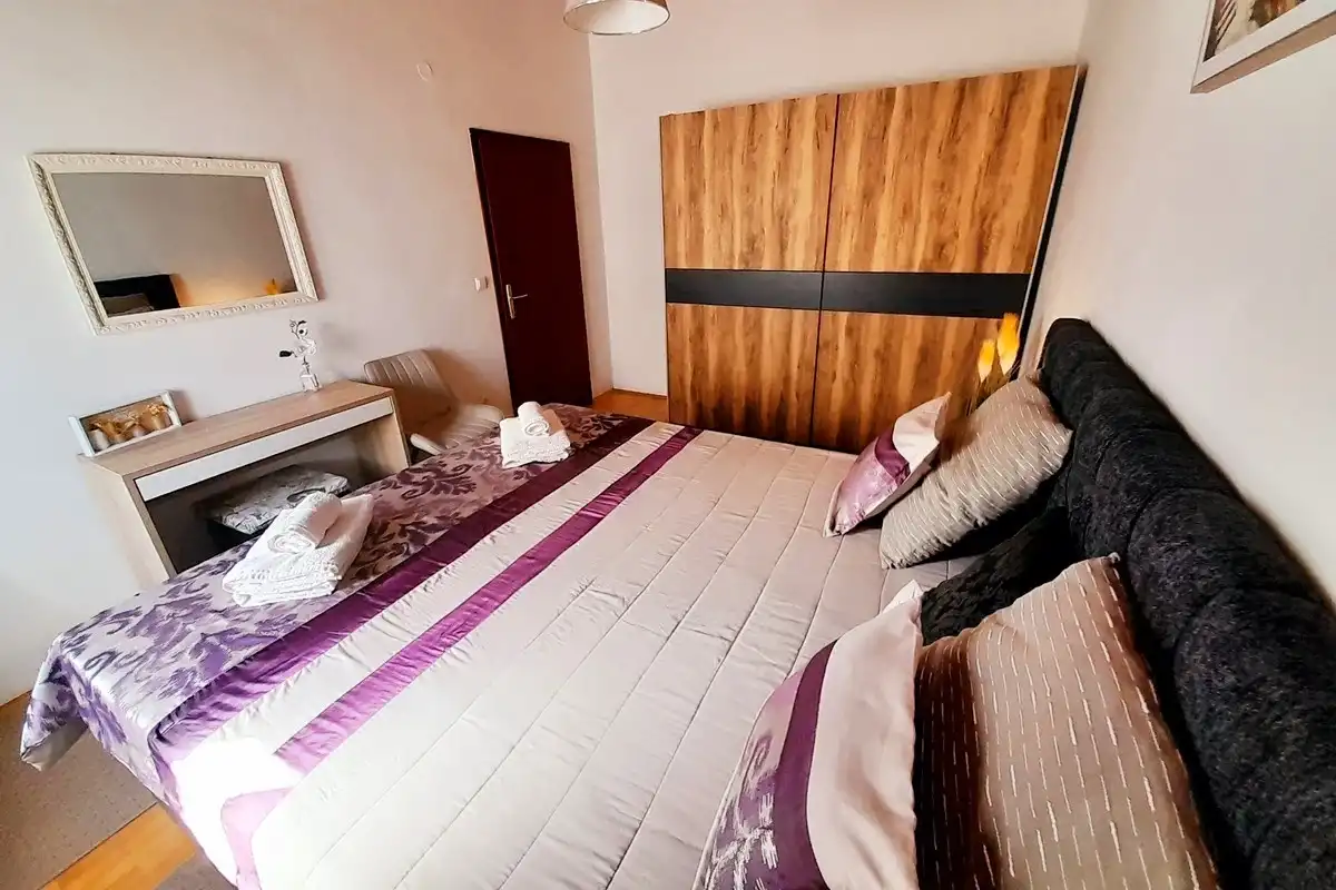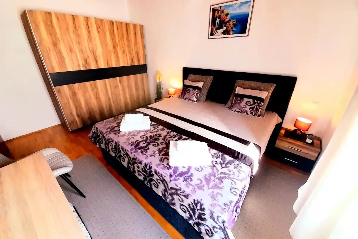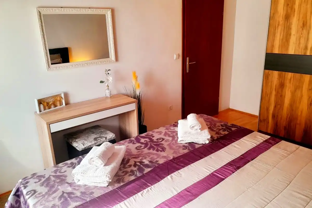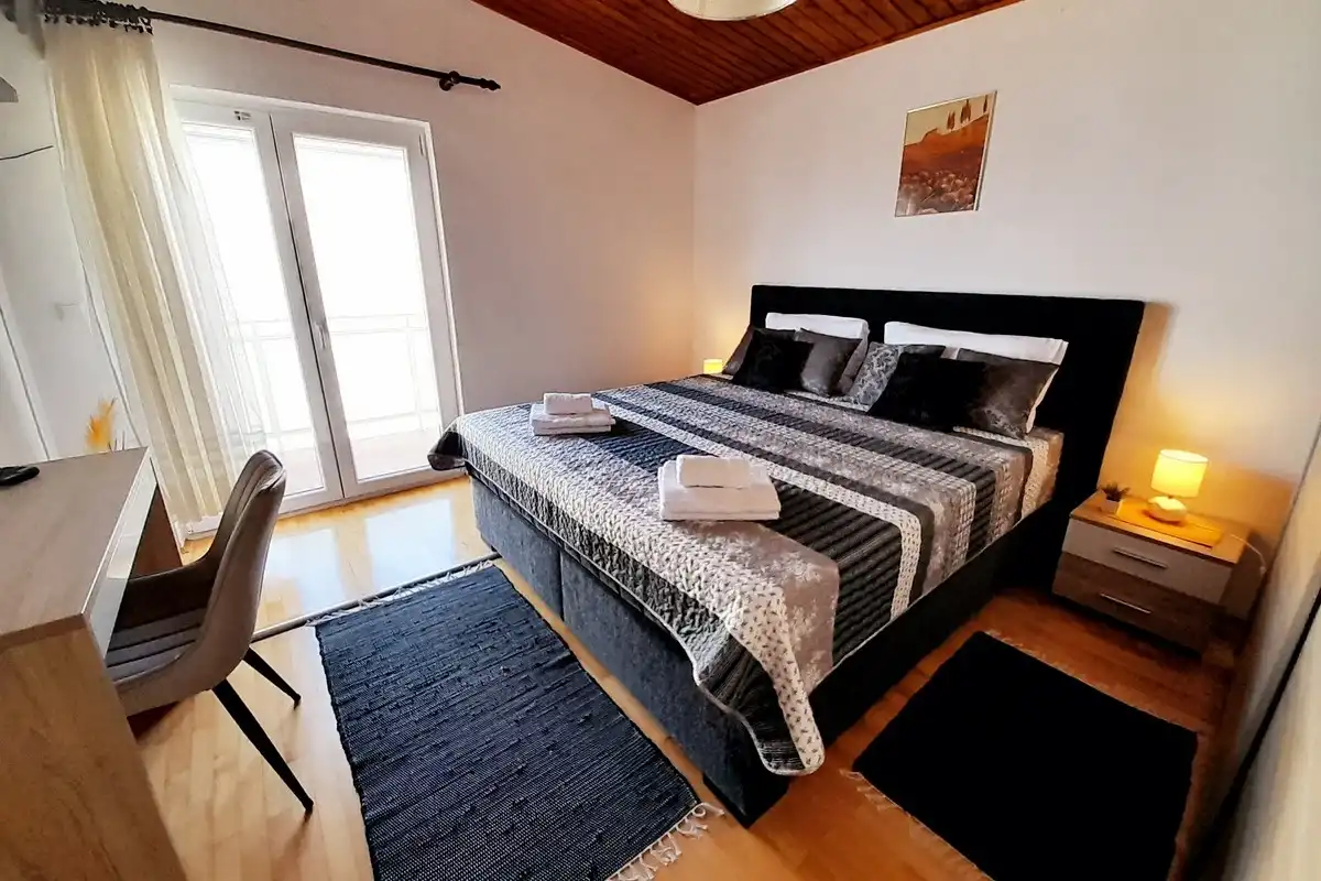 Lägenheter Miroslav Vojnovic ligger i turististiska staden Duce, 20 km öster om Split och 3 km väster om staden Omis. Duce är ett ställe som är känt för sina vackra 5 km långa sandstränder och tydliga grunda hav, vilket gör det mycket bekvämt för familjesemester, särskilt för familjer med barn. Alla som älskar aktiva semester kommer att vara glada över skönheten i detta område omgivet av berg, hav och flod. Omis är en liten historisk stad, varifrån finns dagliga utflykter till öarna Brac och Hvar. Allt finns på ett ställe: simning och havsport, dagsturer till öar, bergsklättring, promenader på stranden, mountainbike, forsränning på floden, orörd natur, rikt kulturellt och historiskt arv. Lägenheterna är familjeägda till en hög standard över 40 år. Bekväma och utrustade lägenheter ligger bara 60 meter från sandstranden. Alla lägenheter har trådlöst internet och luftkonditionering. Privat parkering finns på plats, bredvid lägenheterna, lättillgängliga och utanför gatan. Slutpriset inkluderar alla kostnader: skatter, slutstädning, sängkläder, handdukar och energikostnader. Parkering, trådlöst internet och luftkonditionering är gratis. Priset beror på datum, men också på antalet personer. För ett exakt pris vänligen kontakta oss via e-post. Vi skräddarsys efter dina behov. Vi har gjort våra lägenheter tillgängliga för alla dagar i veckan under hela säsongen, även under högsäsong. Anländer dagen som passar dig. Som en extra bonus, erbjuder vi tidigt incheckning (börjar redan från 10:00 på morgonen). Alla våra gäster får en kupong och detaljerade ankomstanvisningar. Våra GPS-koordinater är: N 43.441019, E 16.659334