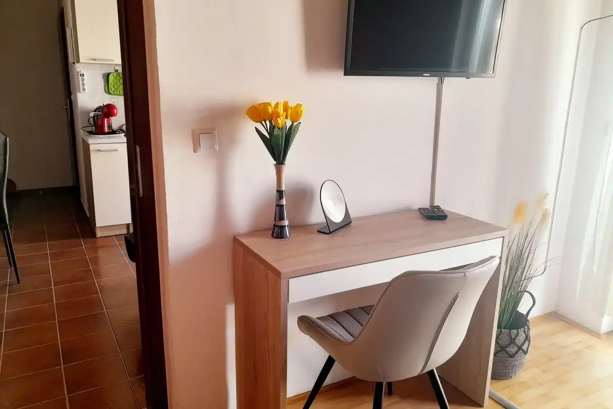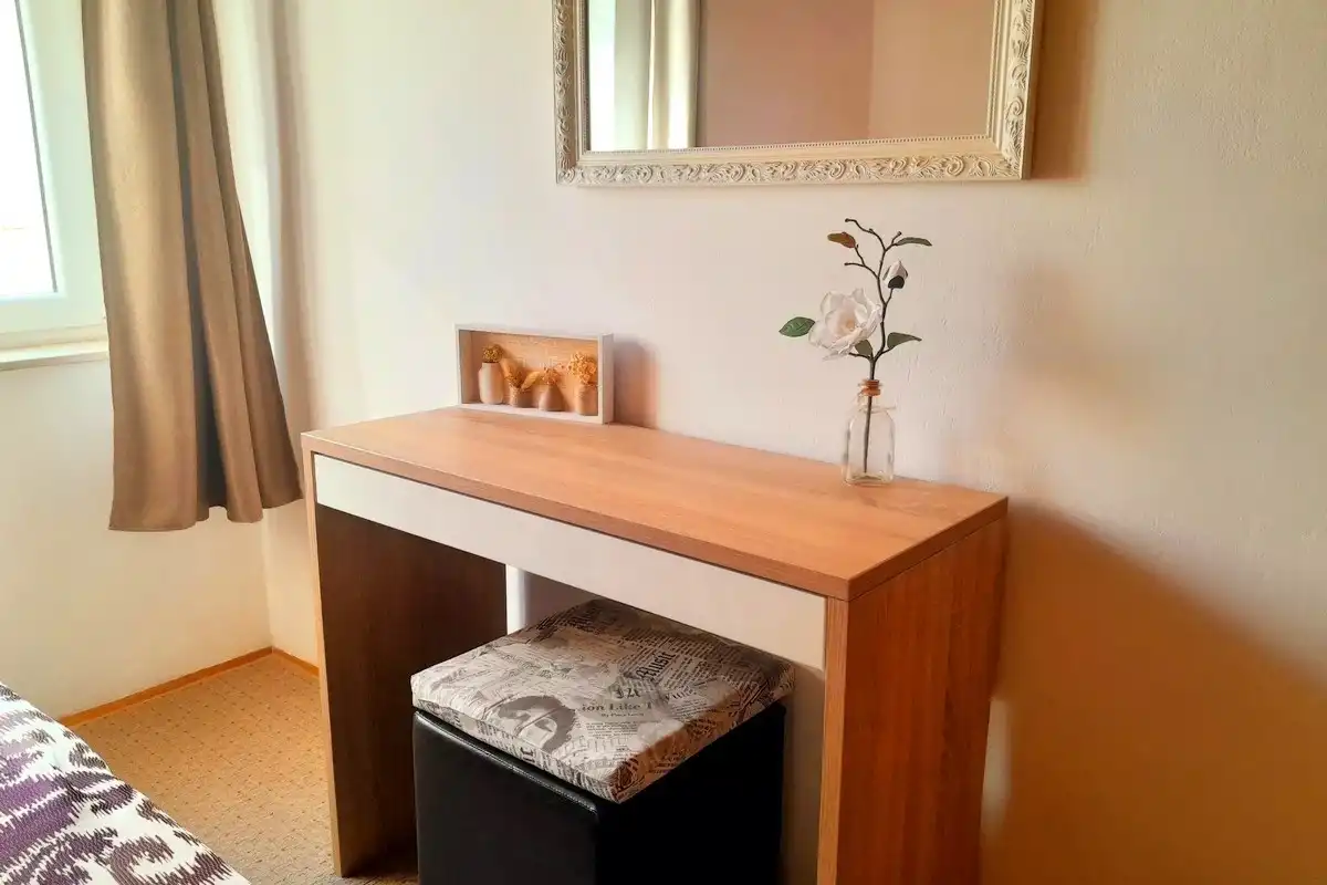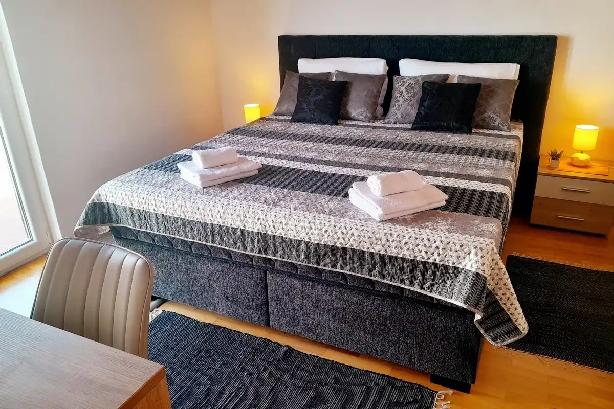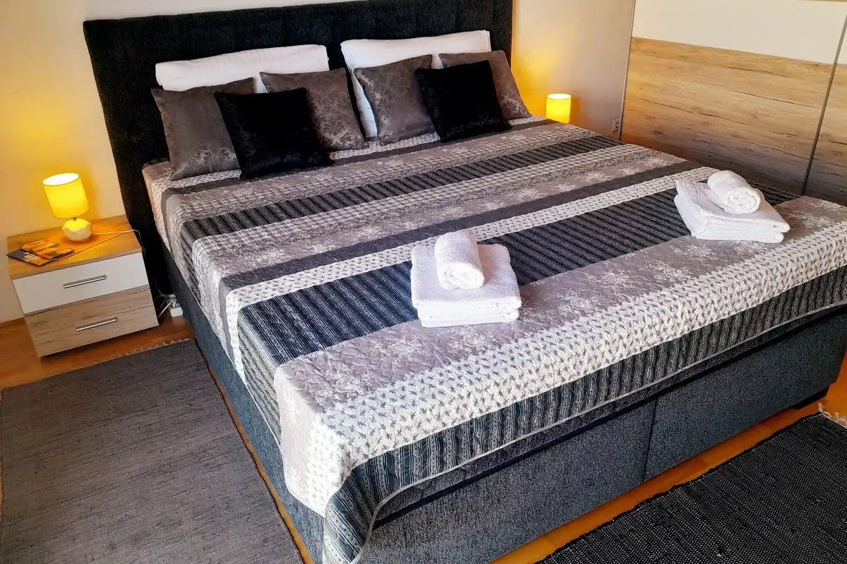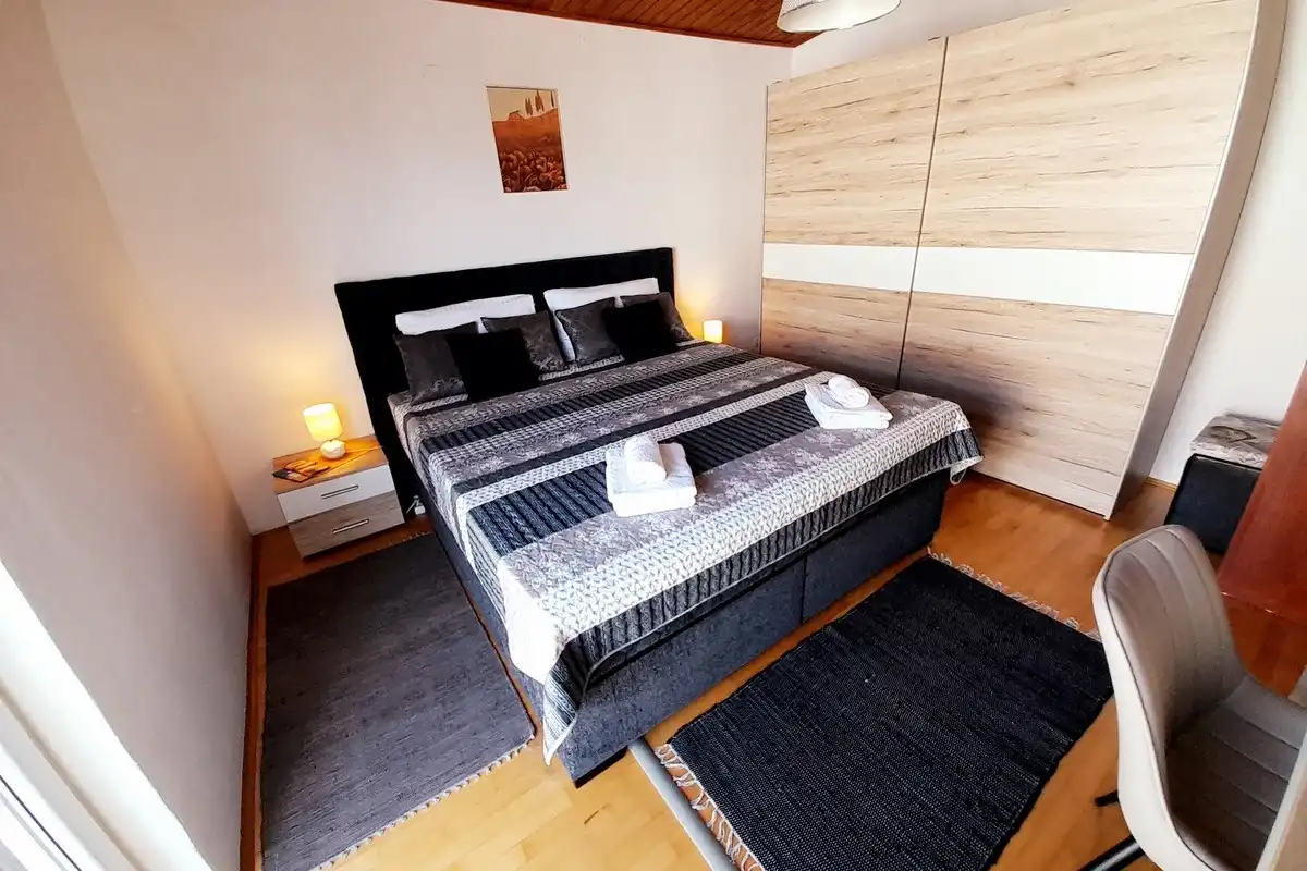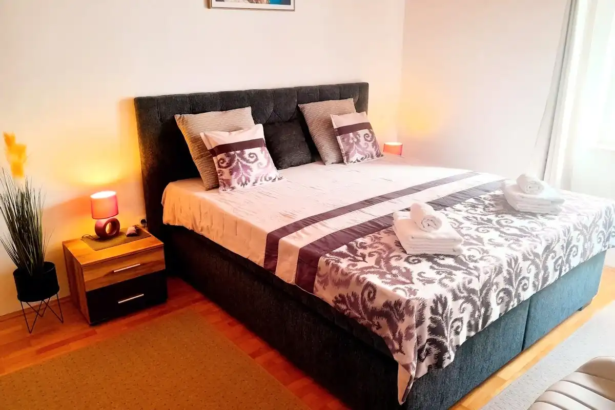 Lägenheter Miroslav Vojnovic ligger i turististiska staden Duce, 20 km öster om Split och 3 km väster om staden Omis. Duce är ett ställe som är känt för sina vackra 5 km långa sandstränder och tydliga grunda hav, vilket gör det mycket bekvämt för familjesemester, särskilt för familjer med barn. Alla som älskar aktiva semester kommer att vara glada över skönheten i detta område omgivet av berg, hav och flod. Omis är en liten historisk stad, varifrån finns dagliga utflykter till öarna Brac och Hvar. Allt finns på ett ställe: simning och havsport, dagsturer till öar, bergsklättring, promenader på stranden, mountainbike, forsränning på floden, orörd natur, rikt kulturellt och historiskt arv. Lägenheterna är familjeägda till en hög standard över 40 år. Bekväma och utrustade lägenheter ligger bara 60 meter från sandstranden. Alla lägenheter har trådlöst internet och luftkonditionering. Privat parkering finns på plats, bredvid lägenheterna, lättillgängliga och utanför gatan. Slutpriset inkluderar alla kostnader: skatter, slutstädning, sängkläder, handdukar och energikostnader. Parkering, trådlöst internet och luftkonditionering är gratis. Priset beror på datum, men också på antalet personer. För ett exakt pris vänligen kontakta oss via e-post. Vi skräddarsys efter dina behov. Vi har gjort våra lägenheter tillgängliga för alla dagar i veckan under hela säsongen, även under högsäsong. Anländer dagen som passar dig. Som en extra bonus, erbjuder vi tidigt incheckning (börjar redan från 10:00 på morgonen). Alla våra gäster får en kupong och detaljerade ankomstanvisningar. Våra GPS-koordinater är: N 43.441019, E 16.659334