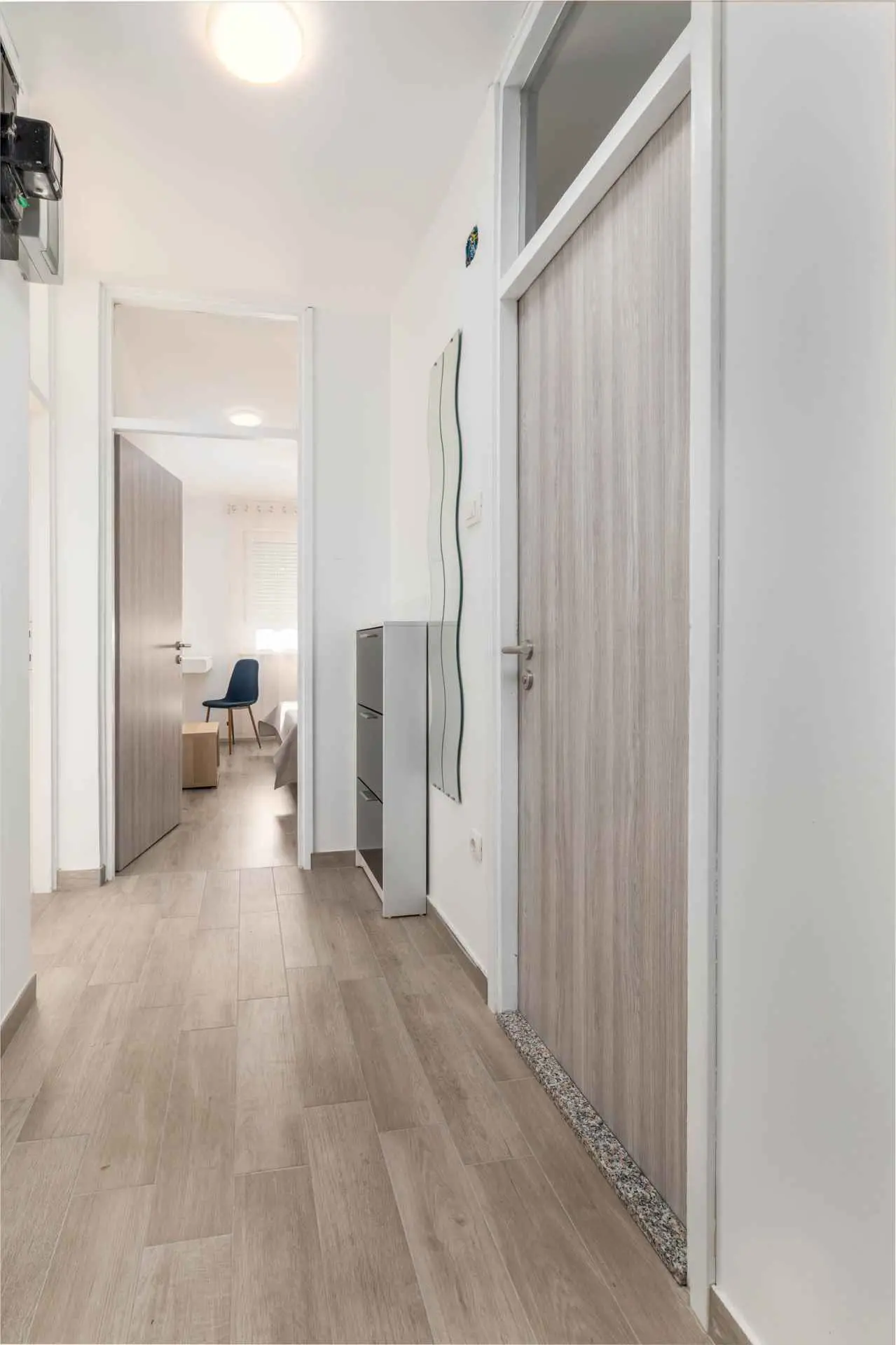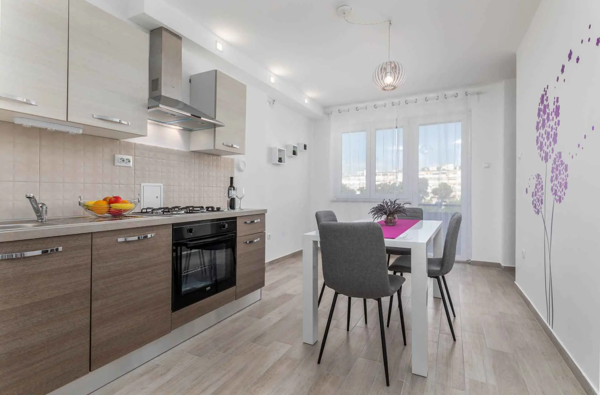 Renoverad lägenhet belägen i lägenhet på plan 4 (ingen hiss), modernt inredd med omsorg och kärlek, ger en trevlig vistelse för korta och långa resor. Beläget i ett lugnt och soligt område, skapat som din idylliska bas för semester, gå till havet och sightseeing i staden. Berömda Pulas stränder (Valkane, Gortanova uvala, Mornar, Valsaline) ligger cirka 15 minuters promenad bort. I omedelbar närhet finns ett postkontor, barnpark, apotek, pizzeria, en marknad, affärer, DM-drogerie och en busstation varifrån du snabbt kan nå stadens centrum och andra sevärdheter i staden Pula. Nyligen kan du hyra e-cyklar och e-romobiler på Veruda-platsen. Välkommen och njut av din välförtjänta semester!