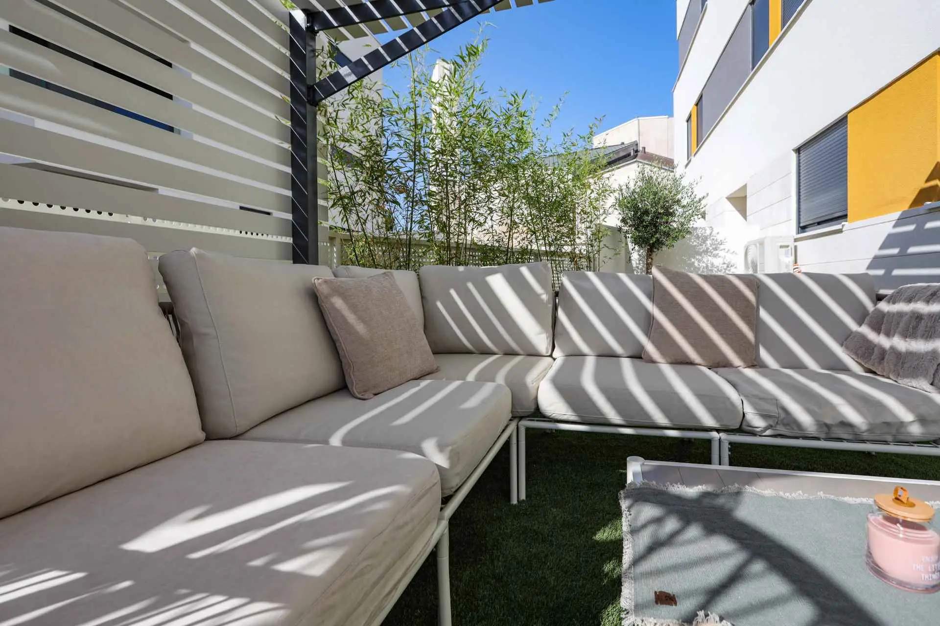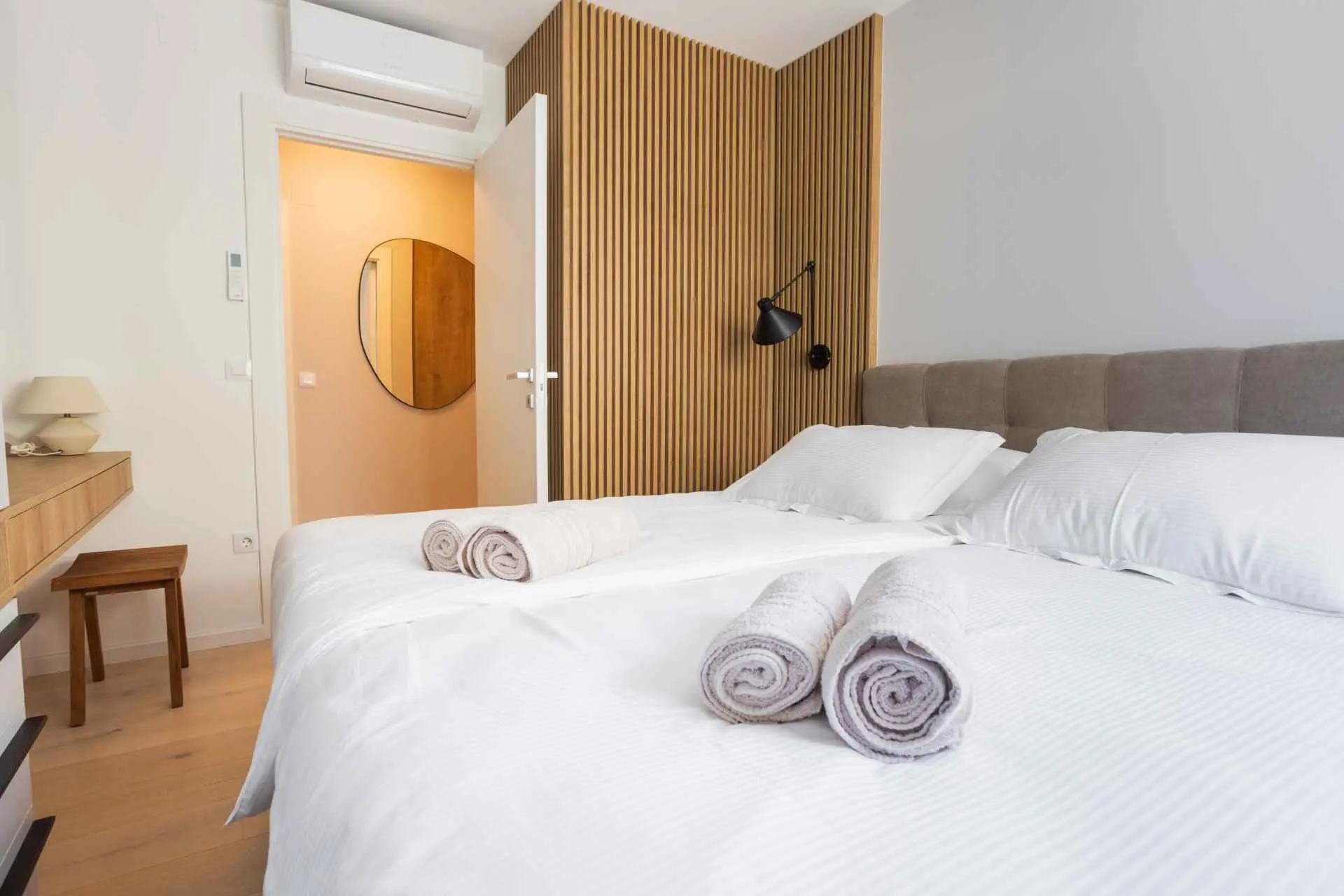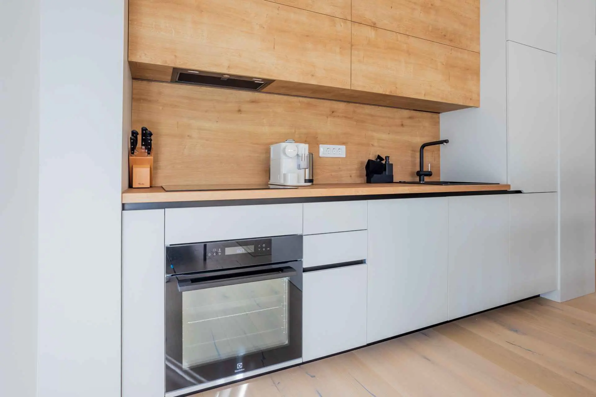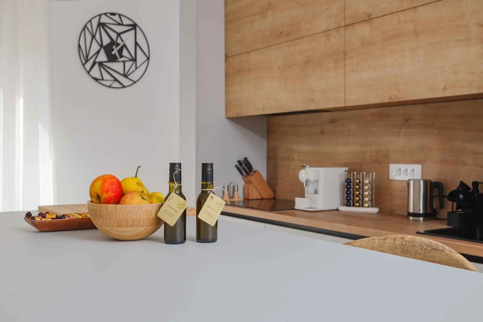 Lägenheten består av två sovrum med värdeskåp, badrum, toalett, vardagsrum med kök. Varje rum har en smart-TV. Boendet har en 30m2 trädgård med konstgräs och trädgårdsmöbler. Den har en 12m2 balkong med en elektrisk grill. Boendet innehåller två parkeringsplatser, utomhus och underjordiskt garage med rullport. Boendet har tvättmaskin med torktumlare, hårtork, diskmaskin, kaffebryggare, brödrost, smoothiemixer, vattenkokare, elektrisk citrussil, köksvåg, stavmixer och vinkyl. Internethastighet Gbit/s tillgänglig i alla rum. Avståndet till den första stranden, butiker, restauranger och cafébarer är cirka 200 meter. Lägenheten har en spjälsäng och en matare. RABATT! - efter personnummer - per vecka/månad bokning