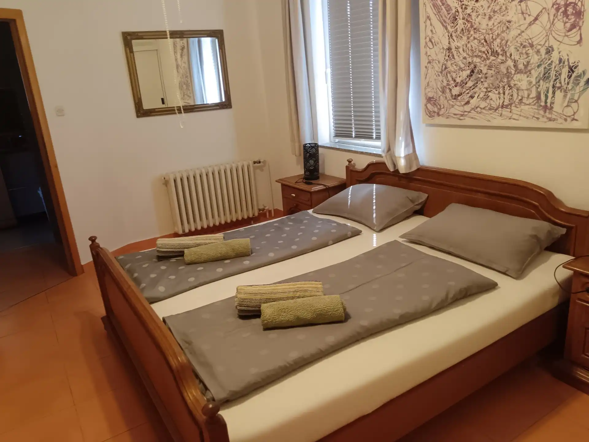 Apartmaji se nahajajo v zahodnem, mirnem delu mesta. Nudimo prijetne lepo urejene apartmaje. Vsak apartma ali studio ima svojo kuhinjo z aparati, kopalnica, balkon ali teraso. Mi se nahaja le 250m od plaže in 500m od centra.