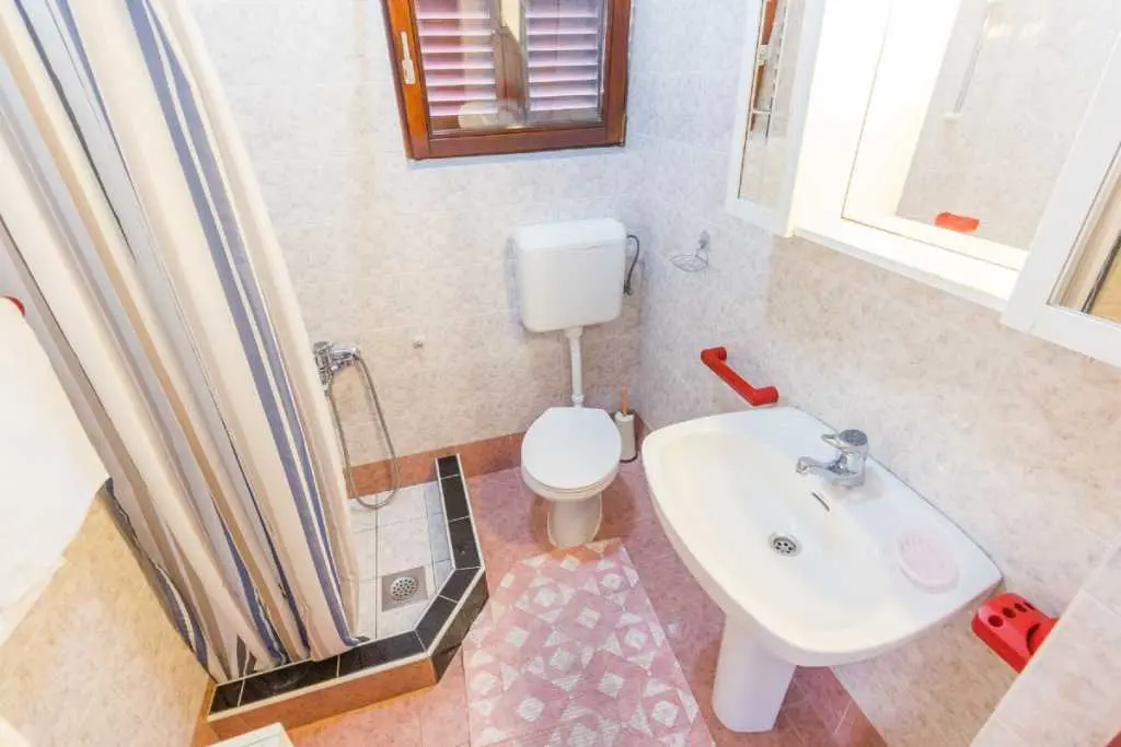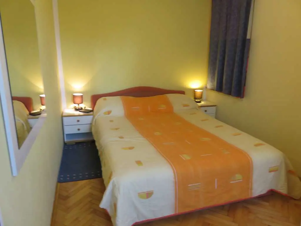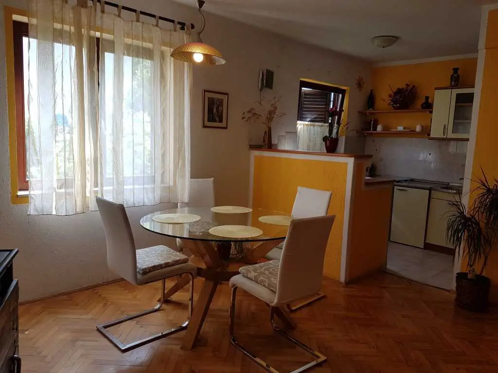 Apartmaji se nahajajo v Baški na otoku Krku v zasebni hiši na mirni lokaciji, približno 400 m stran od čudovite 2 km dolge peščene plaže. Na vrtu hiše je žar, ki je na voljo gostom. Dodatne sobe in oprema: Apartma I - 2/2 - SAT / TV, WI-FI, klima (gretje / hlajenje) 2 spalnici, popolnoma opremljena kuhinja (hladilnik, štedilnik, pečica, pomivalni stroj, aparat za kavo) velika kopalnica s pralnim strojem , balkon, parkirišče pred hišo. Apartma II - 1/2 + 2 - SAT TV +, klimatska naprava Wi-FI, spalnica, velika dnevna soba s kuhinjo in jedilnico (hladilnik, štedilnik, pečica, stroj, kavč kavč - možnost dveh dodatnih ležišč), velika pokrita terasa (14m2), kopalnica in parkirišče pred hišo. Hišni ljubljenčki so dovoljeni v apartmaju ob predhodni želji in doplačilu