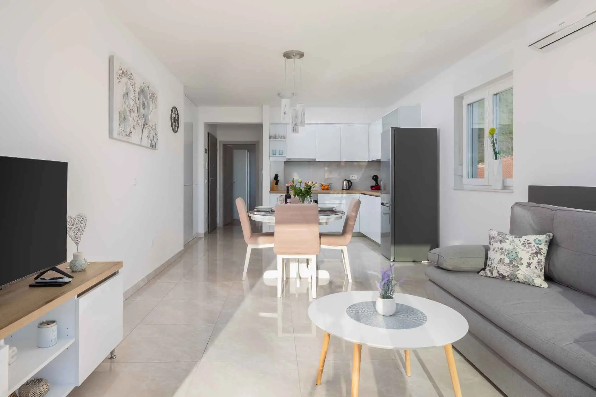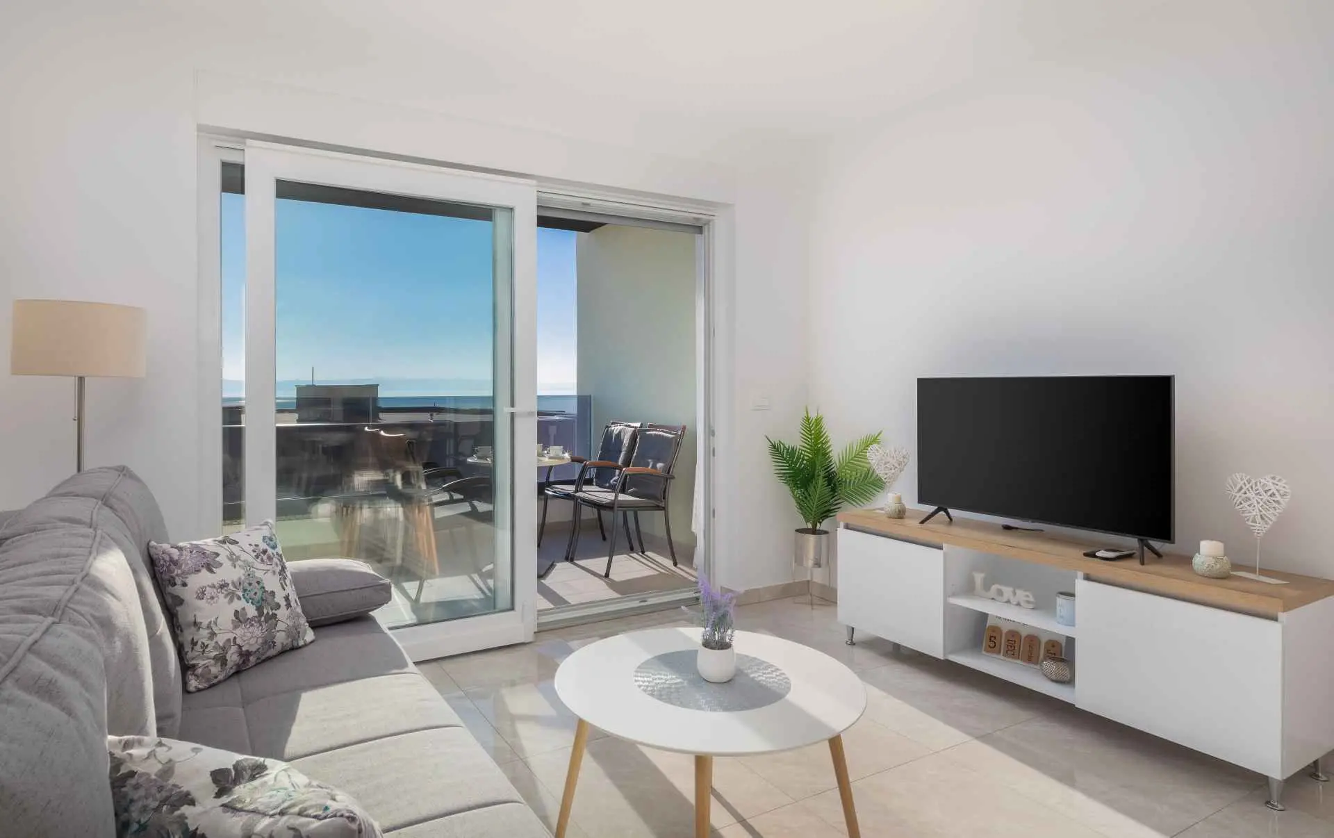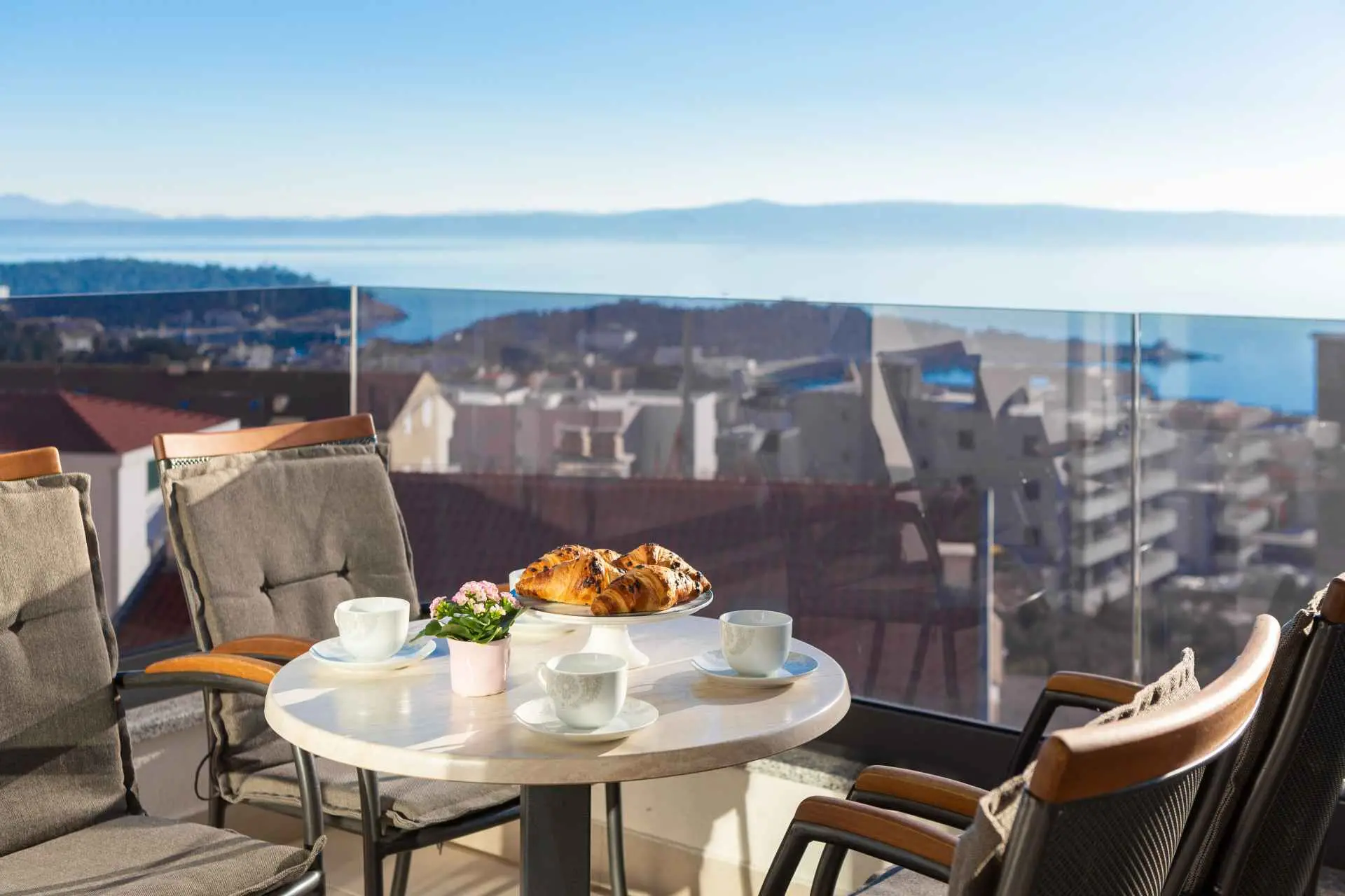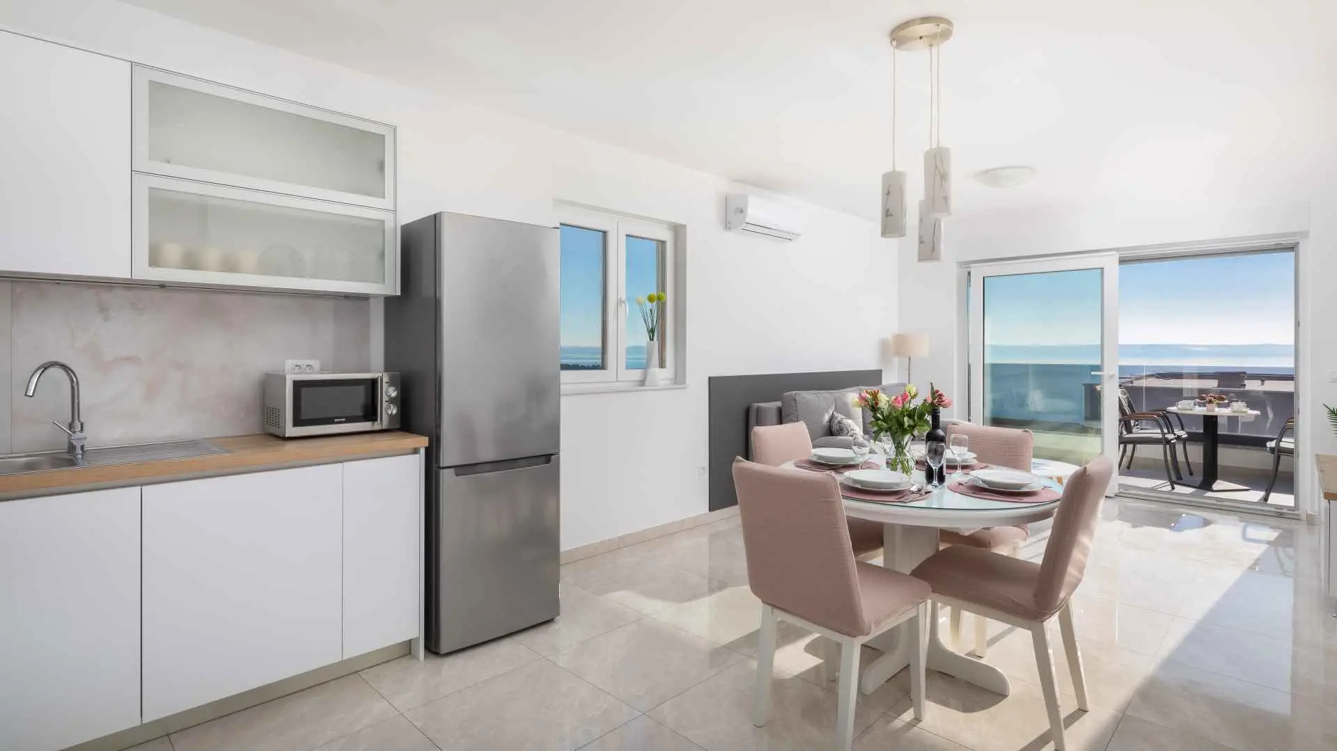Luksuzni penthouse Big Blue v Tučepih ponuja neskončen pogled na modrino že iz prve vrste. Uživali boste lahko v jutranjem soncu in večernih sončnih zahodih. To moderno stanovanje je sestavljeno iz spalnice, kuhinje, kopalnice, dnevne sobe z raztegljivim kavčem in balkona z jacuzzijem. Parkirišče, internet in klima so vključeni v ponudbo. Izberite Tučepe za svoj dopust!