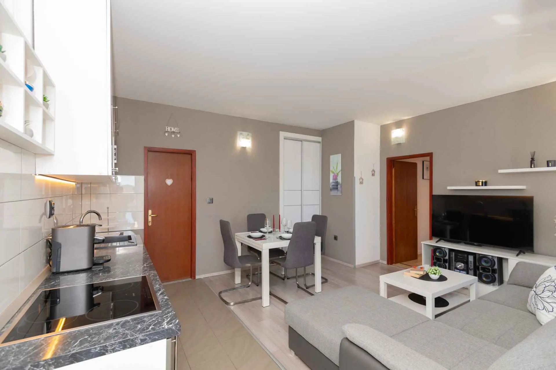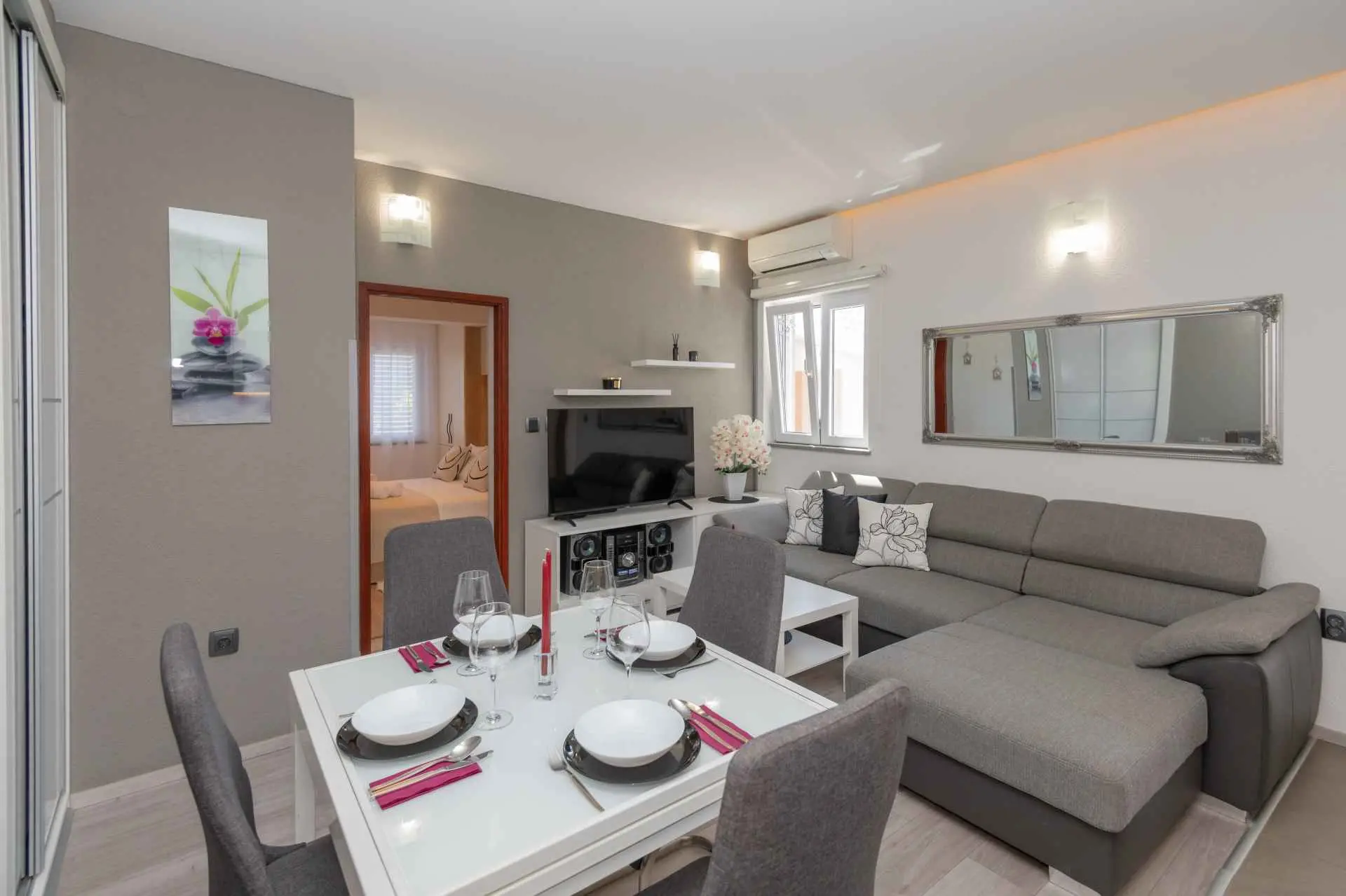 Moderno stanovanje v mirnem delu Splita z zasebnim vhodom, brezplačnim parkiranjem in odličnimi prometnimi povezavami. Celotno stanovanje se nahaja v pritličju in je v celoti na voljo gostom. Popolnoma opremljena kuhinja, klimatska naprava, TV, pomivalni in pralni stroj ter zunanji kamin zagotavljajo udobno bivanje. V bližini so veliki nakupovalni centri, središče mesta pa je dostopno peš ali z javnim prevozom. Idealno za prijeten in praktičen oddih z družino.