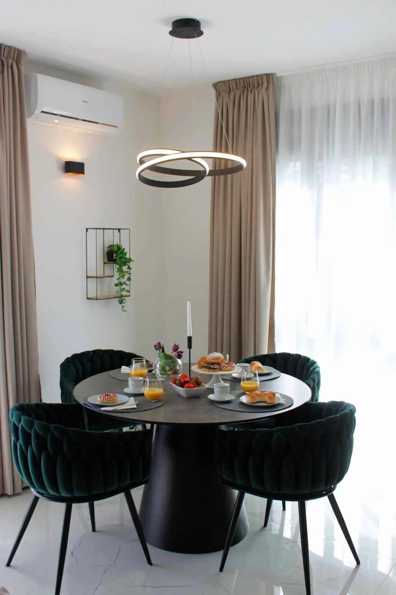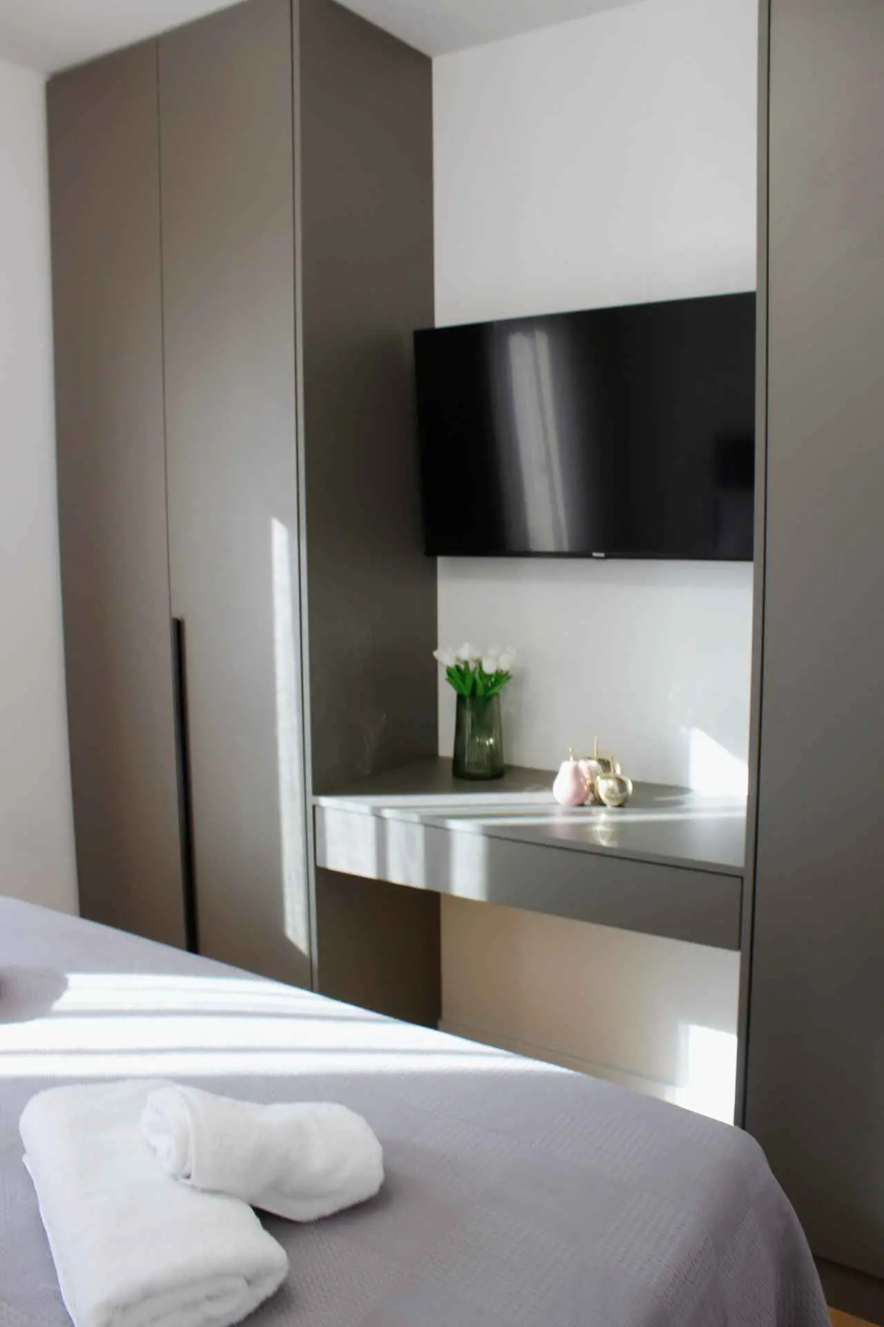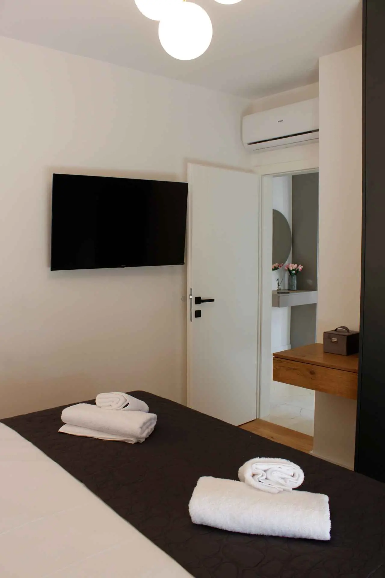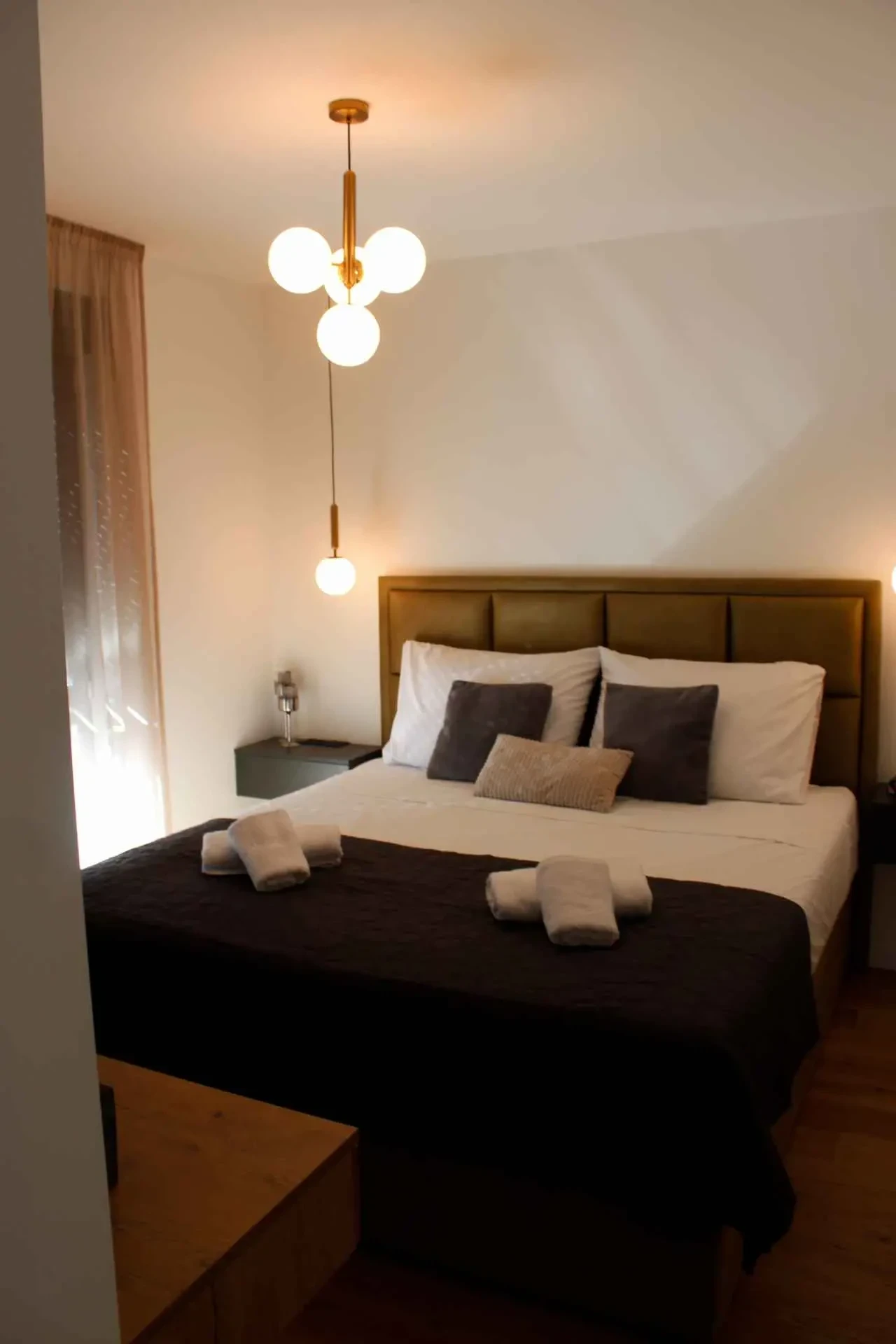 Novo prenovljeno luksuzno stanovanje 2+2. Stanovanje je sestavljeno iz 2 spalnic z zakonskimi posteljami. Vsaka soba ima klimatsko napravo in TV. Kopalnica in majhno stranišče za goste vsebujeta pralni stroj. Popolnoma opremljena kuhinja z vsemi potrebnimi aparati. Nahaja se v 2. nadstropju stanovanjske stavbe s čudovitim razgledom s terase. Zagotovljeno parkirno mesto.