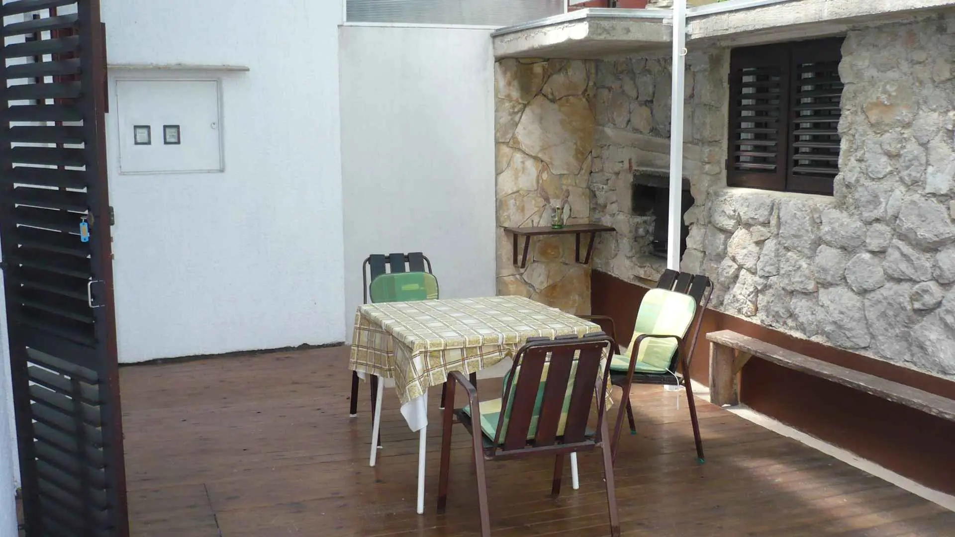 Vážení hostia, už viac ako 40 rokov je v tomto dome ponúkané ubytovanie v súkromí v starom dobrom tradičnom duchu útulnosti a pohostinnosti. V krásnom prostredí len 50 metrov od mora (prvé od mora), obohatenom vôňou borovicového lesa a stredomorských bylín, sa môžete ubytovať v apartmáne a izbách. Ponúkame garsónku a 4 izby, ktoré si hostia môžu kombinovať a prípadne využívať spoločne (vhodné pre skupiny a väčšie rodiny). Celkovo je možné ubytovať až 10 osôb. Garsónka je určená pre 2-3 osoby, manželský pár s dvomi malými deťmi a pod. Je vhodná pre telesne postihnutých, pretože sa nachádza na prízemí a akceptujeme aj domáce zvieratá. Byt má priestrannú terasu so stropným ventilátorom, vonkajšou kuchyňou a grilom. Dve izby na prvom poschodí majú prístup na balkón, teda výhľad na more. Klimatizácia a chladnička sú na chodbe a na prvom poschodí sú dve kúpeľne, takže hostia ubytovaní v samostatných izbách môžu využívať vlastnú kúpeľňu. K dispozícii je Wi-Fi pripojenie na internet, vonkajšia sprcha a bezplatné parkovisko. A majiteľ (alebo niekto z rodiny) privíta každého hosťa welcome drinkom a v prípade potreby odpovie. Vitajte!