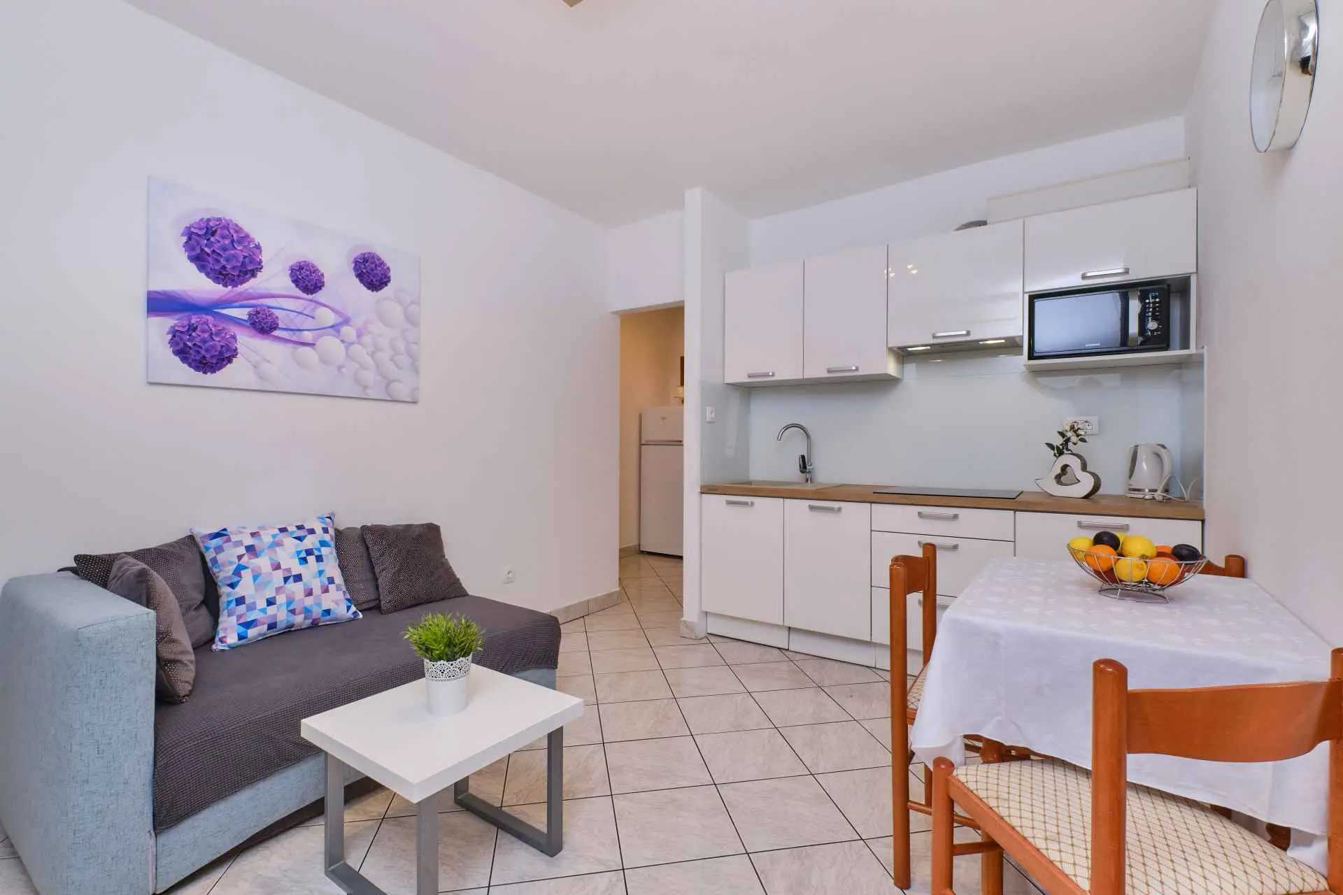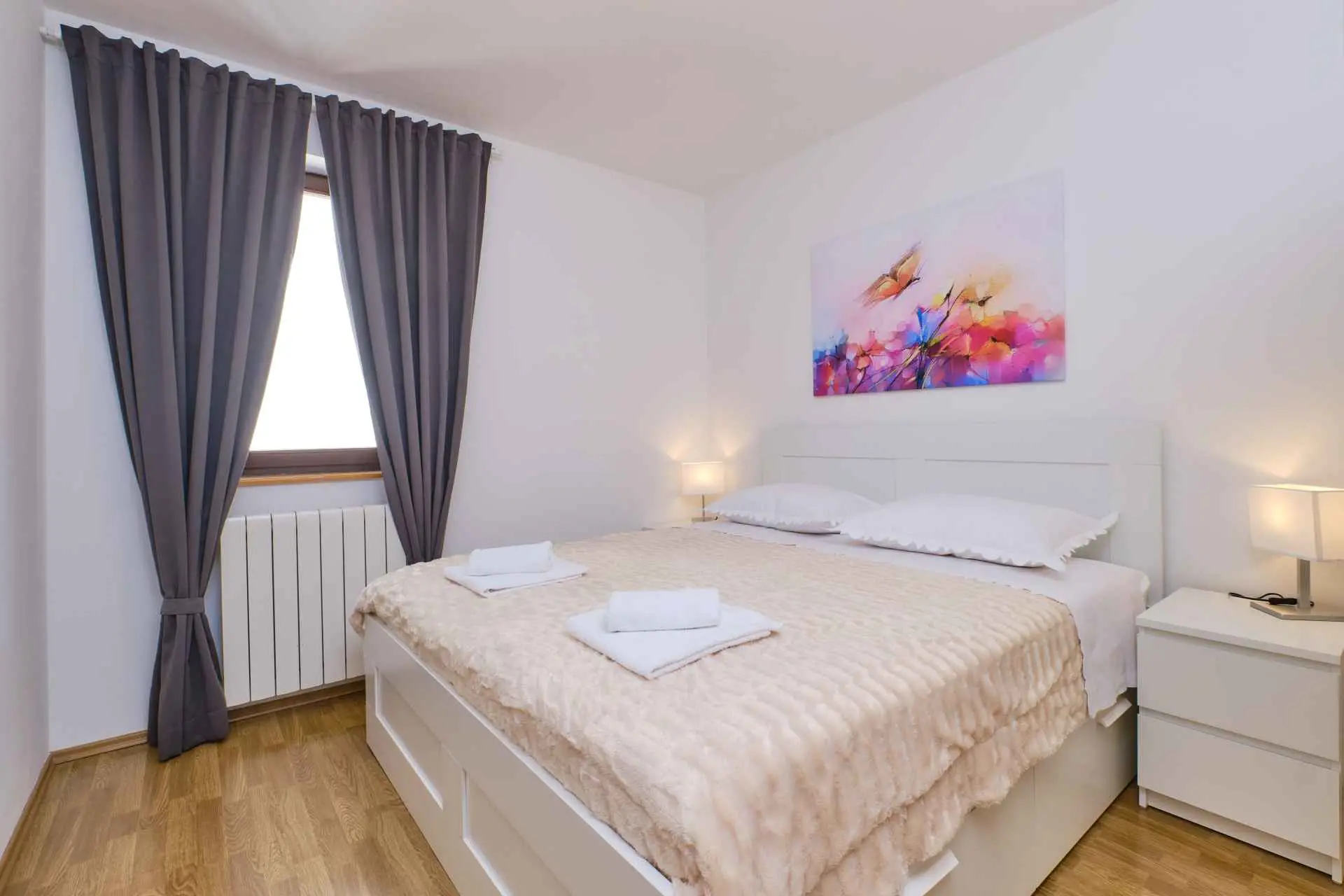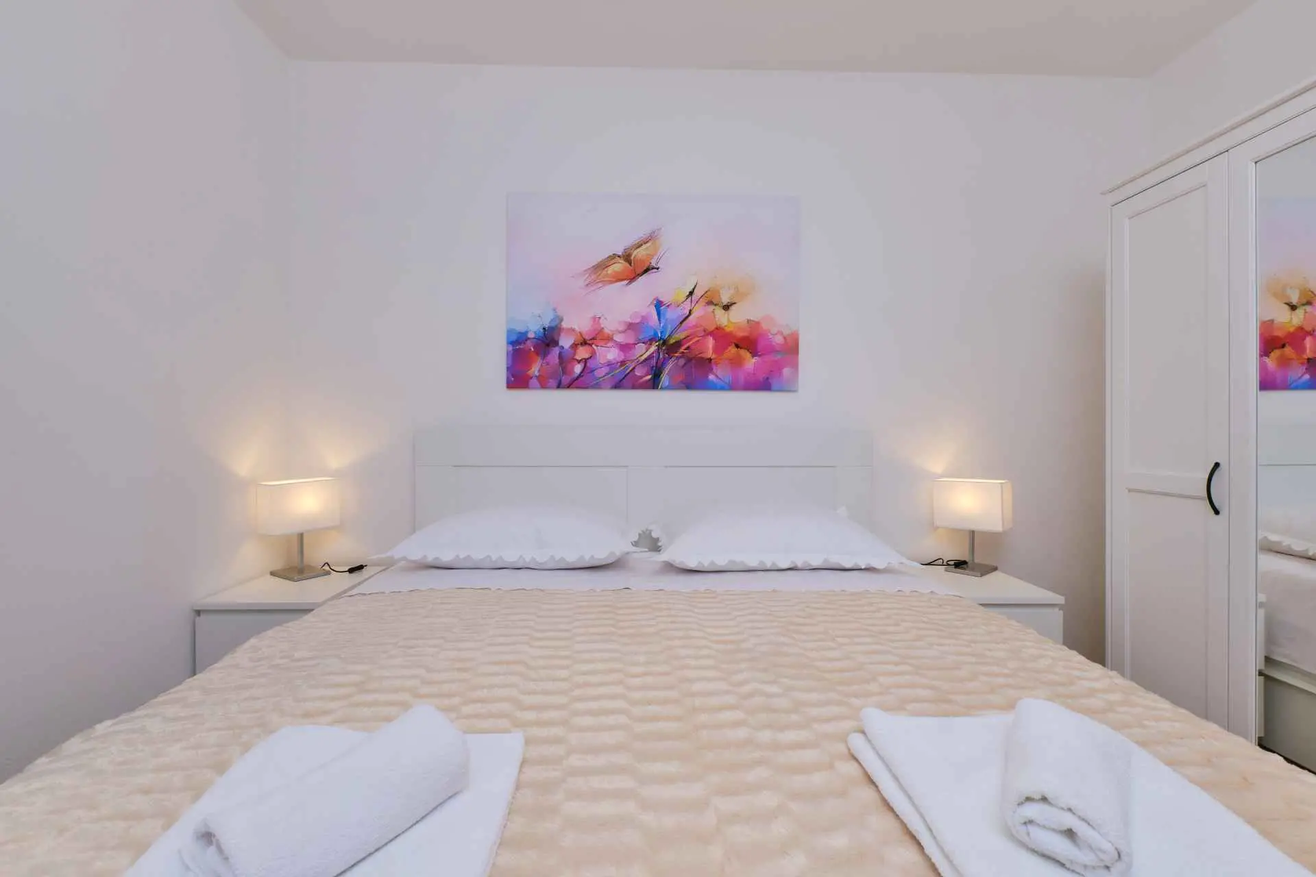 Byt sa nachádza v blízkosti pláže, len pár minút chôdze. Ponúka parkovanie pred domom a pohodlný pobyt v blízkosti všetkej občianskej vybavenosti. Apartmán má jednu spálňu s manželskou posteľou, kuchyňu s jedálenským kútom, kúpeľňu a balkón. Kuchyňa je plne vybavená. Hostia majú možnosť využiť spoločný gril.